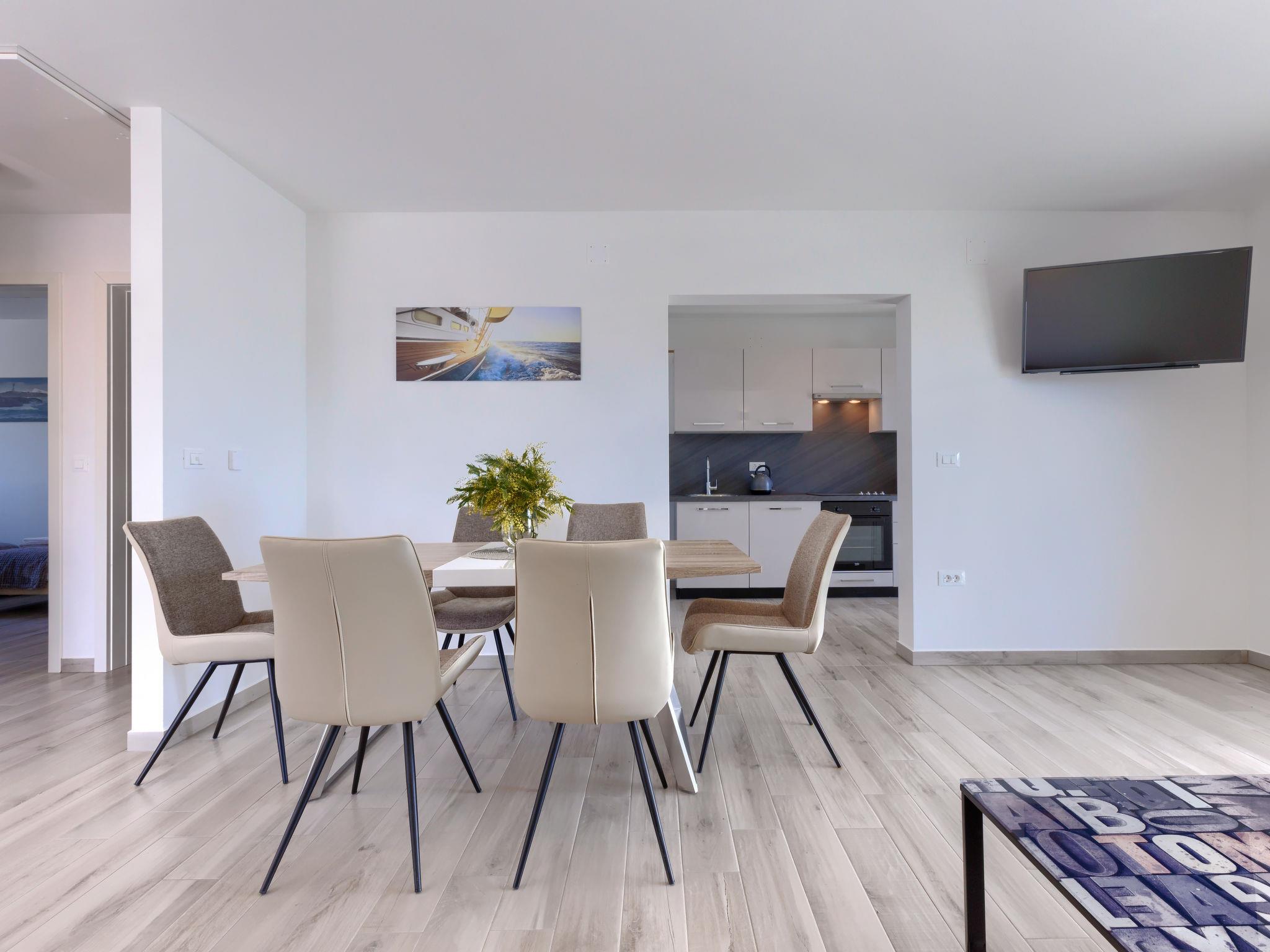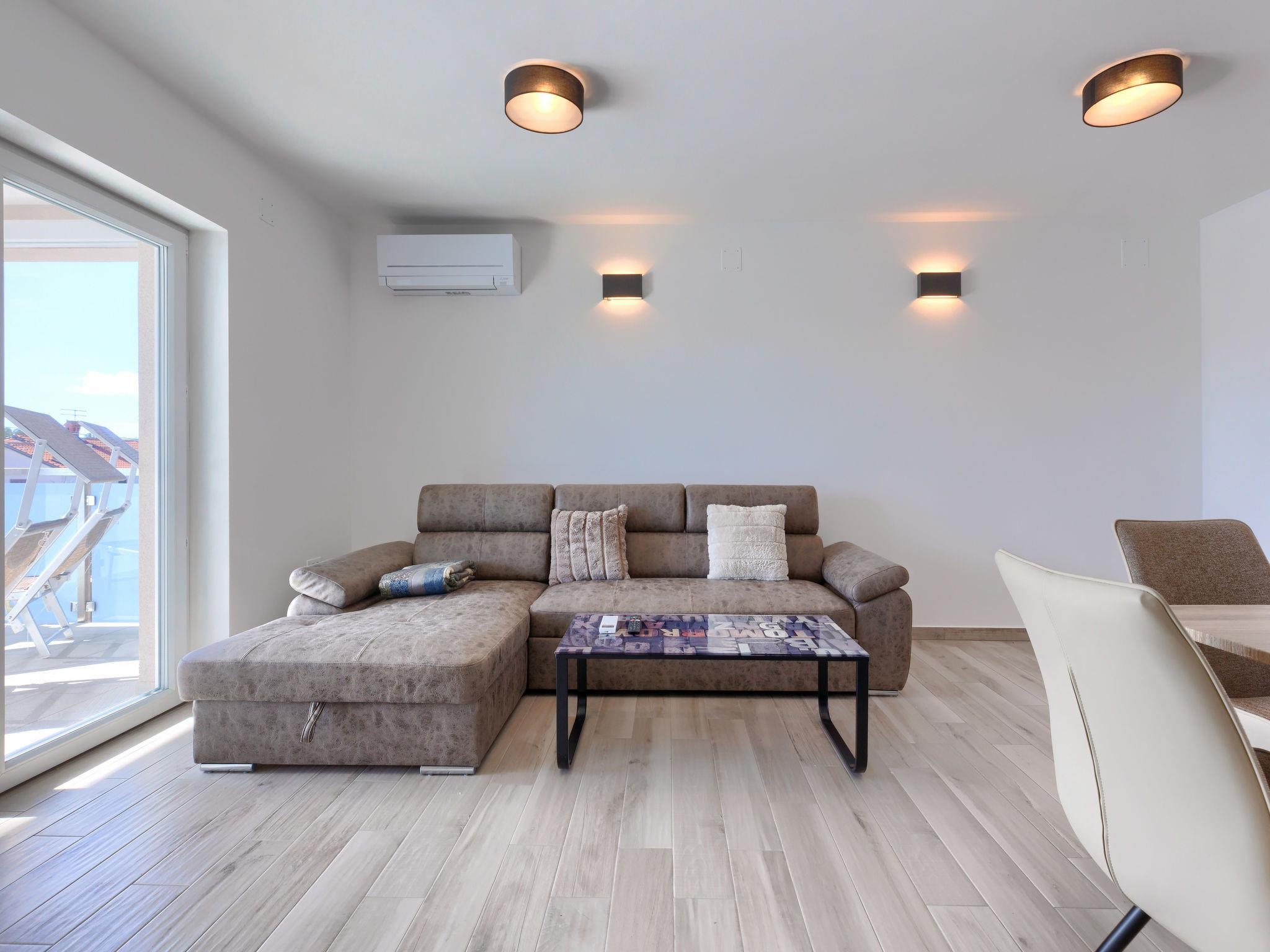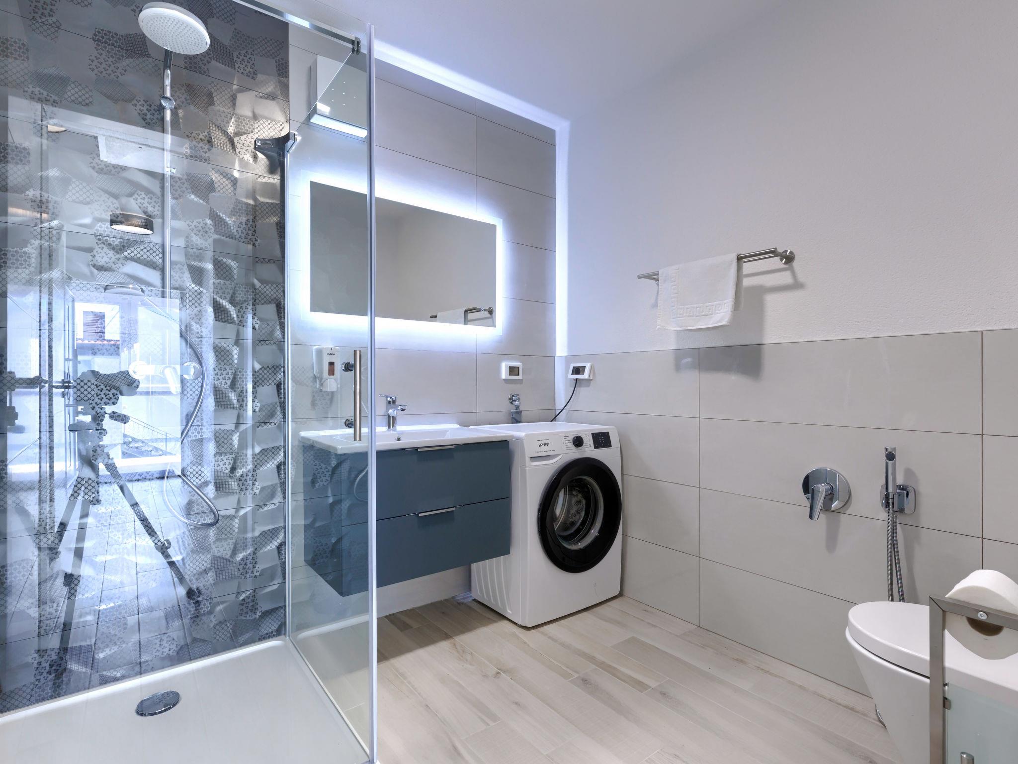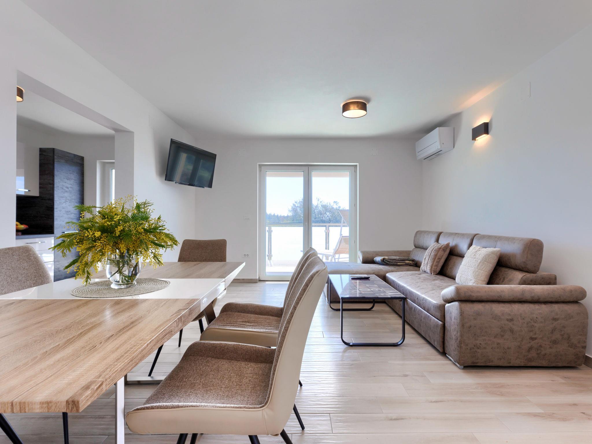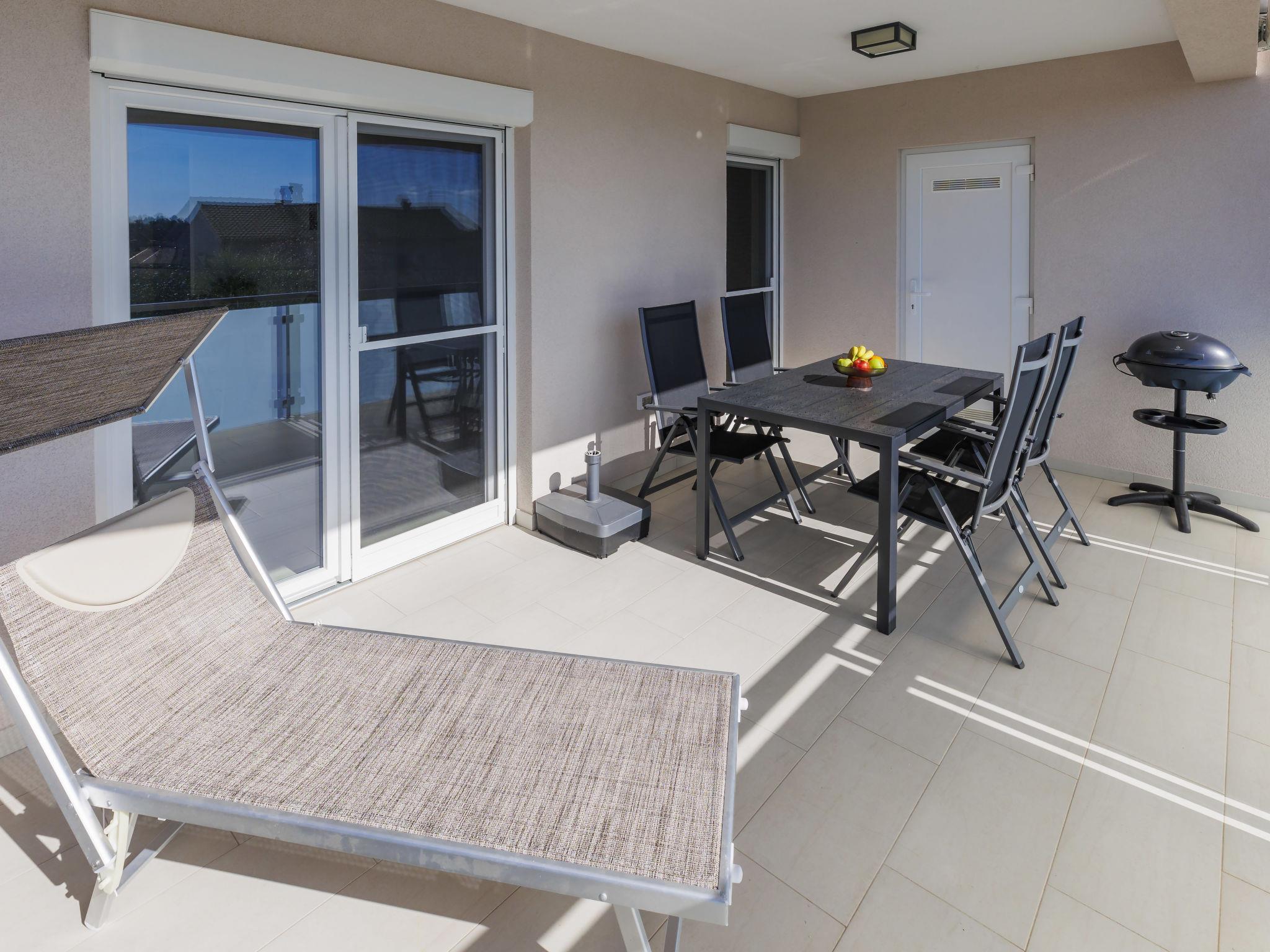 Murine 3 km from Umag: Apartment house "Villa Galici", built in 2022. In the hamlet Galici 1 km from the centre of Murine, in a sunny position, 2.5 km from the sea, 2.5 km from the beach. For shared use: property 1'000 m2 with lawn, swimming pool angular heated (10 x 5 m, depth 150 cm, seasonal availability: 01.Jan. - 31.Dec.) with internal staircase and shutter cover. Outdoor shower. In the house: internet access, table football. Parking at the house on the premises. Shop 1.5 km, restaurant 800 m, bus stop 4.1 km, pebble beach 2.5 km, rocky beach 2.5 km. Walking paths from the house 100 m, cycle lane 150 m. The owner does not accept any youth groups.