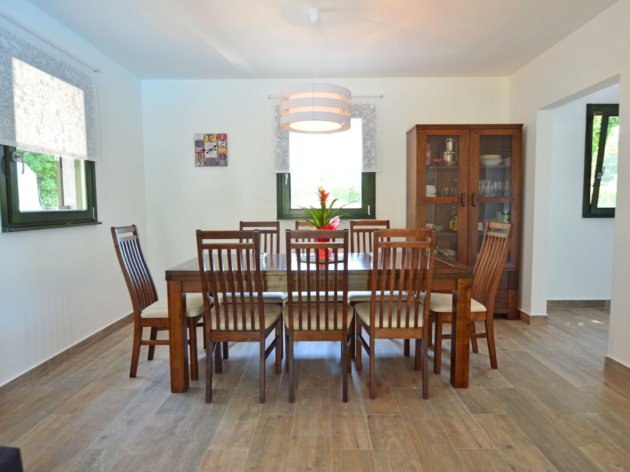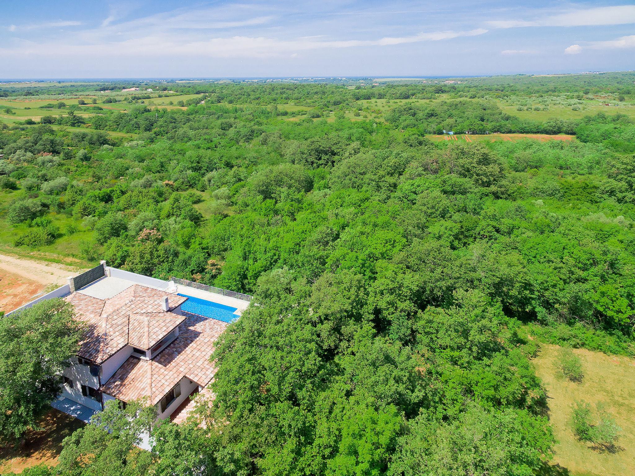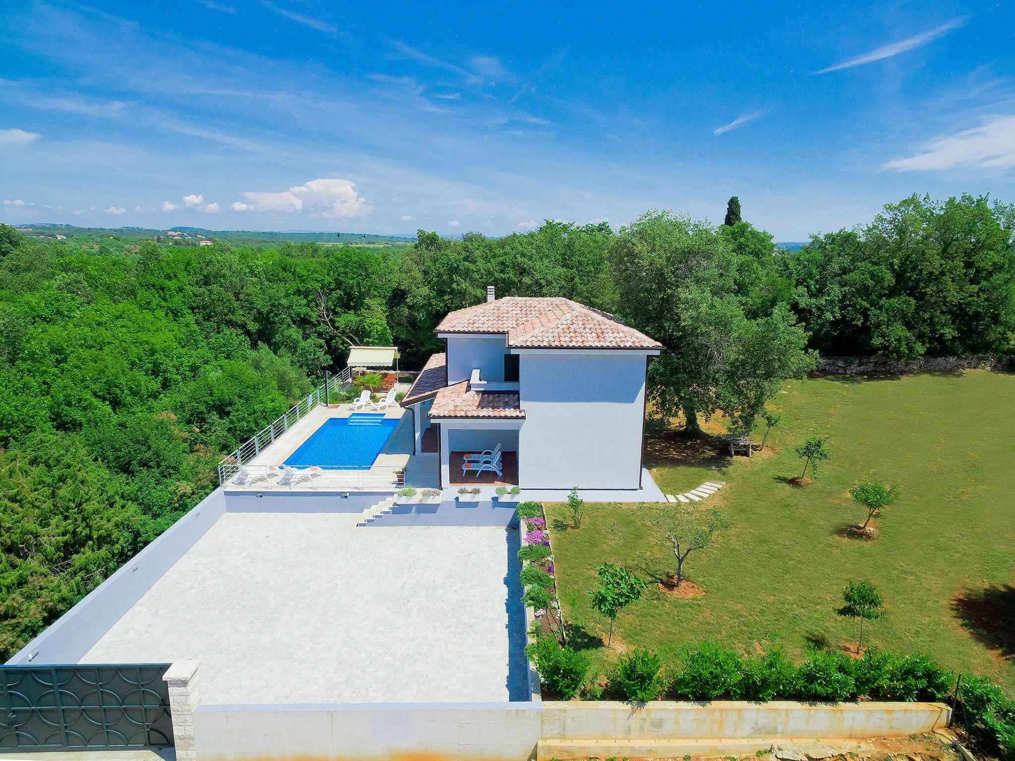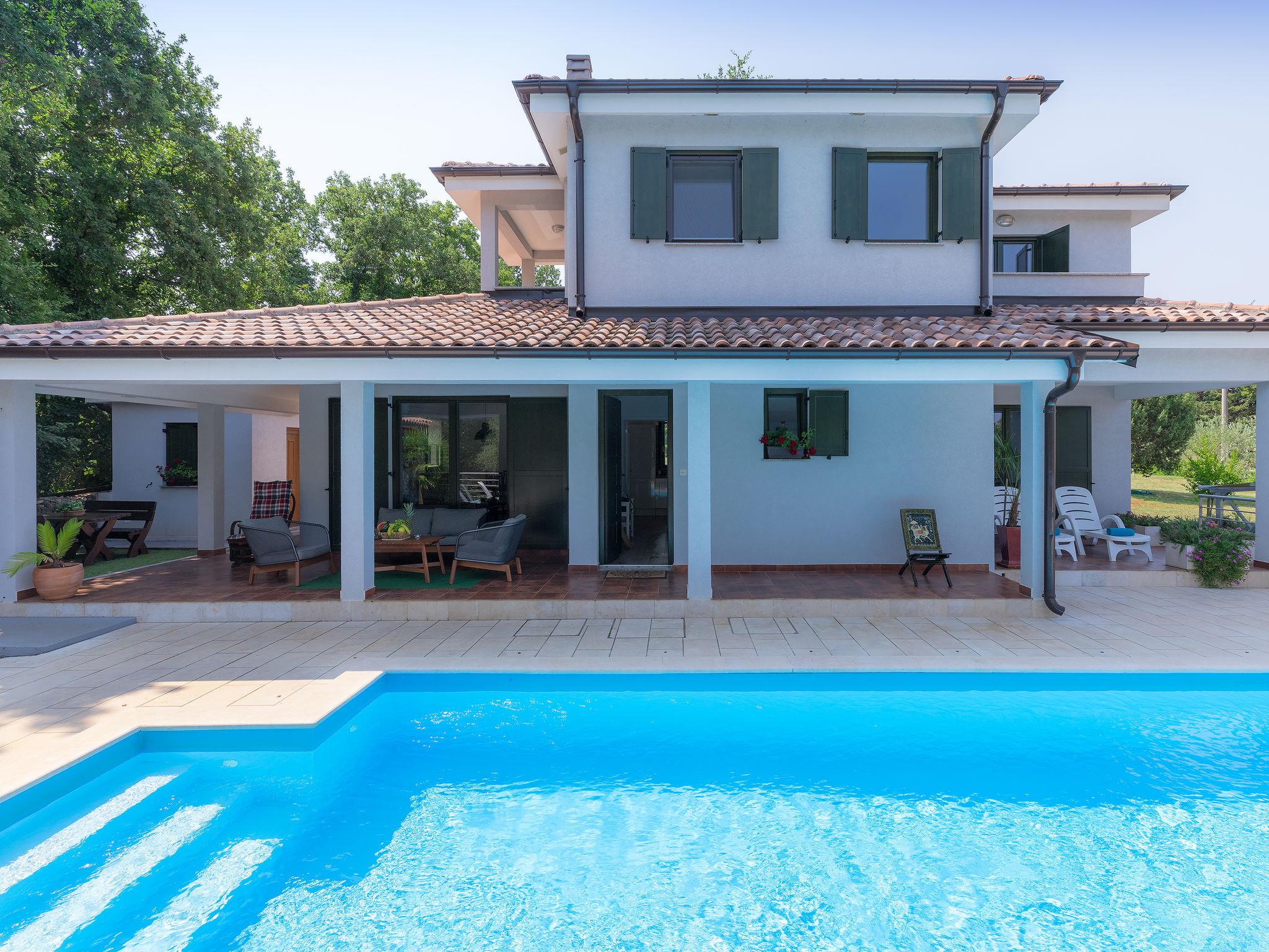 Murine: Single-family house "Fratrici", 2 storeys. In the hamlet Fratrici 1 km from the centre of Murine, 2.5 km from the centre of Umag, in a quiet, sunny position, 2.5 km from the sea, 2.5 km from the beach, in a cul-de-sac. Private: property 1'700 m2 (fenced), garden with lawn and wildlife garden, swimming pool angular (8 x 4 m, depth 100 - 140 cm, seasonal availability: 01.May. - 01.Nov.) with internal staircase. Outdoor shower, garden furniture, barbecue (swing). In the house: internet access, washing machine. Parking (for 3 cars) at the house on the premises. Shop, restaurant 500 m, bus stop 4.3 km, pebble beach 2.5 km, rocky beach 2.5 km. Tennis 2.5 km, walking paths from the house, cycle lane 200 m.