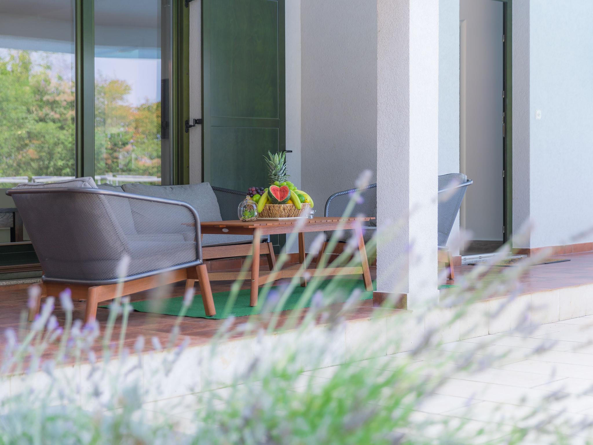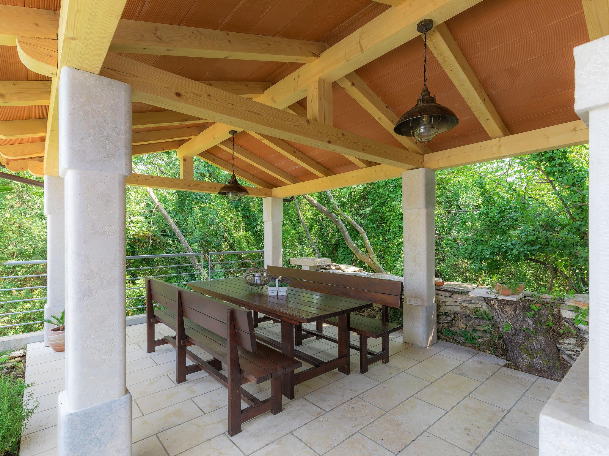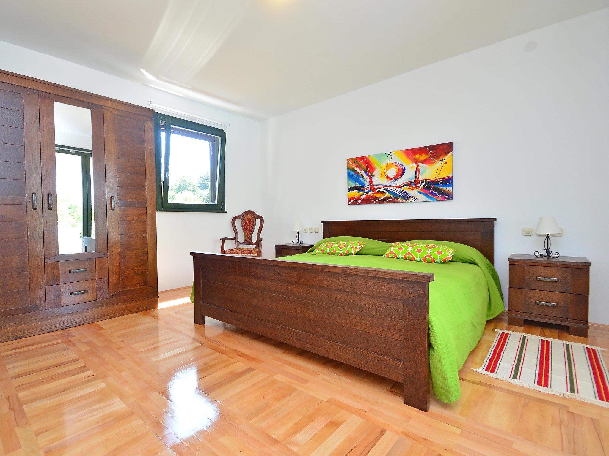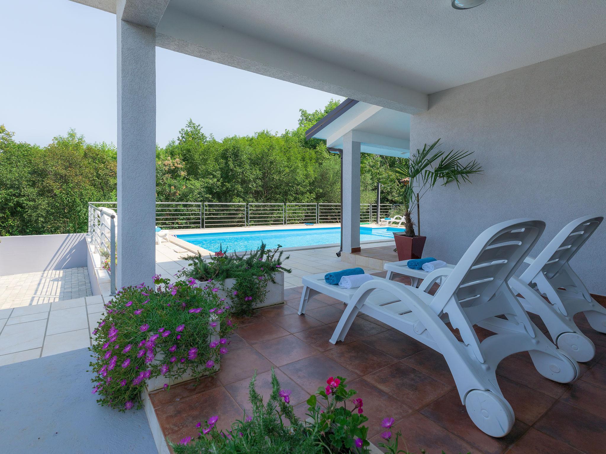 Murine: Single-family house "Fratrici", 2 storeys. In the hamlet Fratrici 1 km from the centre of Murine, 2.5 km from the centre of Umag, in a quiet, sunny position, 2.5 km from the sea, 2.5 km from the beach, in a cul-de-sac. Private: property 1'700 m2 (fenced), garden with lawn and wildlife garden, swimming pool angular (8 x 4 m, depth 100 - 140 cm, seasonal availability: 01.May. - 01.Nov.) with internal staircase. Outdoor shower, garden furniture, barbecue (swing). In the house: internet access, washing machine. Parking (for 3 cars) at the house on the premises. Shop, restaurant 500 m, bus stop 4.3 km, pebble beach 2.5 km, rocky beach 2.5 km. Tennis 2.5 km, walking paths from the house, cycle lane 200 m.