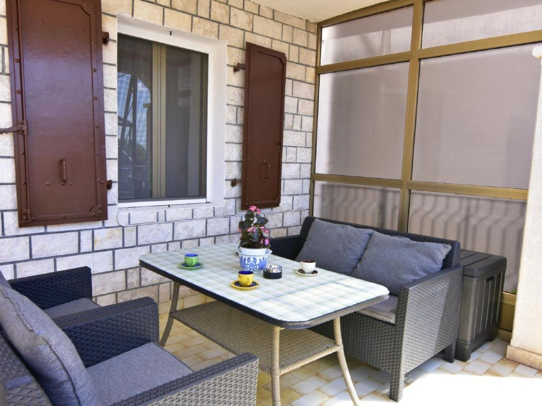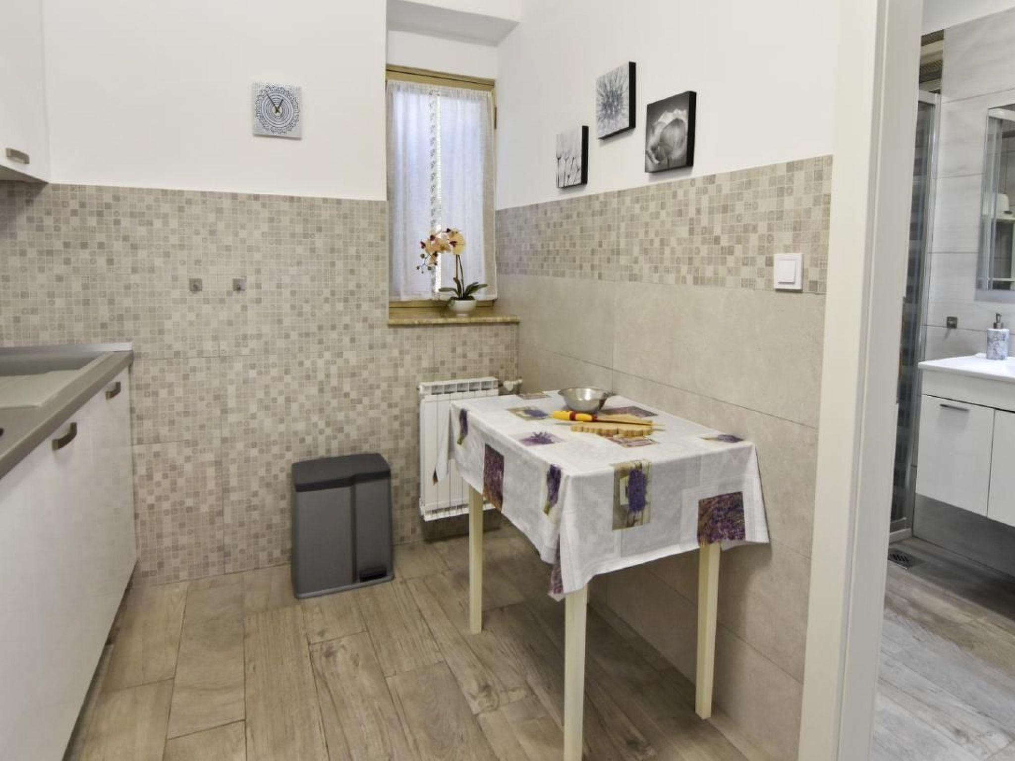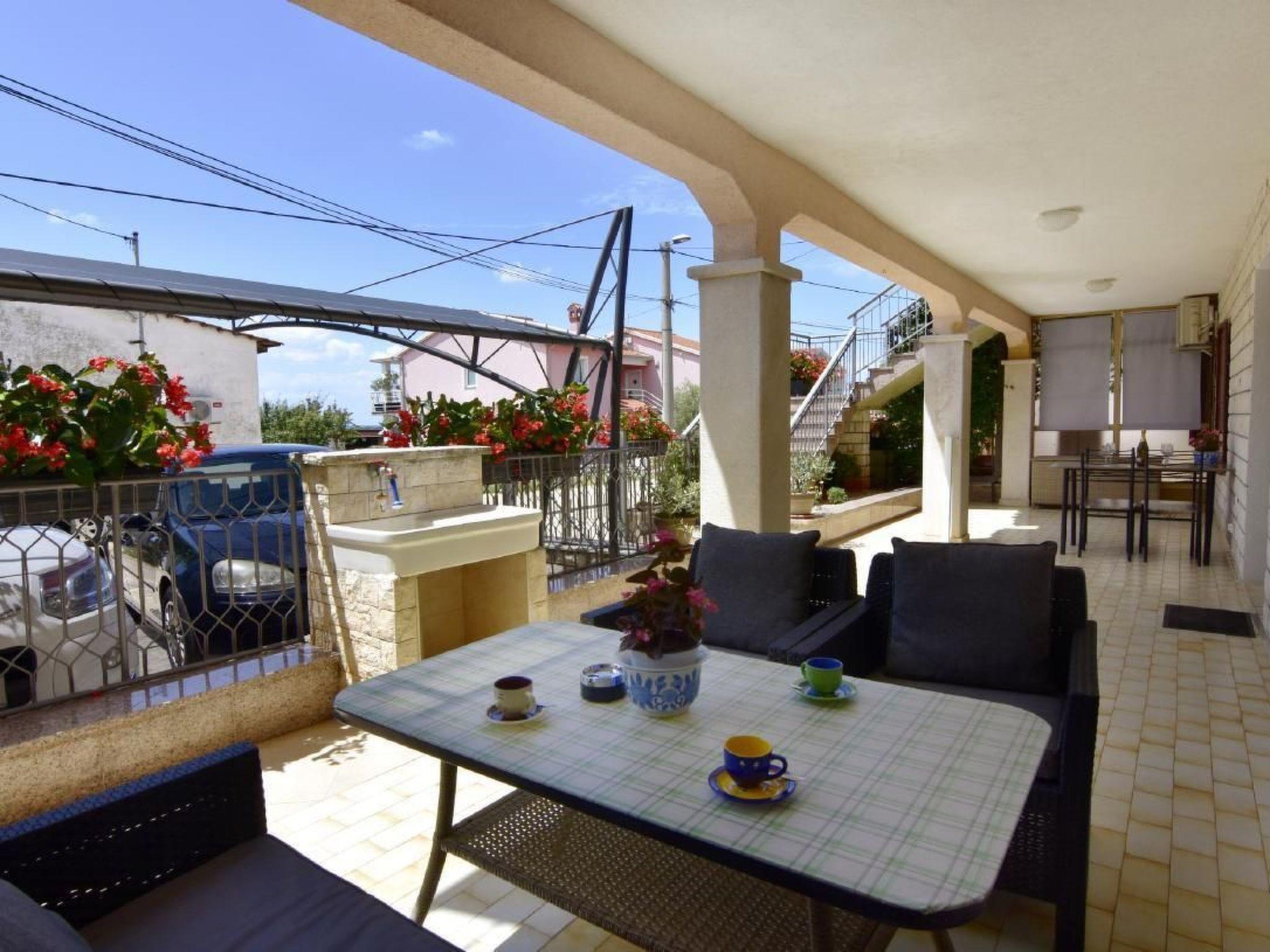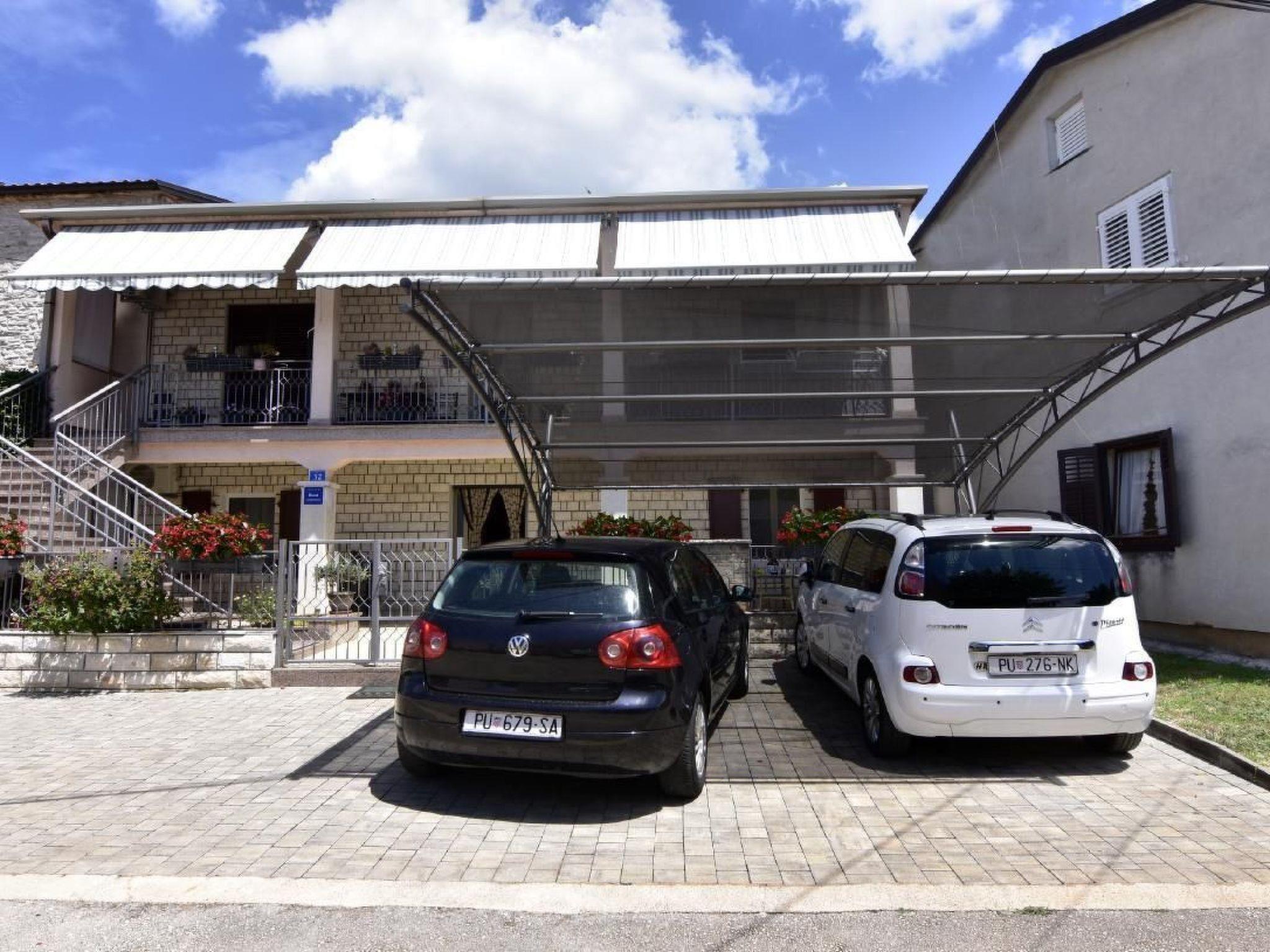 The apartment has a bedroom with a double bed and a single bed for a child up to 10 years on request, bed linen provided (changed weekly), two bedside tables with night lamps, wardrobe, flat-screen satellite TV, air conditioning and a private bathroom with shower, sink and toilet. The living area has a dining table with 4 chairs, sofa bed for two people, air conditioner, flat-screen satellite TV, wardrobe, free Wi-Fi internet connection. From the living area access to the kitchen equipped with oven, refrigerator, microwave oven, stove with 4 gas burners, kettle, coffee machine, plates, cutlery, glasses and kitchen utensils, dining table. From the kitchen, access to the second complete bathroom with shower, washing machine, toilet, sink with cabinet and mirror, hairdryer, and bathroom towels two per person provided (changed weekly). At the entrance of the apartment, the large terrace is equipped with garden furniture and a table and chairs to enjoy the morning coffee or a glass of Istrian wine in the evening. Covered parking with two parking spaces is available in front of the house.