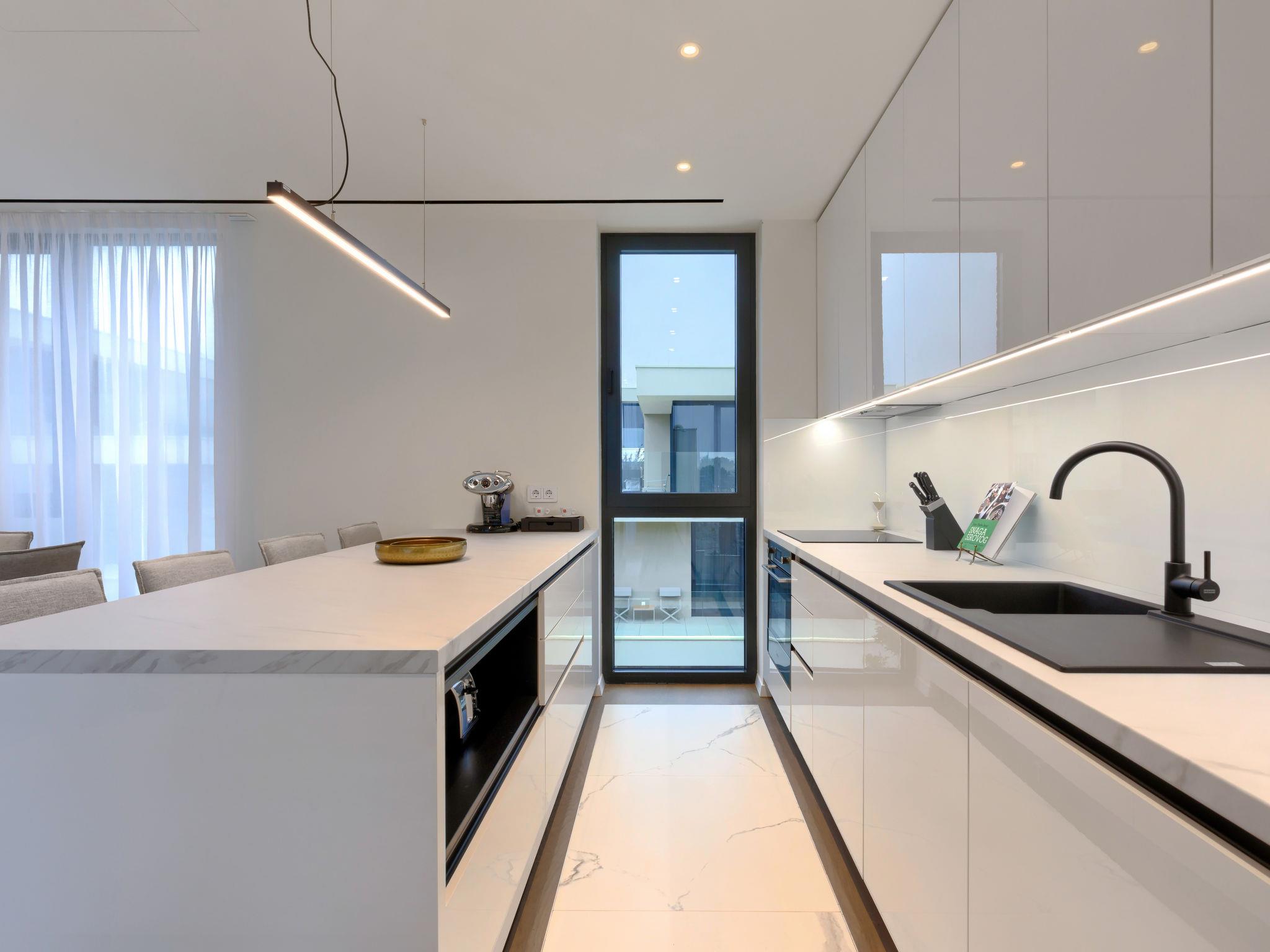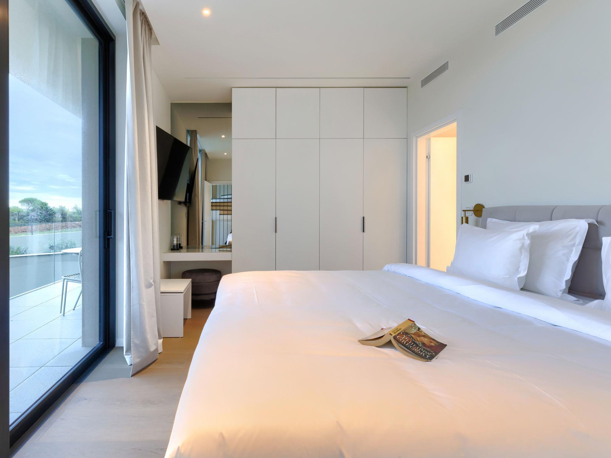 Semi-detached house "Semi-detached Villas Crveni vrh", built in 2023. 1.5 km from the centre of Savudrija, 10 km from the centre of Umag, in a quiet position on a slope, residential area (villas), 500 m from the sea. For shared use: property with lawn, 2 swimming pools, indoor pool (105 m diameter, depth 50 - 140 cm, seasonal availability: 01.Jan. - 31.Dec.) with internal staircase. Unconventional pool shape. Shower/WC in the pool area, children's pool, tennis (extra), children's playground. Private: property (fenced). In the complex: reception, restaurant, bar, bistro, internet access, sauna, fitness room, massage (extra). Hot tub, relaxation room, spa area, playroom, shopping facilities, lift, sun terrace. Parking at the house on the premises. Shop 1 km, supermarket 10 km, bus stop 8 km, railway station 33 km, sandy beach 5 km pebble beach 2 km, rocky beach 500 m. Golf course (18 hole) 2 km, tennis 500 m, walking paths from the house 100 m. Please note: 24hr guard. The photograph shows a typical example. Neighbourhood highly sensitive to noise. Quietness and good behaviour expected.