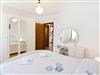 The apartment has a bedroom with a double bed 160x200, two bedside tables with night lamps, cabinet with mirror, wardrobe, the second bedroom with two single beds 80x200, wardrobe, bedside table with lamp, bed linen is provided (changed weekly) , the bathroom with bathtub, bidet, washing machine, sink with cabinet and mirror, two bath towels per person are provided (changed weekly). The living area with equipped kitchenette, refrigerator with freezer area, coffee machine, kettle, dishwasher, oven, stove with three gas burners and an electric hob, extractor hood, kitchen utensils. The dining corner with dining table and 5 chairs, the living corner with sofa bed, kitchen cabinet, flat-screen satellite TV, free Wi-fi internet connection, air conditioner, exit to the terrace. The terrace furnished with table and chairs, portable barbecue for shared use available. Free private parking near the house.