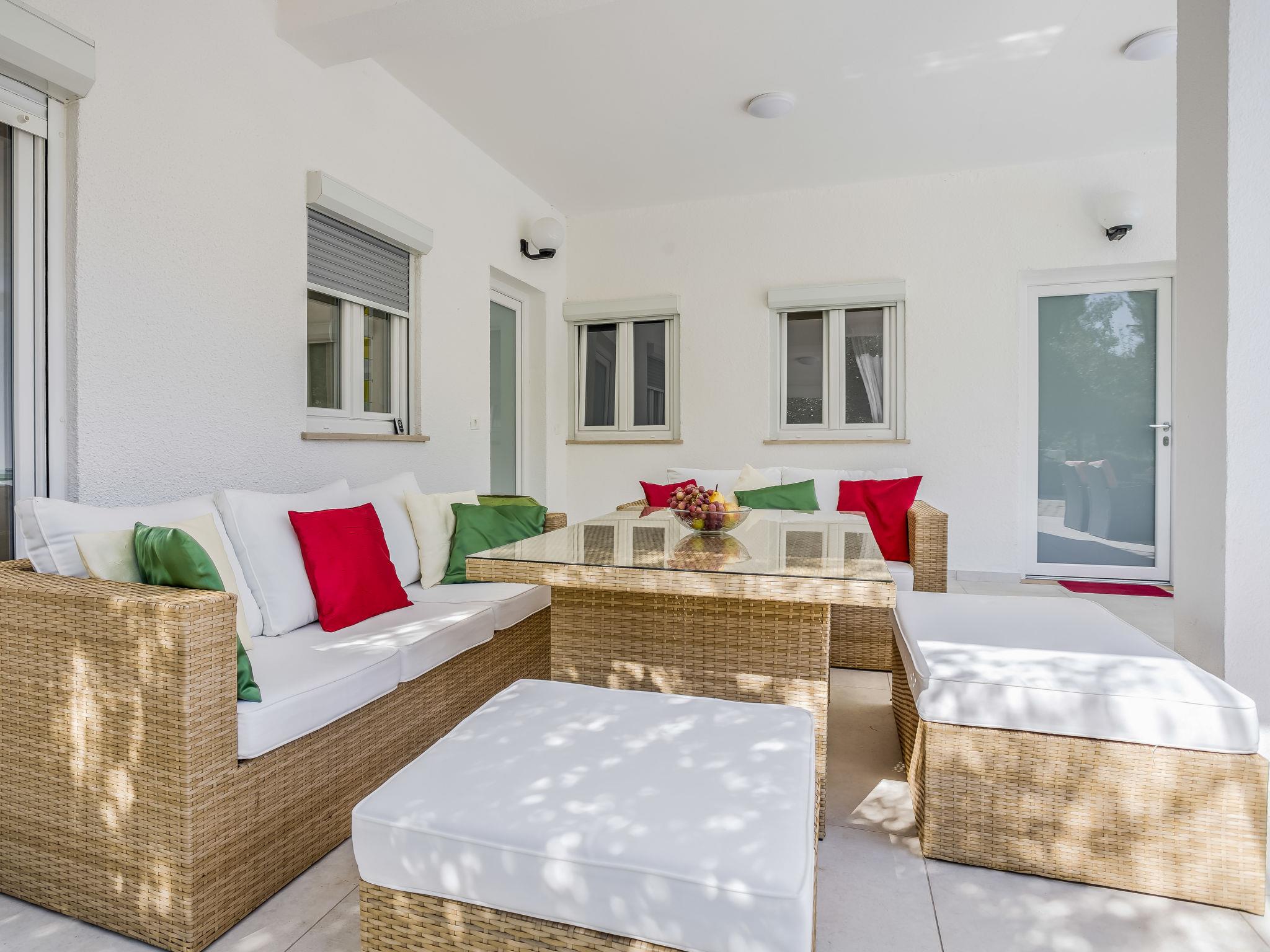 Apartment house "File". In the district of Zambratija, 3 km from the centre of Umag, 300 m from the sea, 300 m from the beach, in a cul-de-sac. For shared use: property 1'000 m2 (fenced) with lawn 100 m2, plants, swimming pool (7 x 4 m, depth 140 cm, seasonal availability: 01.May. - 15.Sep.). Outdoor shower, terrace (50 m2), garden furniture, barbecue. In the house: WiFi. Parking at the house. Shop 500 m, restaurant 100 m, bus stop 5.1 km, pebble beach 600 m, shingle beach, rocky beach 300 m, public bathing area 600 m. Sports centre 600 m, children's playground 50 m. Please note: the owner lives on the same property. Additional accommodations can be booked. WIFI limited speed. Sandy beach, plain sloping 600 m. Starting point of the mini train to Umag 600 m.