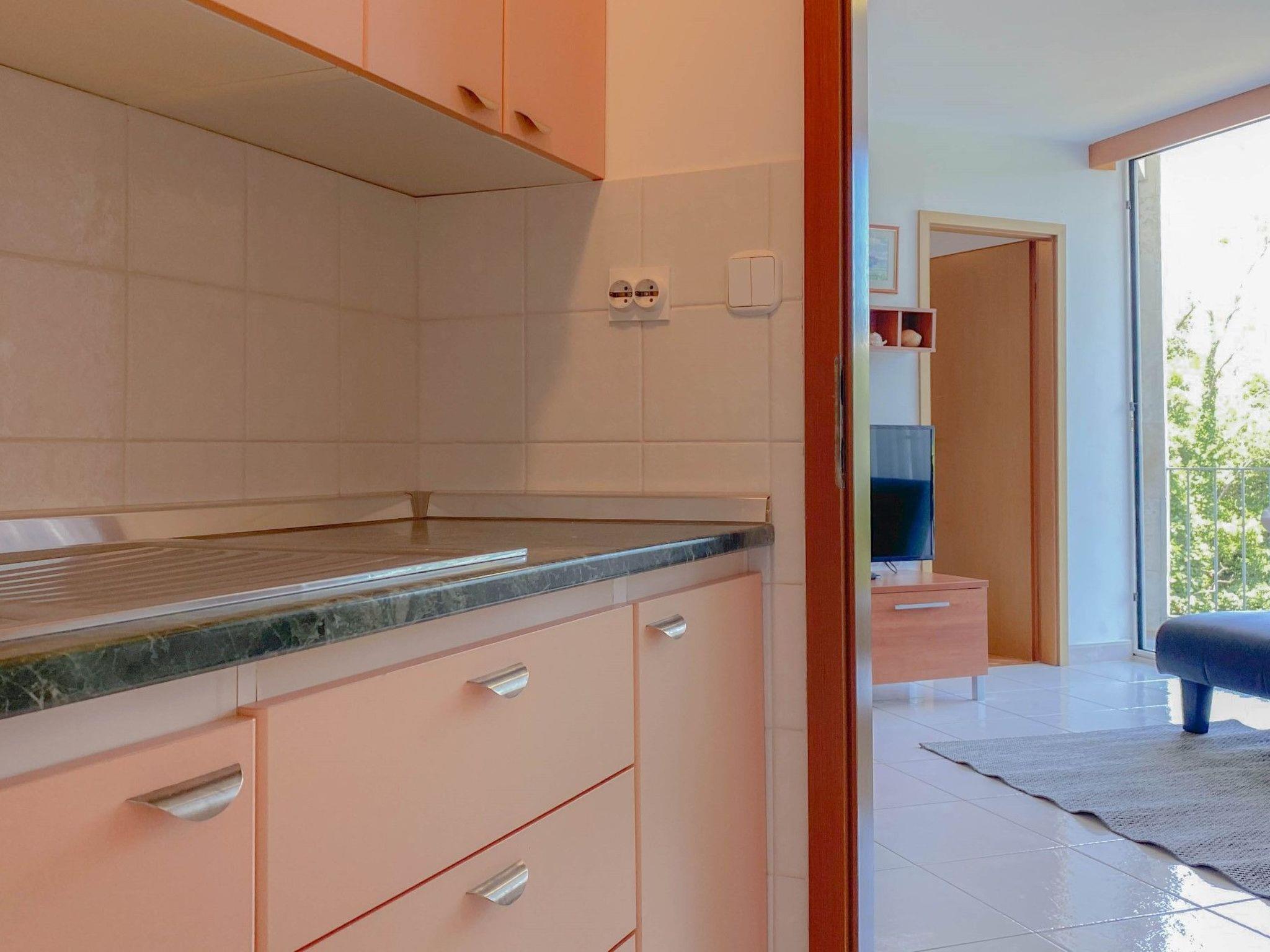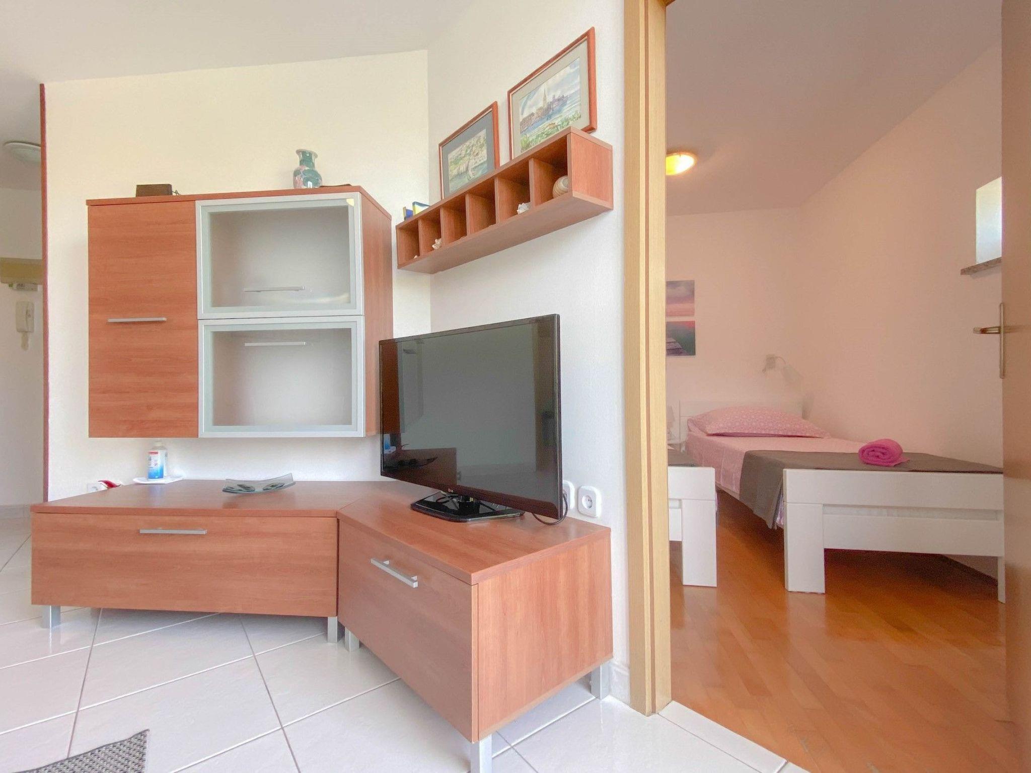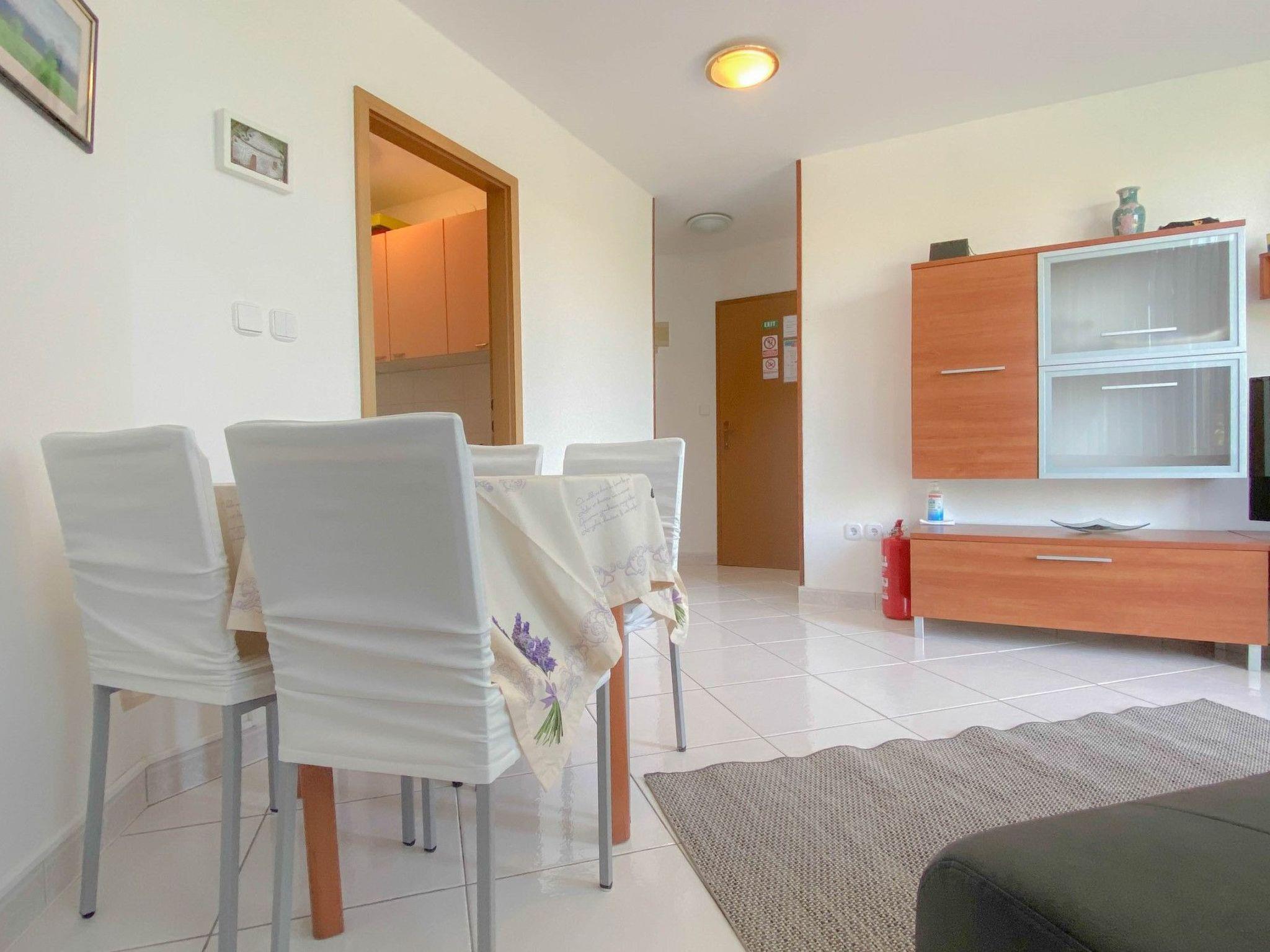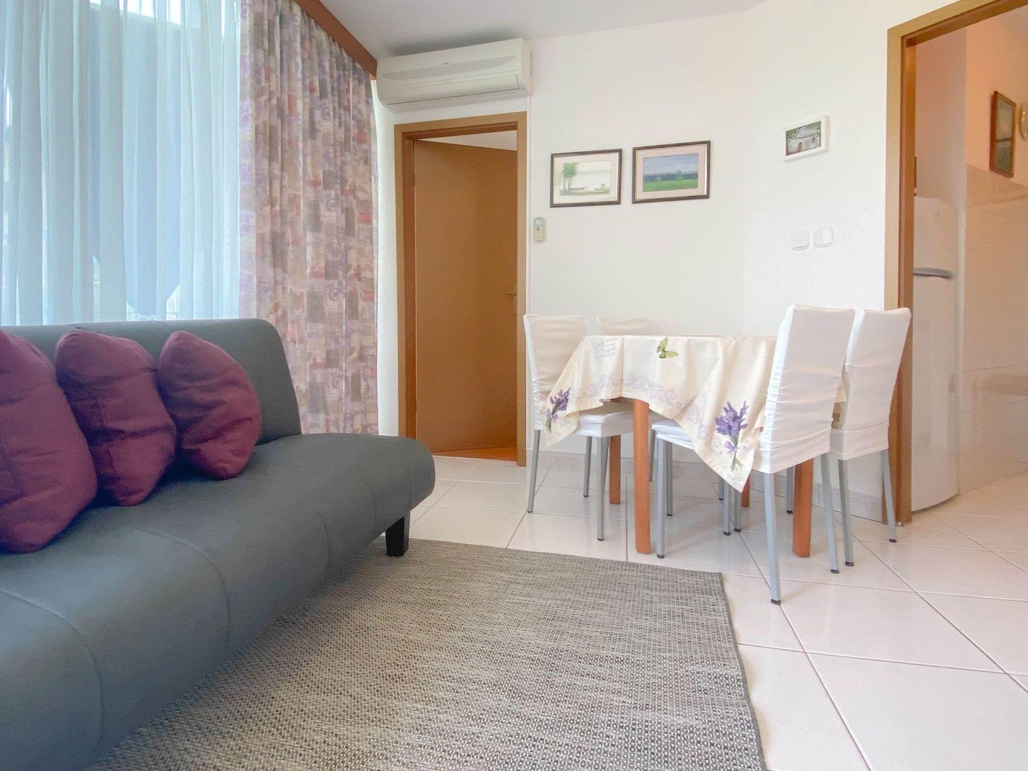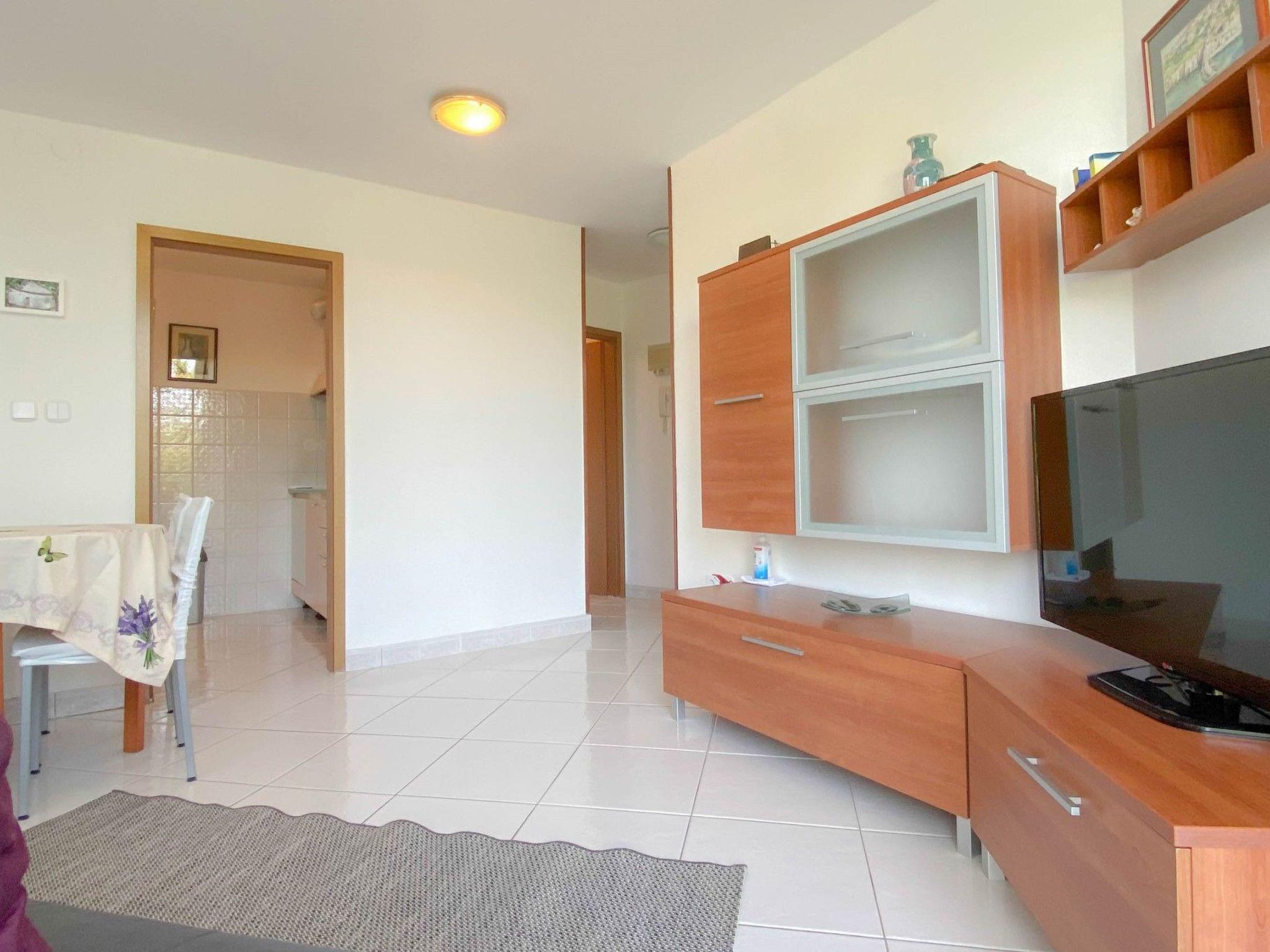 Inside, the apartment offers a comfortable and convenient living space. It features two well-appointed bedrooms, ensuring a restful night's sleep for all guests—one with a welcoming double bed and the other with two single beds, catering to various sleeping arrangements. The combined living and kitchen area is fully equipped to meet your culinary needs, complete with an electric stove, refrigerator, microwave, and, of course, a coffee maker for those leisurely mornings. The apartment is further enhanced by partial air conditioning, keeping you cool during those warm Mediterranean days. Entertainment and connectivity are readily available, with SAT-TV and WLAN included, making it easy to stay connected or unwind after a day of exploring.