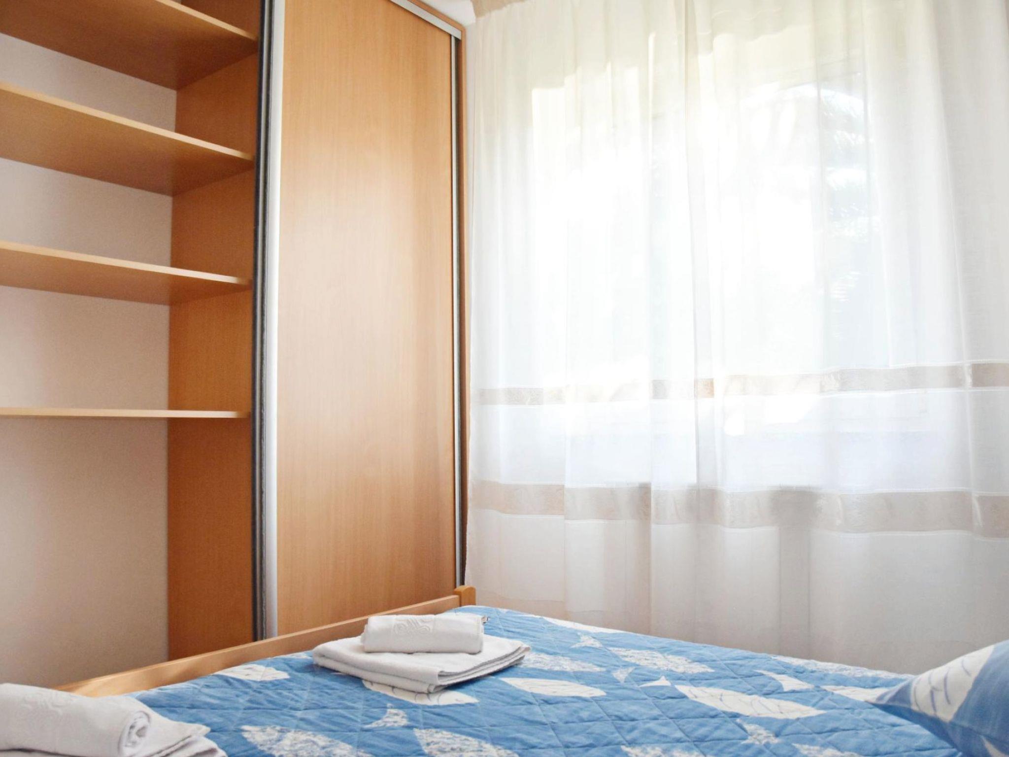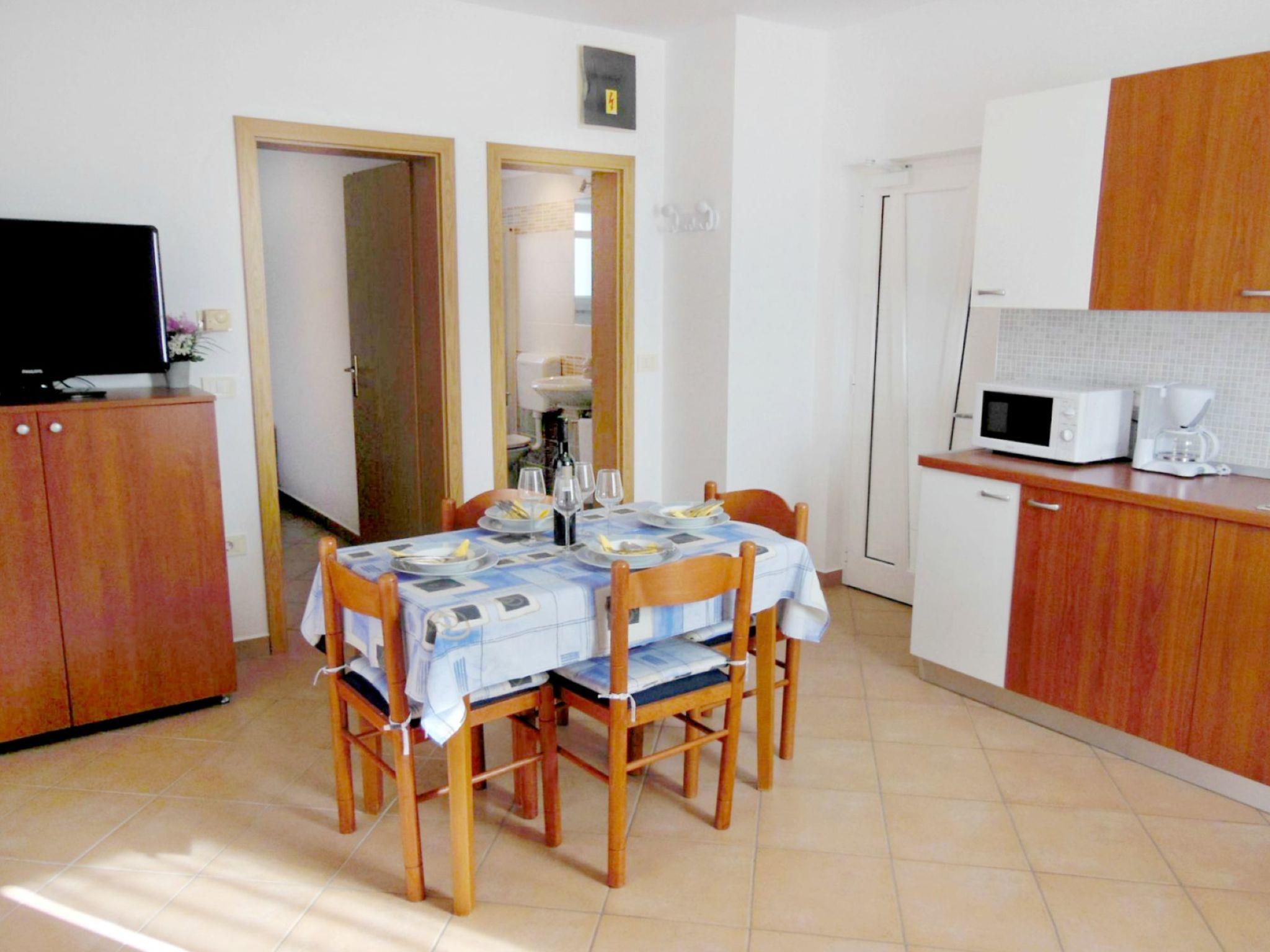 The bright, air-conditioned flat on the ground floor is lovingly furnished and offers a bedroom with a comfortable double bed (including weekly linen change) and a practical wardrobe. The fully equipped eat-in kitchen has all the necessary appliances, a sofa bed for two additional guests and a flat-screen satellite TV. Free Wi-Fi and access to the balcony with a view of the green garden round off the offer and ensure a cosy living ambience.