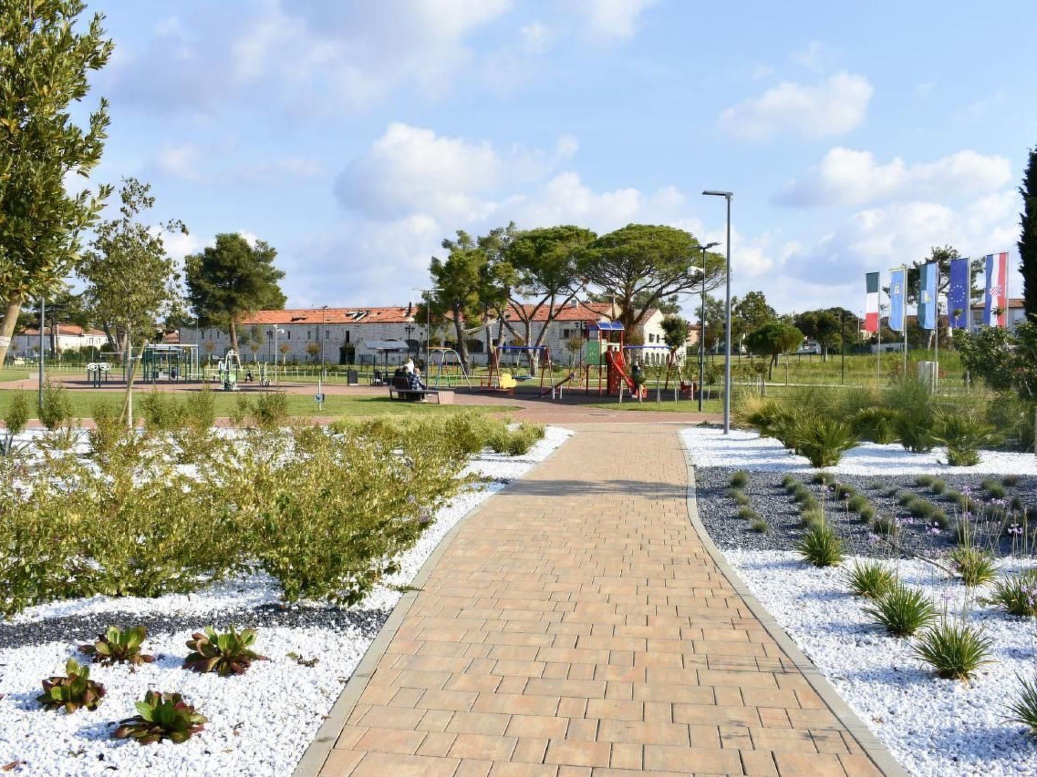 The area surrounding our holiday flat in Zambratija is rich in leisure activities and cultural highlights. Only a short distance separates you from the well-equipped sandy beach of Zambratija and inviting shops and bars. A wide range of activities such as water sports, excellent fish restaurants, tennis courts, an 18-hole golf course and cultural discoveries in Umag are available to you. There is also the Funtana amusement park and Istralandia water park nearby for young and old to explore, as well as historic villages and natural wonders.