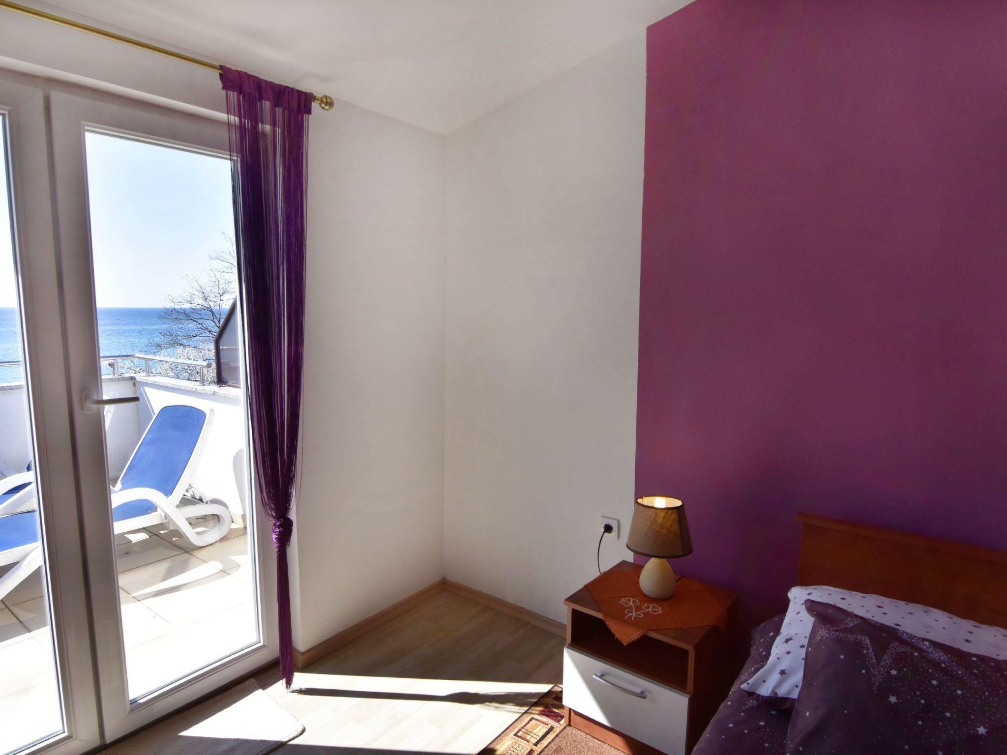 Apartment 2 on the second floor has a bedroom with a double bed, bedside tables and wardrobe with exit to the terrace with sea view, bathroom with shower, sink and toilet, kitchen with a stove, refrigerator, dining table and 4 chairs, a sofa bed for two people, coffee table, air conditioning and flat-screen satellite TV. Exit to the magnificent spacious sea view terrace equipped with deck chairs, table and benches is ideal for breakfast or enjoying a glass of Istrian wine in the evening while admiring the sunset