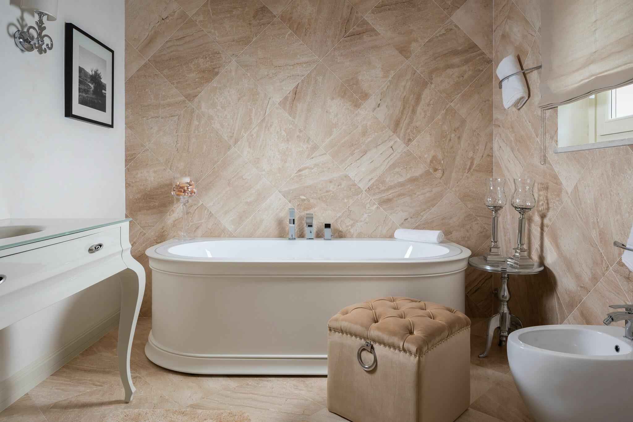 Find din ideelle ferieplads, der opfylder og overgår alle dine forventninger i Villa Adele! Villaen ligger i en stille landsby i Istrien, og inviterer dig til en luksuriøs og ubekymret ferie væk fra dine daglige bekymringer og opgaver. Udover det sofistikerede og eksklusive interiør fanger den luksuriøse villa Adele med uberørt natur, krystalklart hav, ro og privatliv for en virkelig afslappende ferie. Afhængig kvalitetstid med din familie og venner på en ferie i villa Adele, der kan rumme 8 personer. Dens overflade på 263 m2 indeholder 4 smukt indrettede værelser med tilstødende badeværelser, et fuldt udstyret moderne køkken samt en elegant og komfortabel stue. Udendørs med swimmingpool, grill og spiseplads giver fremragende plads til at dele vidunderlige øjeblikke. Forfriskning ved at svømme i poolen, og tør derefter af med de bløde Mastro Raphaël håndklæder eller ligg ned på liggestolene ved poolen og føl varme solstråler på din hud. Oplev skønheden i Istrien på cykel, der er let tilgængelig for dig på villaen. Villa Adele byder dig velkommen med et stort ur over dets hoveddør, der minder dig om at gribe hvert eneste øjeblik på dit ophold for at tilbringe uforglemmelige øjeblikke i ren harmoni med dens indre og udendørs område. Også dit perfekte stykke paradis venter dig på øverste etage - en stor møbleret terrasse med fantastisk udsigt over Vabriga. Kommunikér dine ønsker til vores venlige personale, og de vil sikre, at ferien går glat med perfekte øjeblikke at huske. For at føle sig godt tilpas med os , arrangerer vi efter anmodning udflugter, besøg på berømte vingårde eller fremragende restauranter. Gratis adgangskort til hotelkomplekset Lanterna, hvor sandstrande og børns underholdning er.