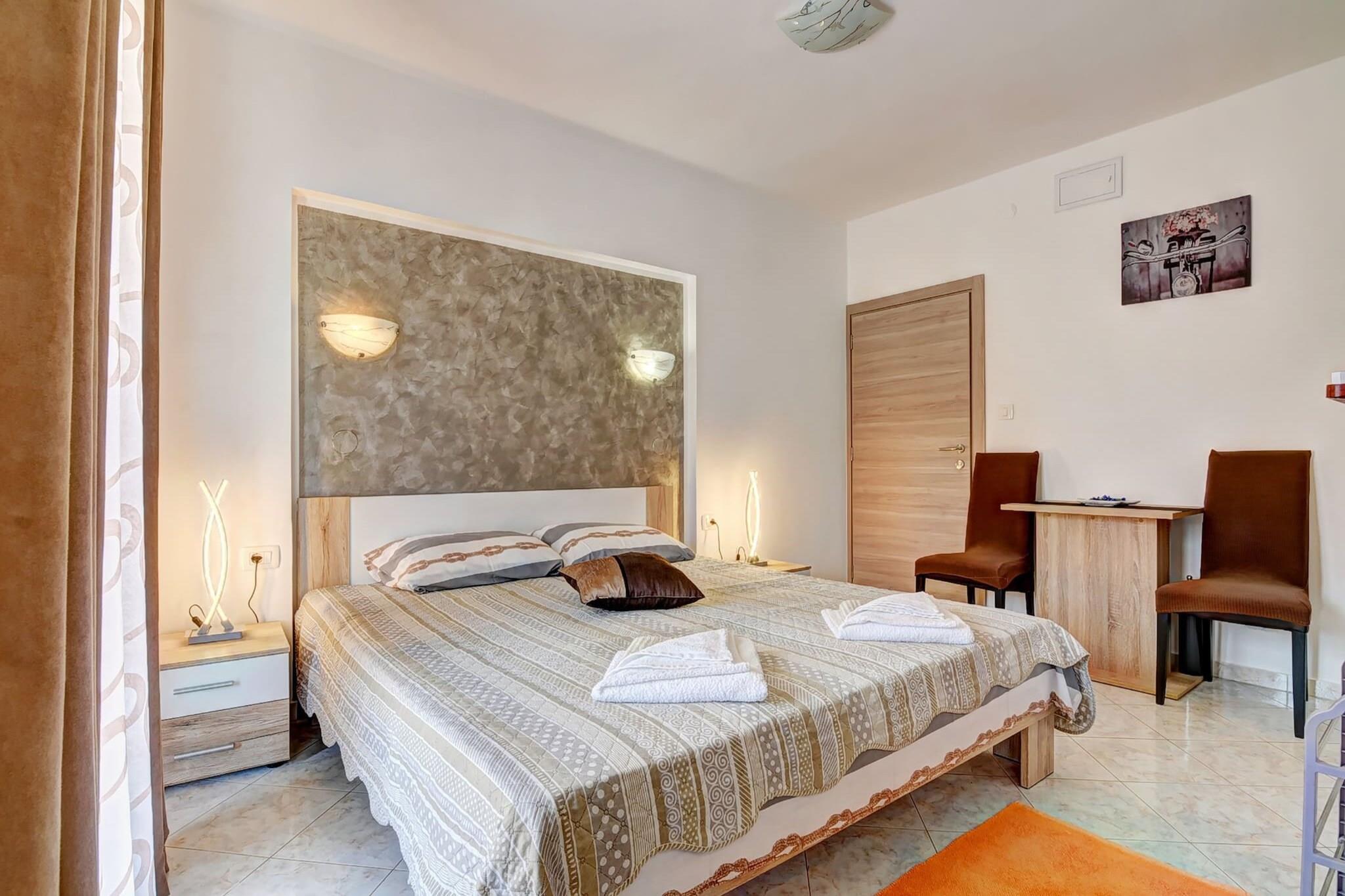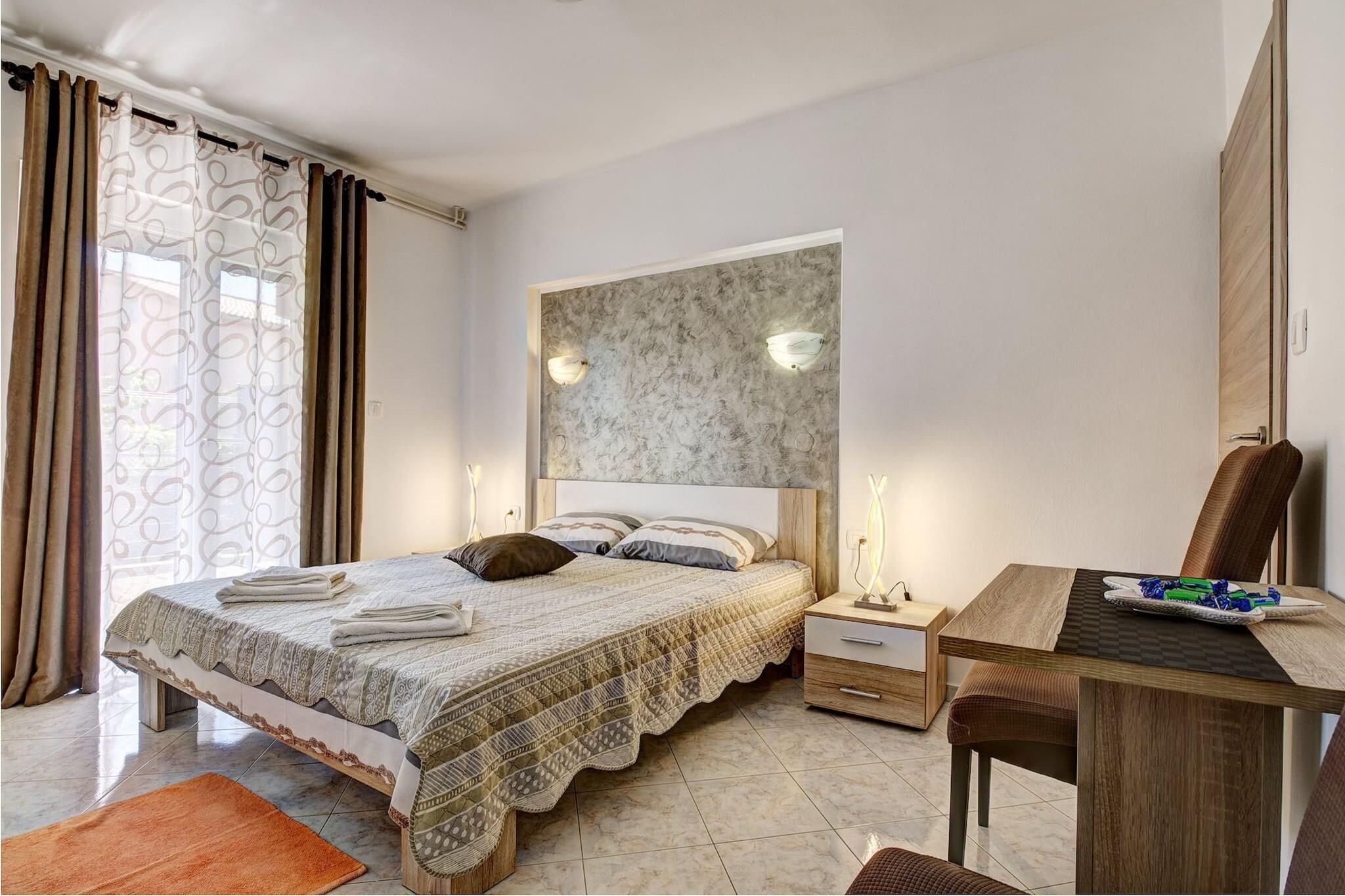 The atelier i Valbandon har kapacitet til 2 person(er). Bolig på 16 m² elegant og is very luminous, med udsigt til have. Er beliggende 50 m from the restaurant "Jedro", 300 m fra busstationen, 800 m from the restaurant "Navetta", 1 km fra stenstranden "Valbandon", 1 km fra supermarkedet "Studenac", 2 km fra supermarkedet "Plodine", 2 km fra byen "Fažana", 2 km fra naturparken "Boat to National Park Brijuni", 9 km fra byen "Pula", 13 km fra lufthavnen "Airport Pula (PUY)" og er beliggende i et charmerende område og i et bolig kompleks. Tilbyder have, terrassemøbler, terrasse, grill, kamin, internet (wifi), hårtørrer, aircondition, garage til den samme bygning, 1 TV, satellit (Sprog: Engelsk). The køkken, med service og køleskab, mikroovn, fryser, tallerkener/bestik, køkkenredskaber, kaffemaskine, brødrister, kedel, komfur, køkkengrej, tallerkener og skåle.