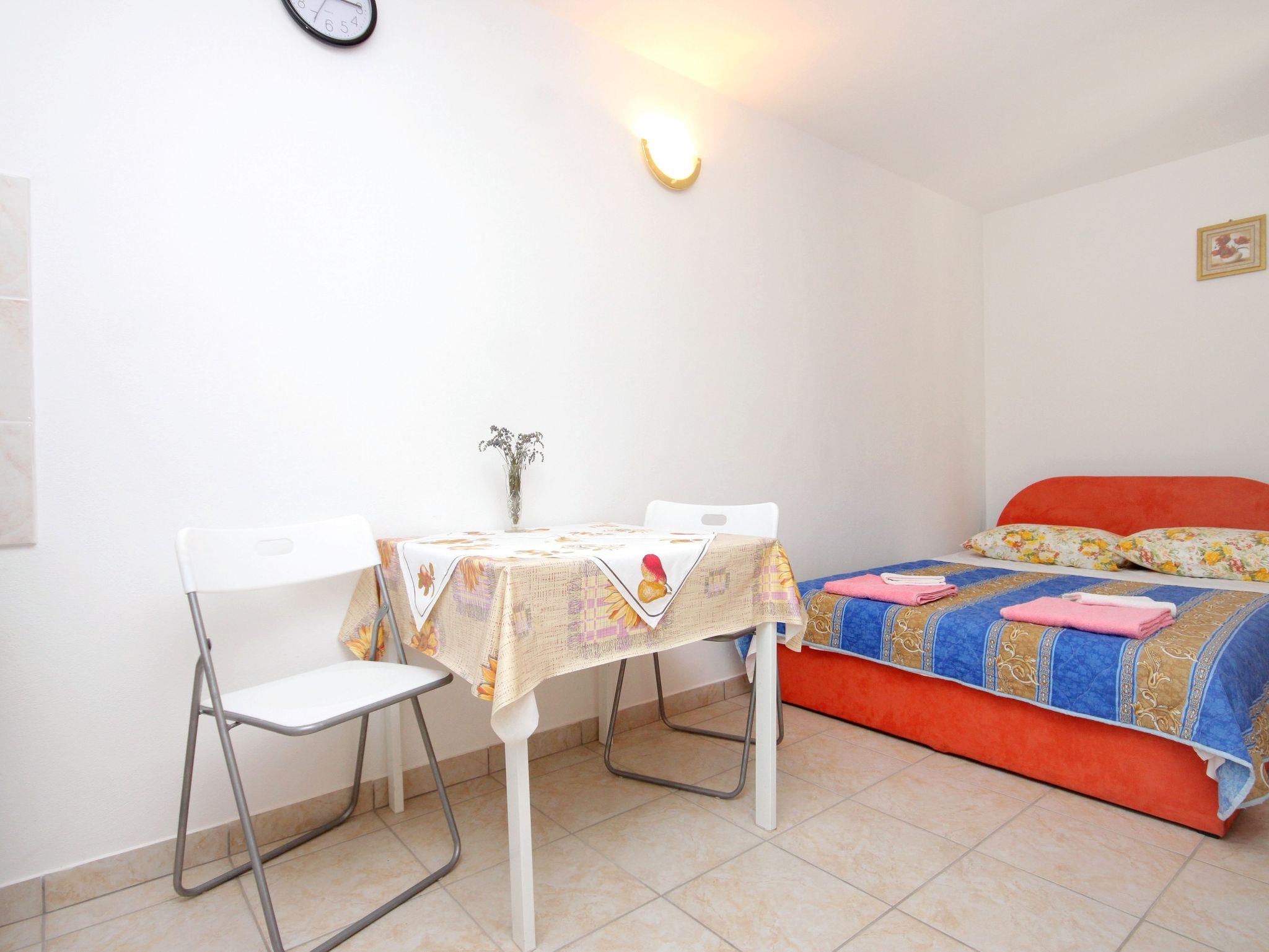 Studio bietet Platz für 2 Gäste. Die Betten sind in Schlafzimmern, die es 1 gibt, innerhalb einer Gesamtfläche von 15m2, angeordnet. Die Gäste haben eine eigene Terrasse zur Verfügung, auf der sie in warmen Sommernächten genießen können. Es ist erlaubt, Speisen auf dem Gemeinschafts-Grill vorzubereiten. IM PREIS INBEGRIFFEN: Kurtaxe, Endreinigung, Klimatisierung, Parkplatz, Internet, Wäschewaschen, Bügeleisen, Bügelbrett, Föhn, tragbarer Grill. VERBINDLICHE ZUSÄTZLICHE KOSTEN: Aufzahlung für Kurzaufenthalte (prozentualer Zuschlag pro Nächtigungsanzahl: 30% - 1, 20% - 2, 10% - 3). Die Verfügbarkeit zusätzlicher Dienstleistungen in Ihrem reservierten Termin und die Preise derselben (falls nicht aufgeführt) müssen im Voraus überprüft werden. Zusätzliche Dienstleistungen die in der Zahlungsaufforderung nicht aufgeführt sind werden direkt beim Vermieter bezahlt, angenommen der Gast nutzt auch diese. Ermäßigung auf den Grundpreis: Gratistag 14=13 (bei einem Aufenthalt von 14 Tagen oder mehr erhalten Sie einen Gratistag für den Aufenthalt bis 31.12.26).