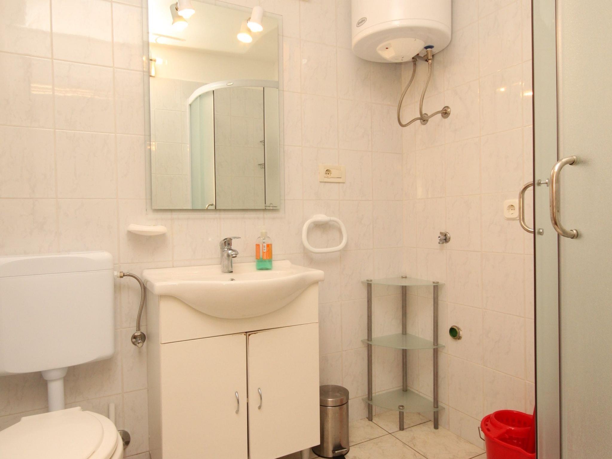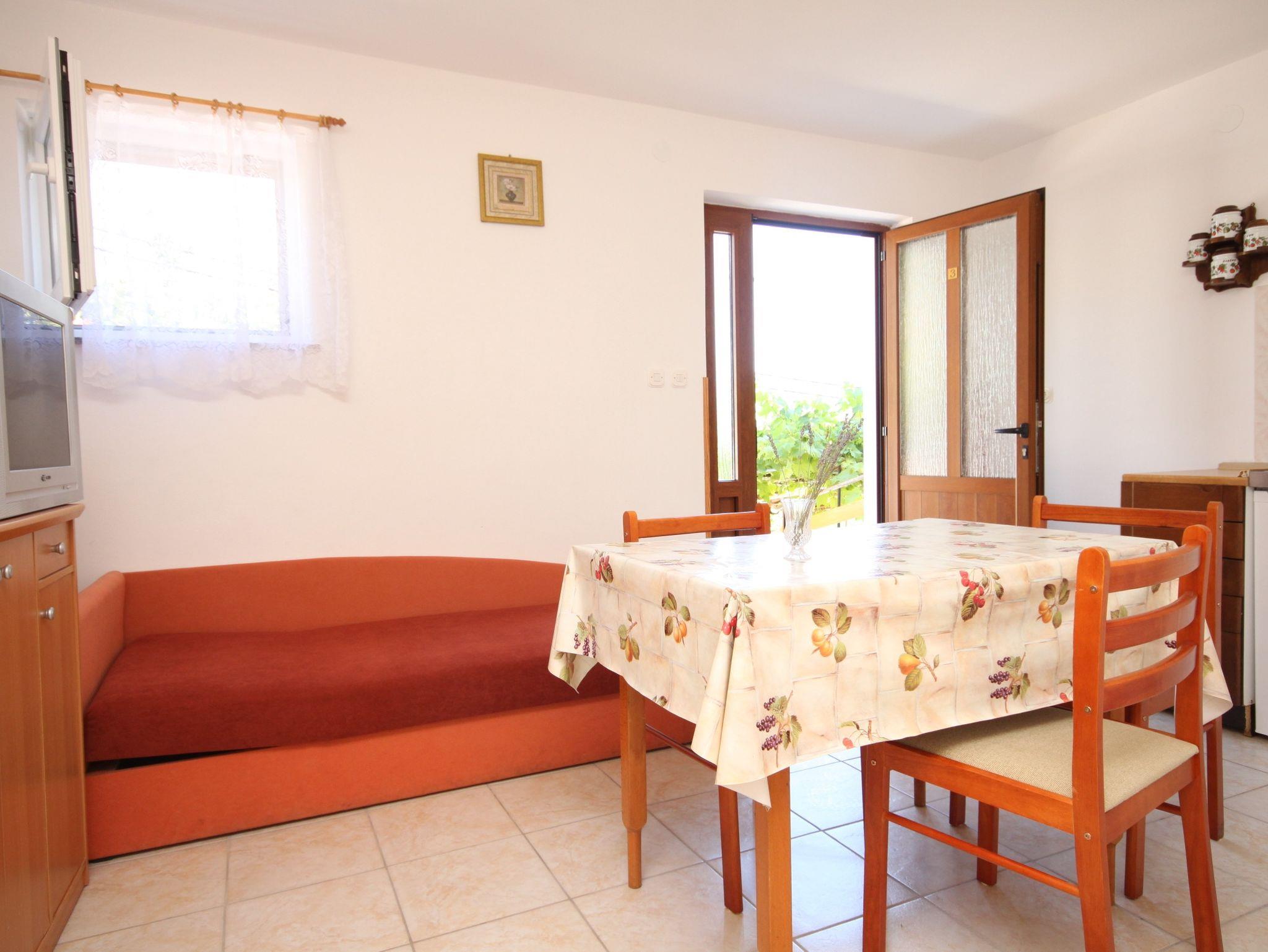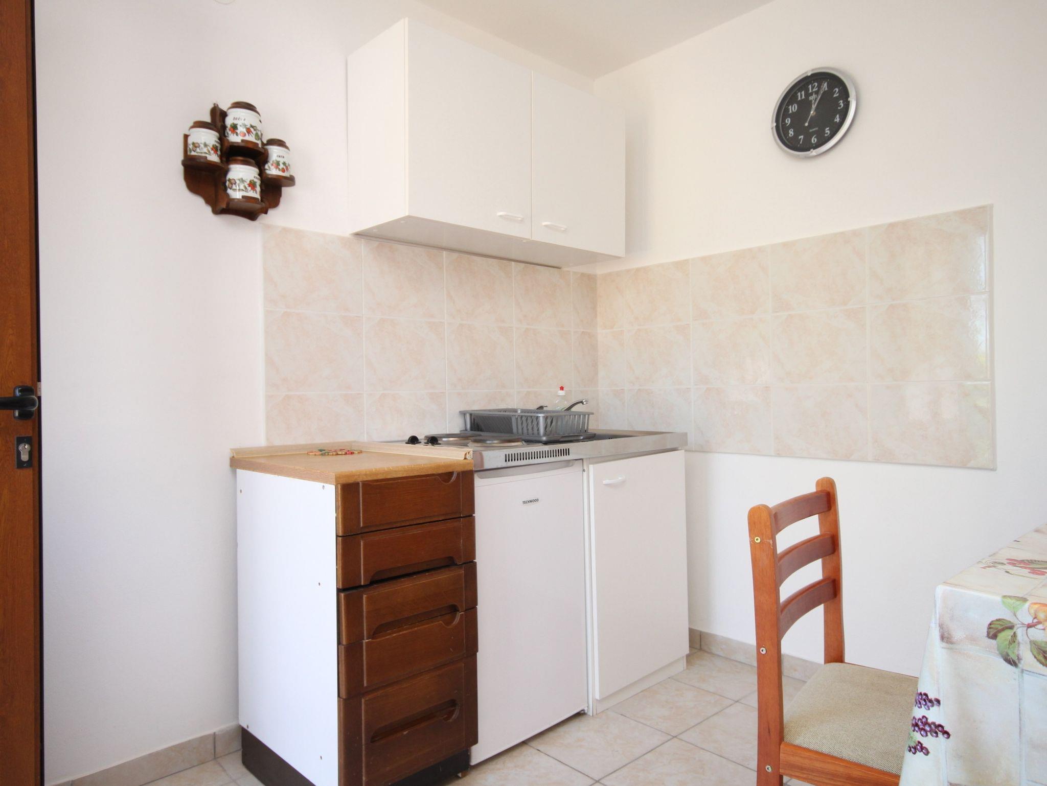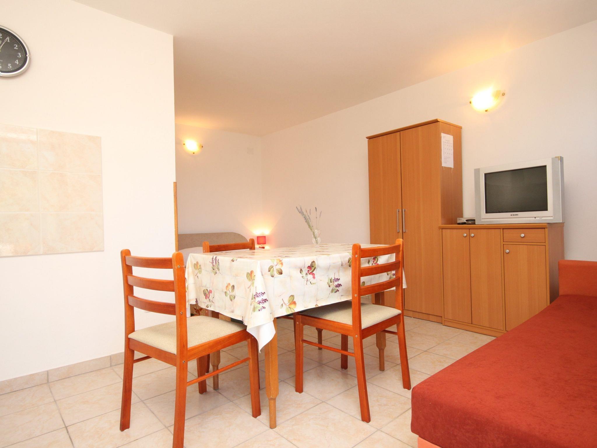Studio bietet Platz für 3 Gäste. Die Betten sind in Schlafzimmern, die es 1 gibt, und in Esszimmer, innerhalb einer Gesamtfläche von 21m2, angeordnet. Die Gäste haben eine eigene Terrasse zur Verfügung, auf der sie in warmen Sommernächten genießen können. Das Studio-Apartment bietet Meerblick. Es ist erlaubt, Speisen auf dem Gemeinschafts-Grill vorzubereiten. IM PREIS INBEGRIFFEN: Kurtaxe, Endreinigung, Klimatisierung, Parkplatz, Internet, Wäschewaschen, Bügeleisen, Bügelbrett, Föhn, tragbarer Grill. VERBINDLICHE ZUSÄTZLICHE KOSTEN: Aufzahlung für Kurzaufenthalte (prozentualer Zuschlag pro Nächtigungsanzahl: 30% - 1, 20% - 2, 10% - 3). Die Verfügbarkeit zusätzlicher Dienstleistungen in Ihrem reservierten Termin und die Preise derselben (falls nicht aufgeführt) müssen im Voraus überprüft werden. Zusätzliche Dienstleistungen die in der Zahlungsaufforderung nicht aufgeführt sind werden direkt beim Vermieter bezahlt, angenommen der Gast nutzt auch diese. Ermäßigung auf den Grundpreis: Gratistag 14=13 (bei einem Aufenthalt von 14 Tagen oder mehr erhalten Sie einen Gratistag für den Aufenthalt bis 31.12.26).