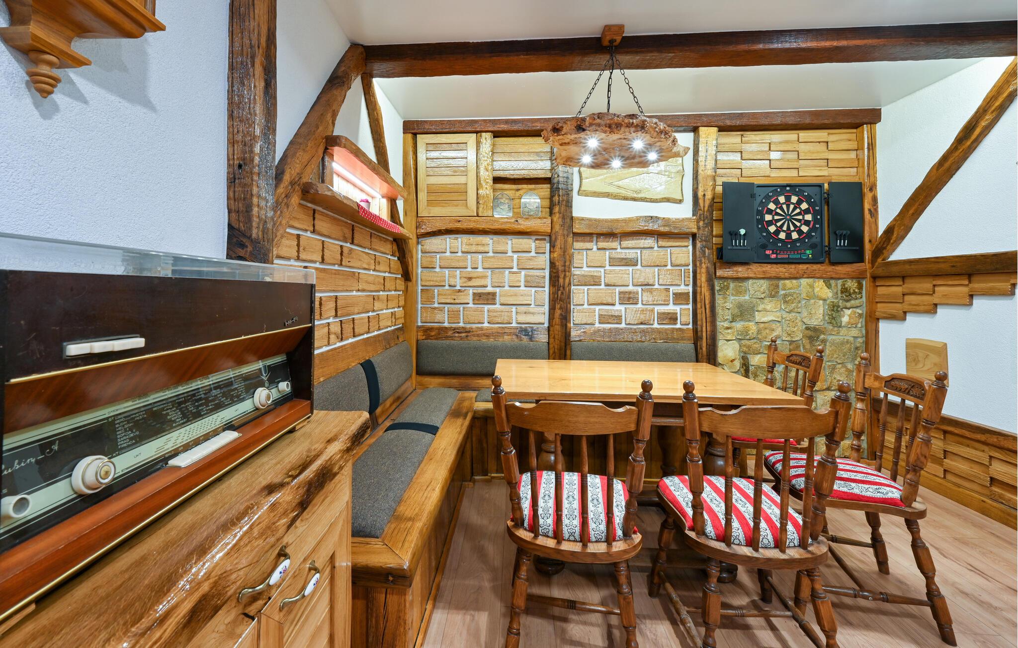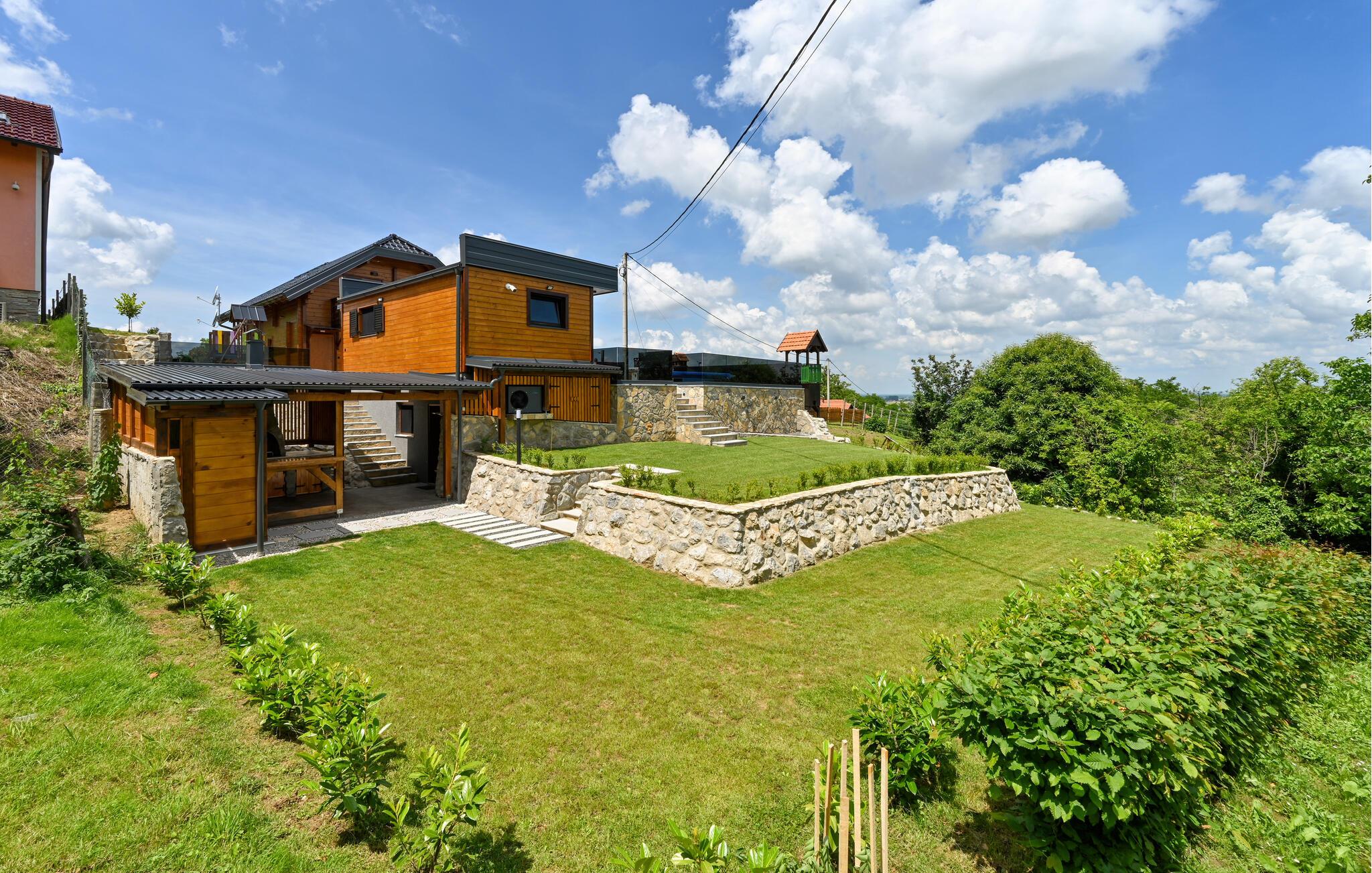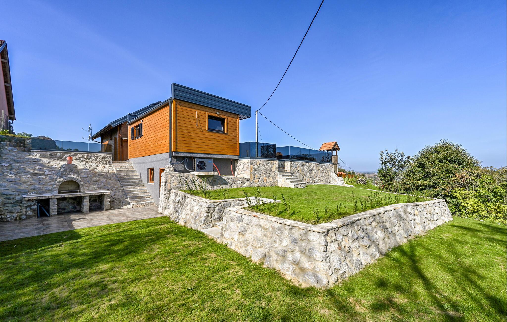 Hygge, komfort og masser af afslapning venter jer i dette feriehus nær Ludbreg, der også er kendt som verdens centrum. Her vil I få følelsen af at være hjemme, og det moderne køkken lægger op til fælles madlavning og måske endda afprøvning af et par nye opskrifter. Smæk fødderne op i sofaen eller træd ud af stuen ud på den overdækkede terrasse og slik sol på liggestolene lige uden for spabadet. Middagen kan I tilberede i sommerkøkkenet med ovn og udendørs grill, og i kælderen er der plads til socialt samvær og underholdning, hvor I kan trække jer tilbage om aftenen.