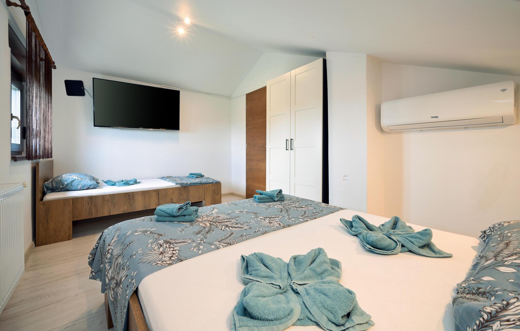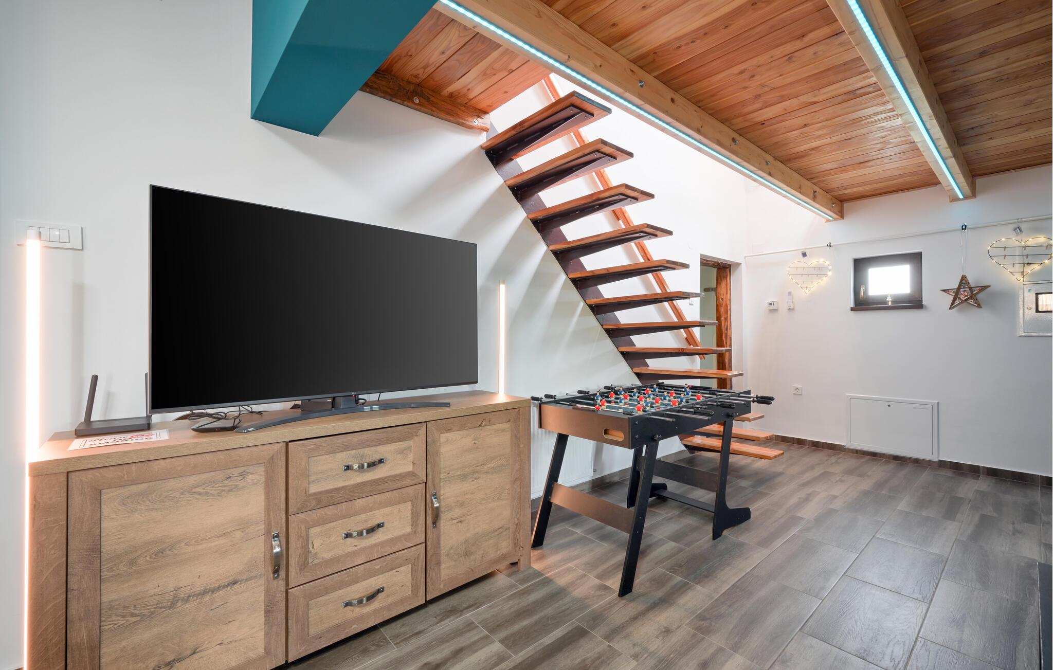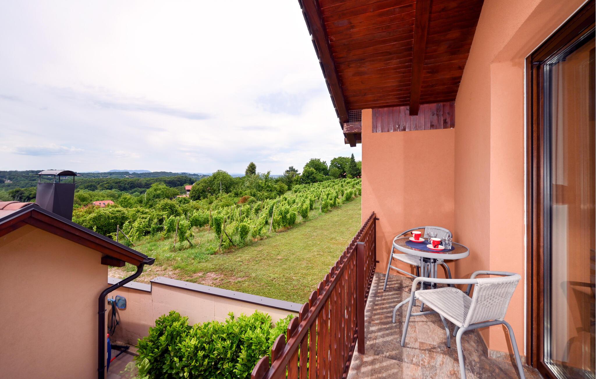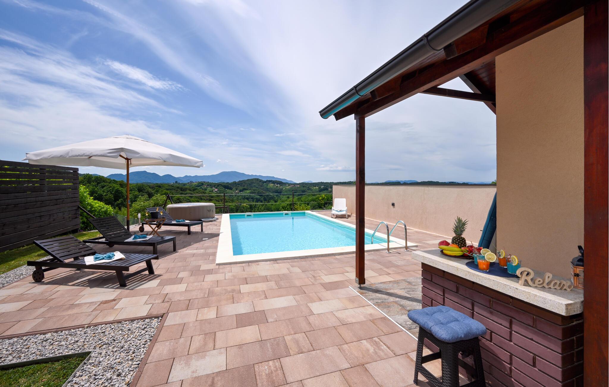 Huset ligger nord for hovedstaden Zagreb nær den slovenske grænse og er det perfekte sted til en dejlig familieferie. Start dagen med en morgendukkert i poolen efterfulgt af dagens første kop kaffe og lækker morgenmad på en af terrasserne. I løbet af dagen kommer I uden tvivl til at tilbringe mange skønne timer med at plaske rundt i poolen, sole jer ved den og nyde den enestående udsigt. Trænger I til et afbræk fra poolen, kan I spille fodbold, volleyball eller badminton på grunden, og til børnenes underholdning er der bl.a. gynge, sandkasse, klatrestativ og rutsjebane. Om aftenen kan I tilberede et lækkert feriemåltid på grillen efterfulgt af afslapning med Netflix inde i huset.