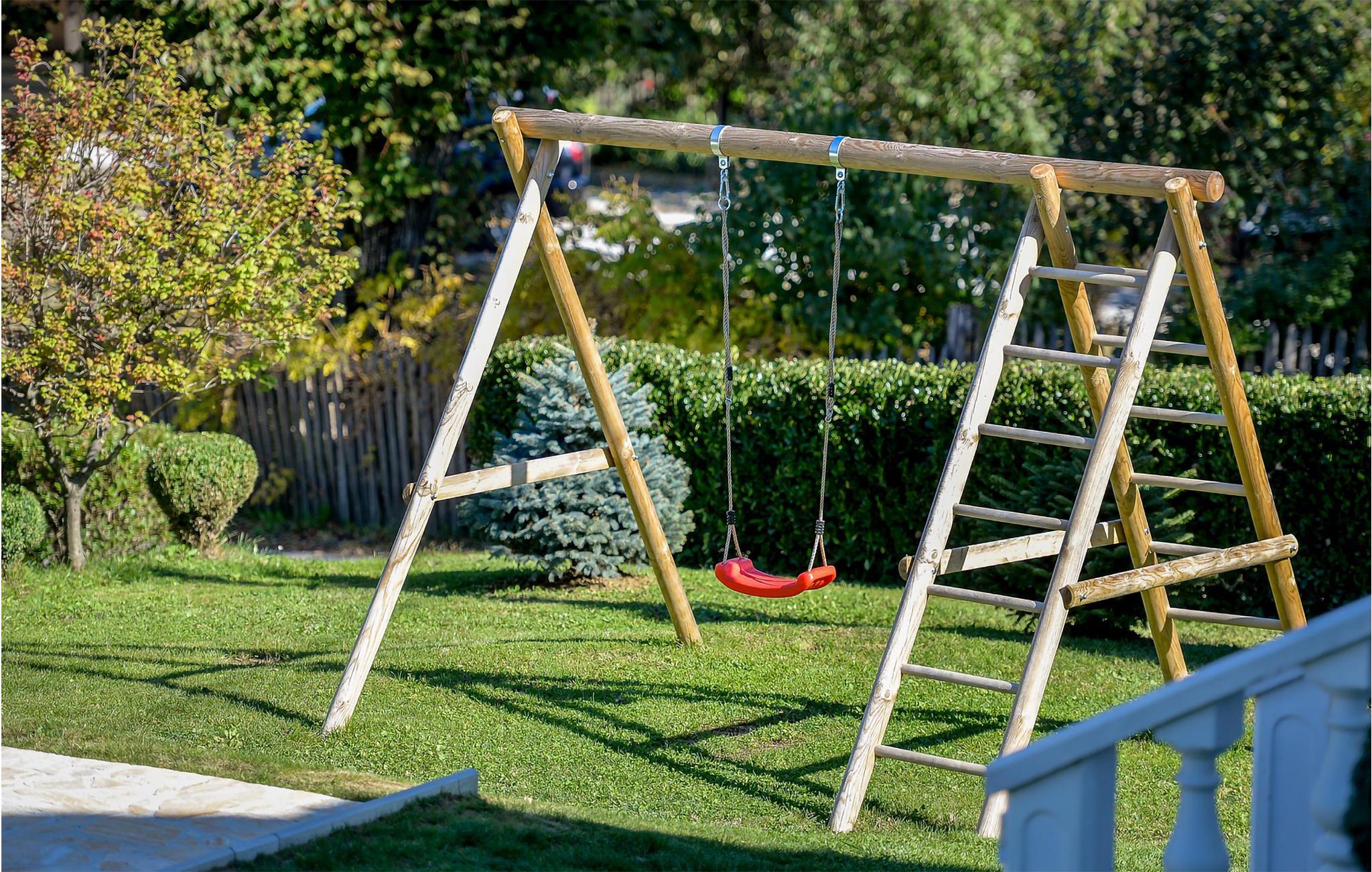 Udenfor er der et klatrestativ, en gynge og legetøj til børnene. Slap af i de komfortable havemøbler ved grillen og nyd jeres ferie til fulde.