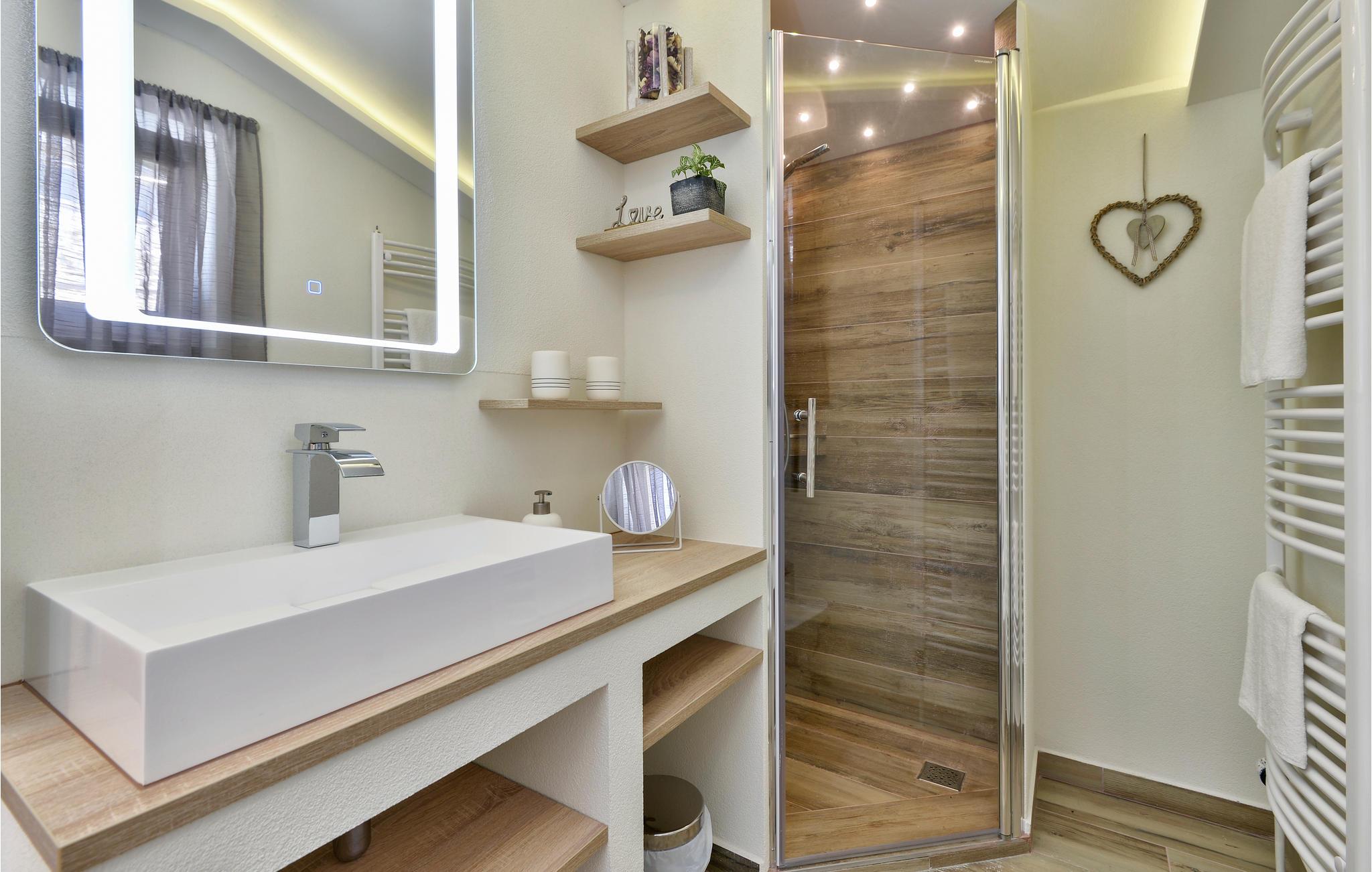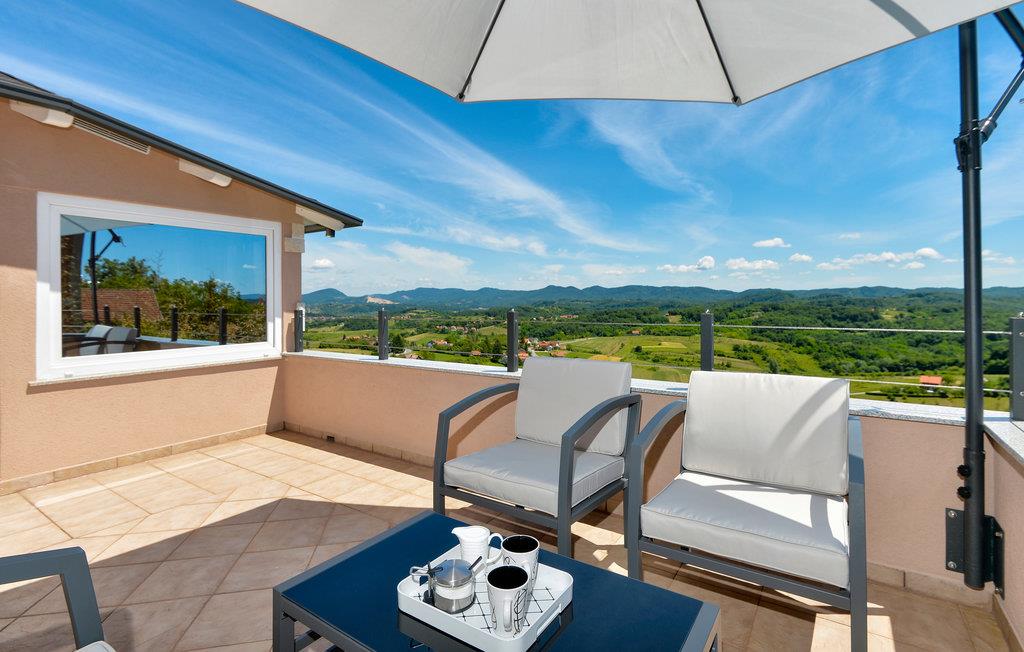 På en bakke og med en vidunderlig udsigt over de omkringliggende bjerge ligger dette smukke sommerhus med pool. På ejendommen kan du solbade, svømme i poolen eller tilberede lækre grillede retter i det udendørs køkken. Stueetagen består af et køkken med spiseplads, et soveværelse med badeværelse og sauna, mens der på første sal er en stue, to soveværelser og et badeværelse. Der er en gokartbane i nærheden af huset, der byder på sjov for både børn og voksne. Til elskere af vandre- og cykelture i naturen anbefaler vi besøget af Grebengrader-bjerget. En offentlig swimmingpool ligger også i nærheden af feriehuset. Anbefalet er en tur til den barokke by Varazdin, der også er kendt som en spa-by, og hvis barokke paladser, harmoniske pladser og romantiske gader er en sand oplevelse.