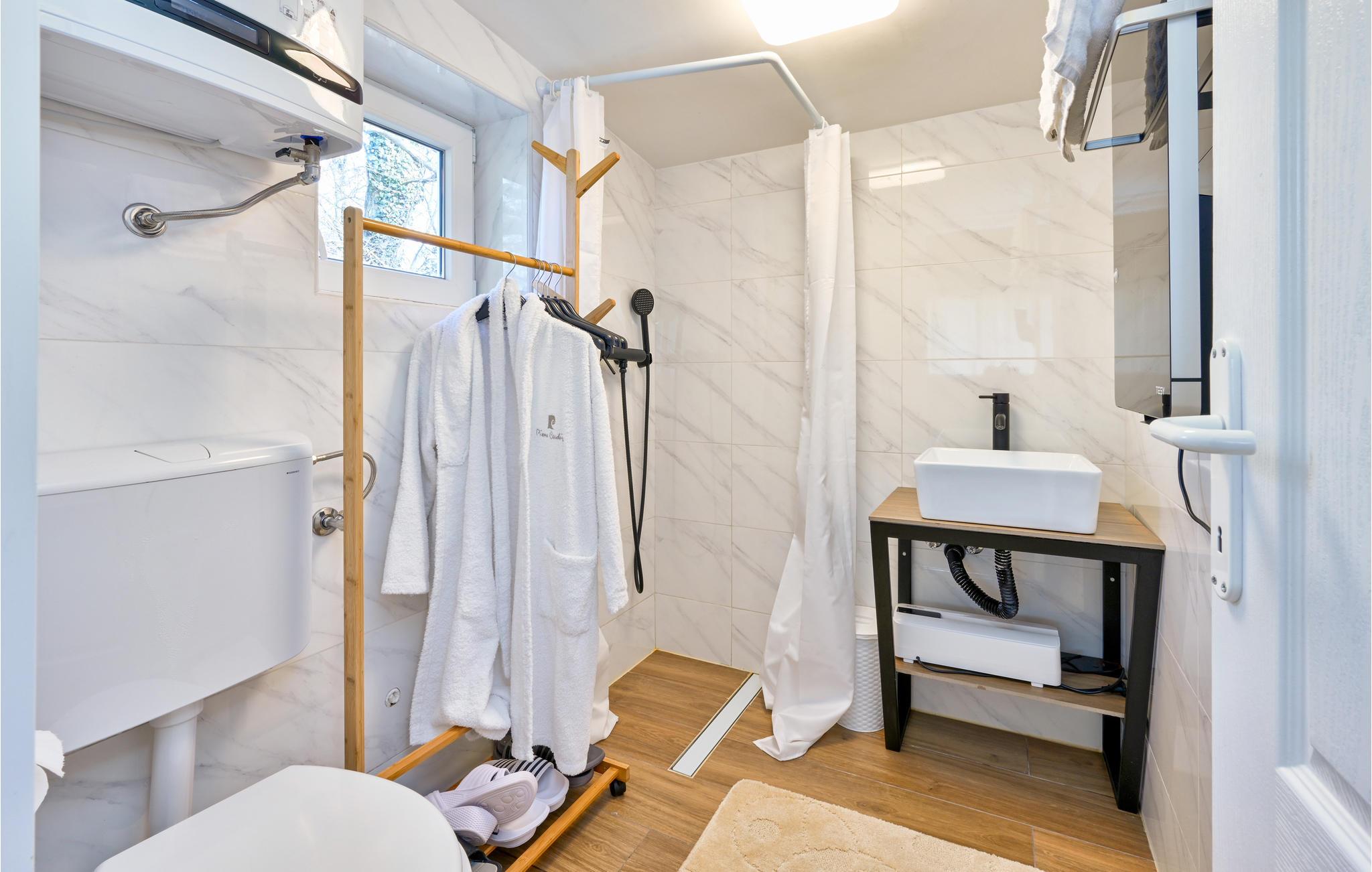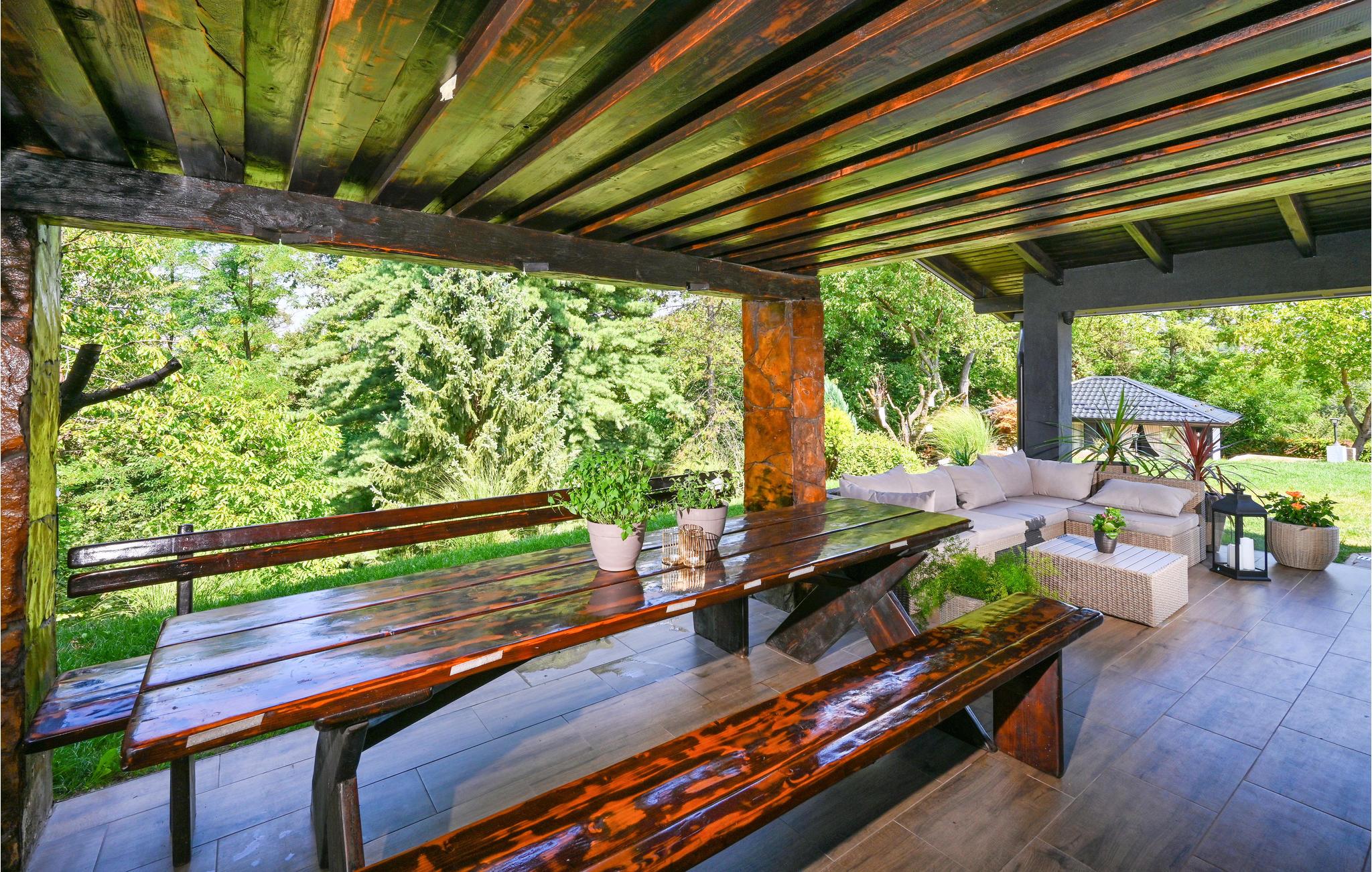 I kommer ikke til at mangle noget i dette skønne hus, så tag familien og hunden med og se frem til en fyrstelig behandling. Der er god plads både til familien eller en vennegruppe. Begynd dagen med en kop friskbrygget kaffe på terrassen og nyd udsigten til det grønne landskab og den kæmpestore grund. Bagefter kan I svømme et par runder i den private udendørspool eller tage en lille cykeltur til landets tidligere hovedstad Varazdin, den nærliggende skov eller en af ??de nærmeste søer. Bagefter kan I lade musklerne slappe af i spabadet eller saunaen. Børnene kan frit benytte de forskellige legeredskaber i udendørsområdet. Kælderen er indrettet som bar, så her kan I sætte jer med et glas regional vin om aftenen.