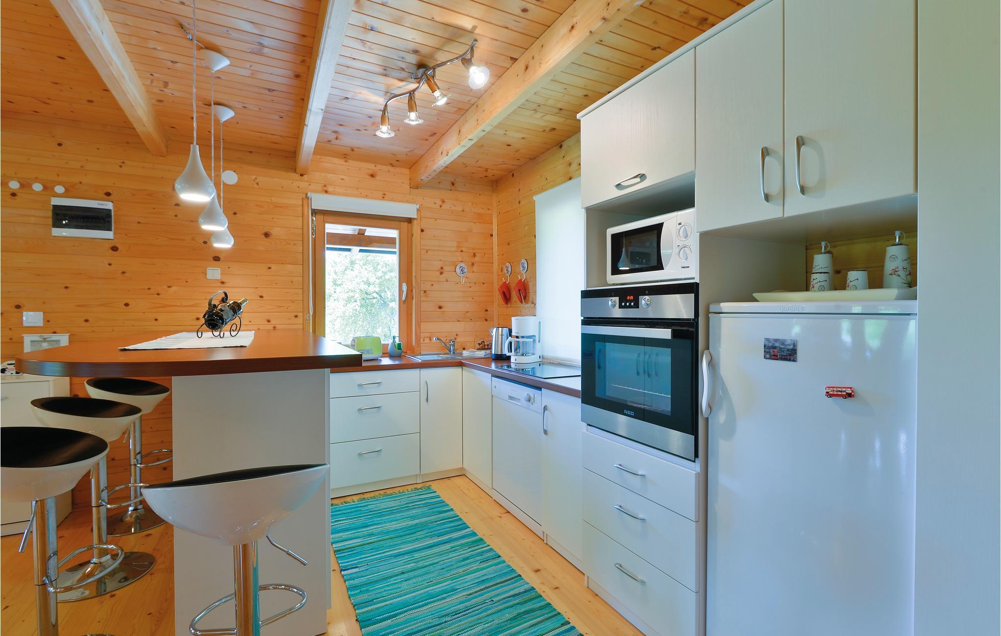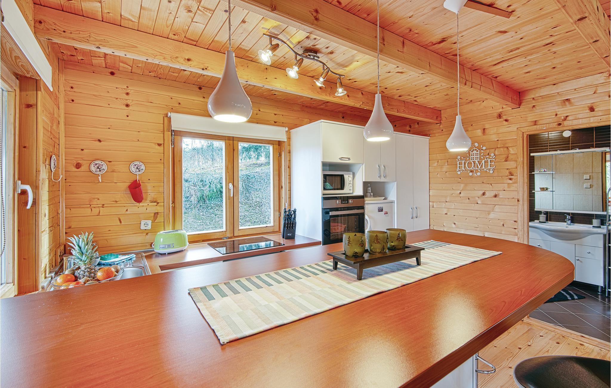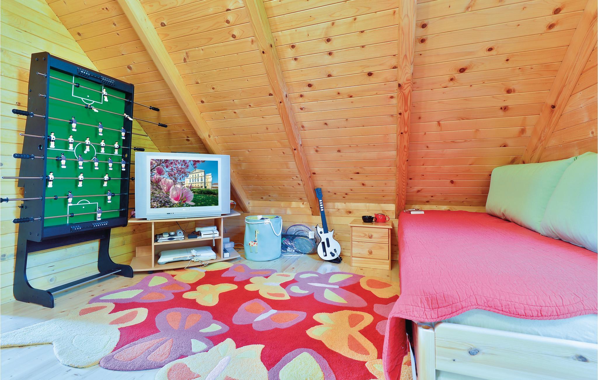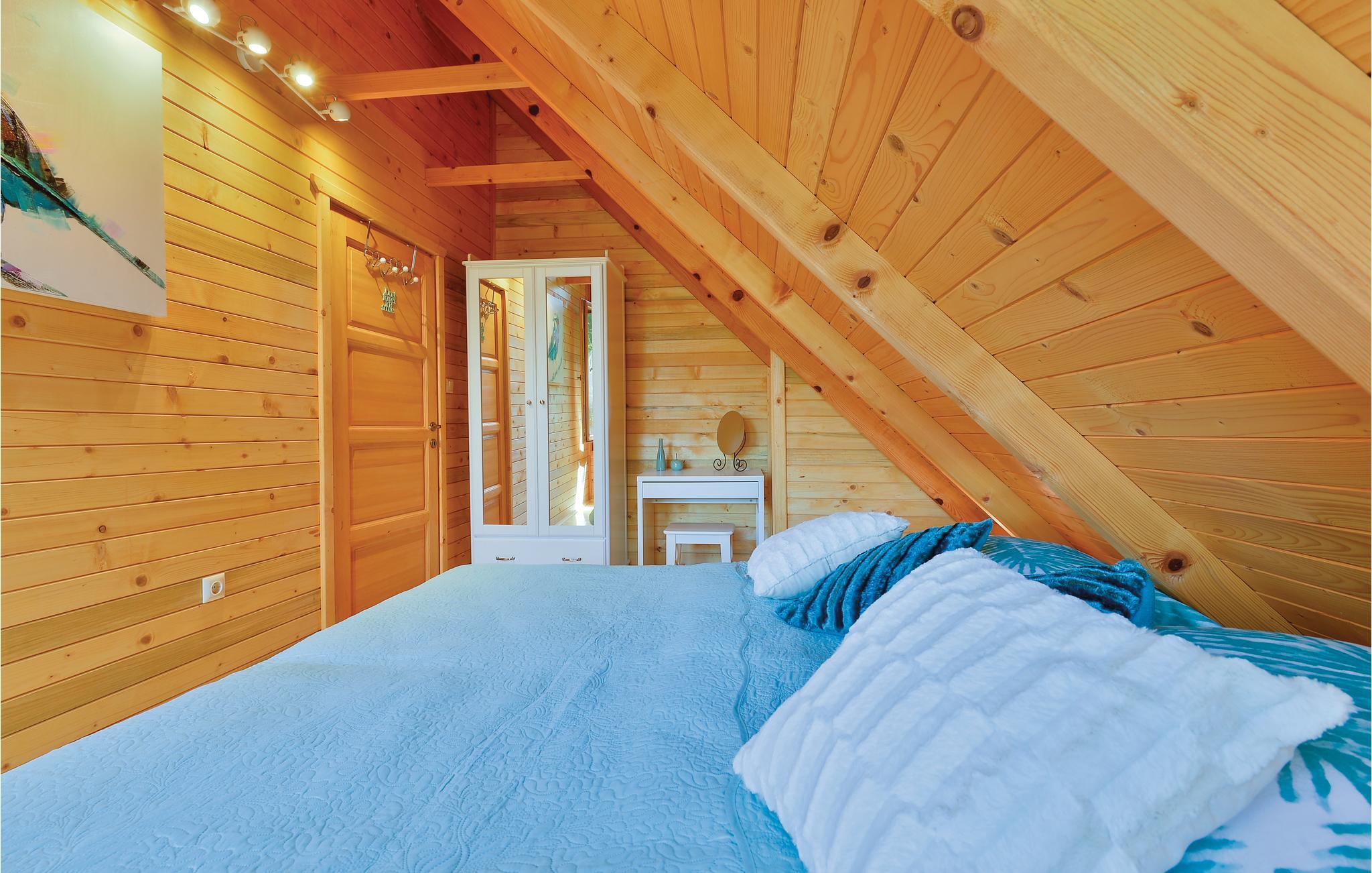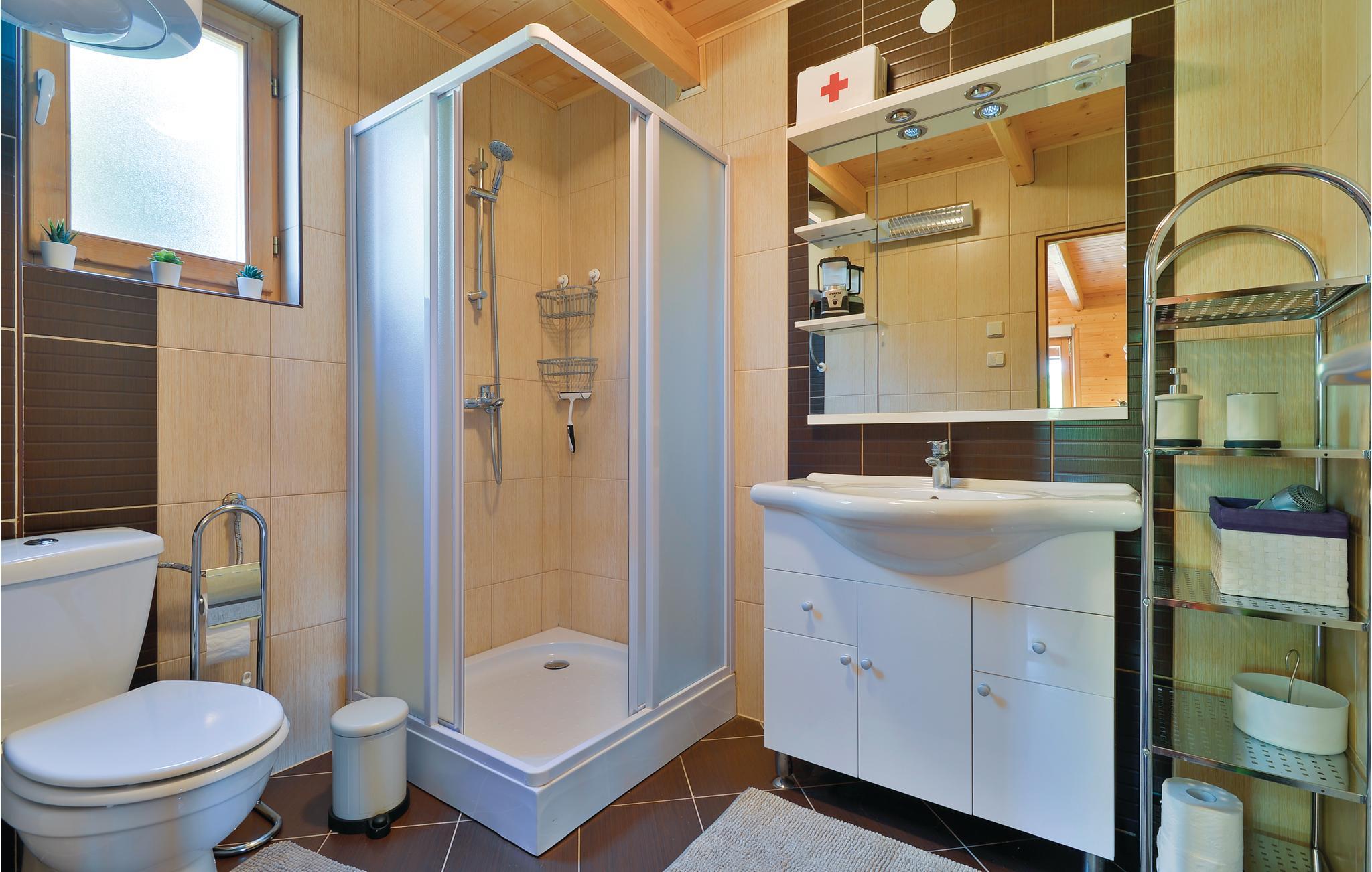 Lidt i afstand af Varazdinske Toplice ligger dette omhyggeligt indrettede hus bygget af træ. På den store grund ligger poolen, med et springvand og et uv-vandrensningsanlæg samt et stort legeomårde til børnene og en terrasse hvor I kan slappe af i den behagelige skygge. Husets indre er smukt og moderne indrettet og huset selv er udstyret med alle former for komfort, til en afslappet ferie. I stueplan er der et opholdsrum med udsigt over terrassen, køkken og spisestue og et badeværelse. På første sal med skrå vægge (60 cm i siden) er der to soveværelser, en hems og et badeværelse. Der er kun en km til Varazdinske toplice, et kurbad med mineralske kilder, wellness, sportsanlæg og mulighed for at gå afslappede ture i naturen. I løbet af ferien er der også oplagt at besøge byen Varazdin, hvis monumentale og kunstneriske fortid afspejles af barokarkitektur og de harmoniske pladser og de romantiske smalle stræder. Glem ikke at besøge englemuseet.