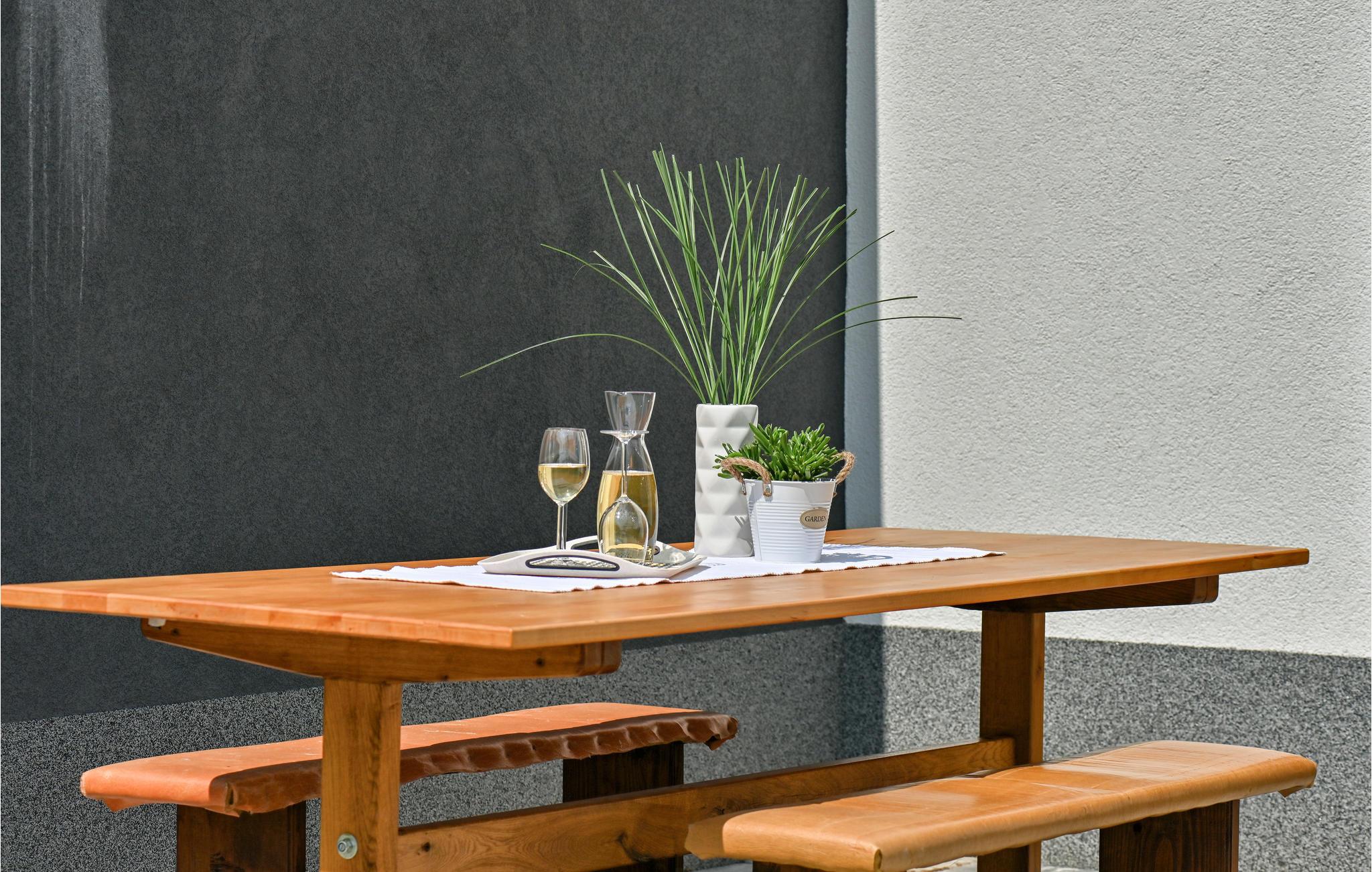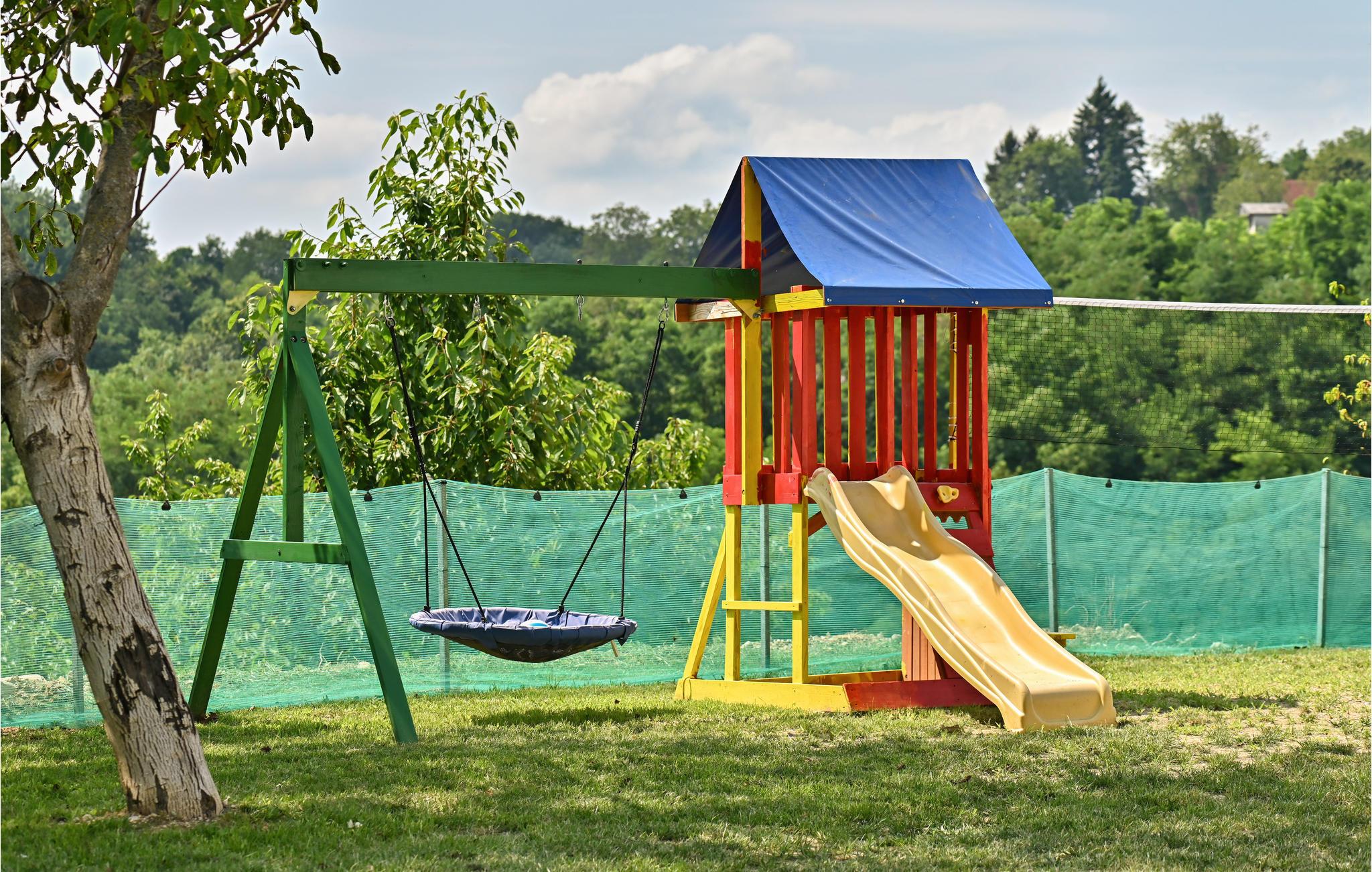 Husets attraktive udendørsareal indbyder til at tilbringe meget tid i det fri. Hvis I kan lide at være aktive, kan I udfordre de andre familiemedlemmer til badminton eller volleyball, hvis I foretrækker at tage det roligt, kan I sætte jer til rette med en bog i en liggestol og nyde en lejlighedsvis dukkert i poolen, mens jeres børn leger og gynger.