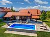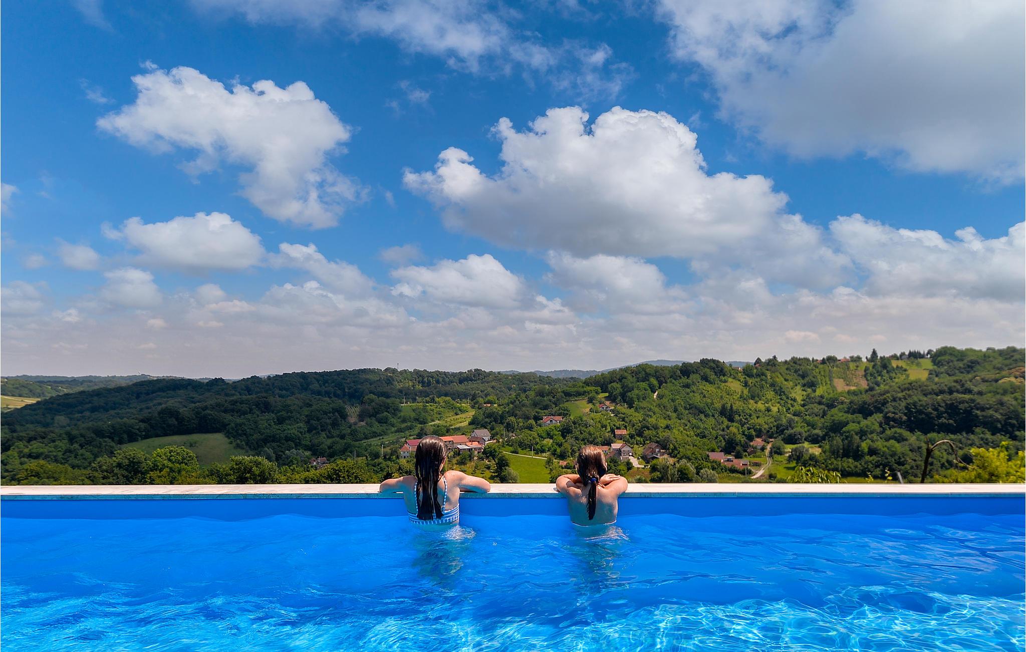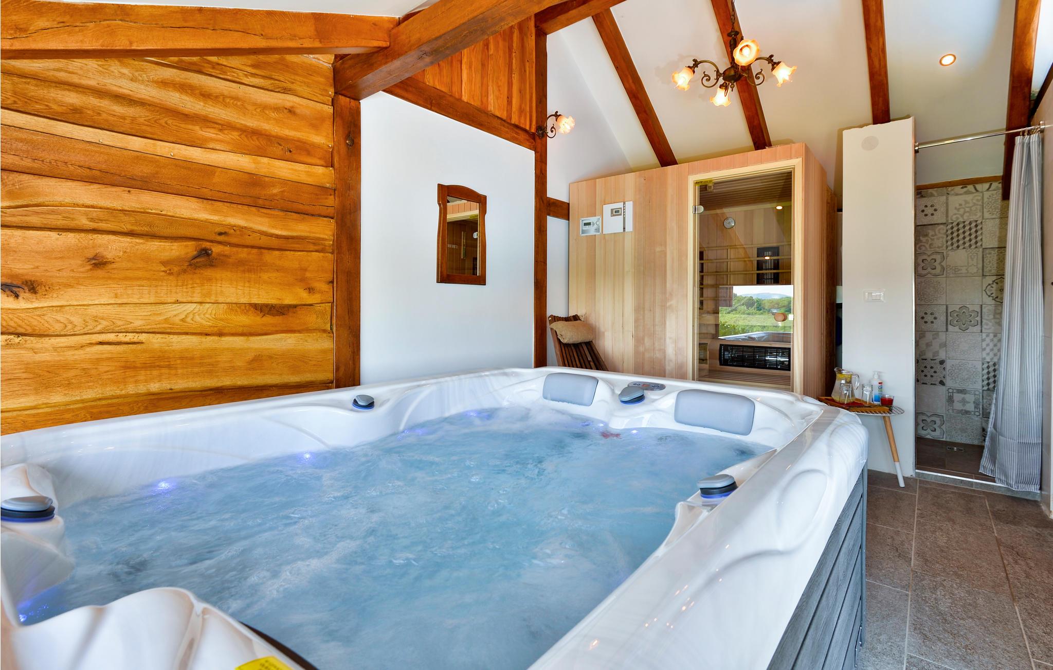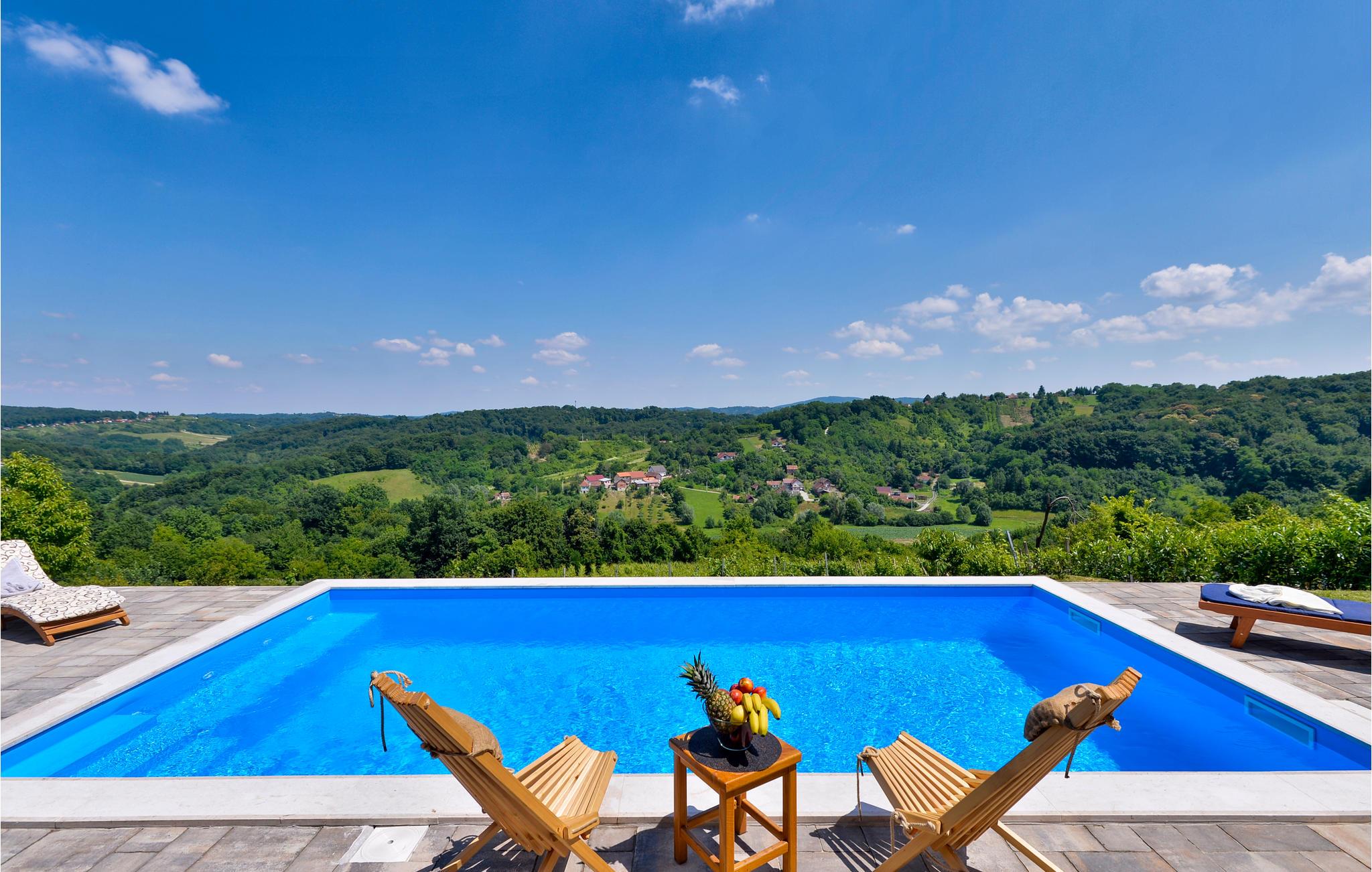 I nærheden af spaet i Varaždin ligger dette vidunderlige træhus. Det ligger på en bakke omgivet af vinmarker og tilbyder smuk udsigt over landskabet. Ren luft, fredelige omgivelser og et sommerhus lavet af naturlige materialer sikrer en afslappende ferie. I stueetagen består huset af et køkken med stue, badeværelse og et soveværelse med eget badeværelse, mens der ovenpå er et andet soveværelse og et ekstra værelse med to ekstra enkeltsenge. Foran huset er der en overdækket terrasse med grillplads og en glasindrammet del, hvor der er et boblebad med vidunderlig udsigt over dalen. Der er også en swimmingpool i haven, hvor du kan opfriske dig på varme sommerdage. I kælderen er der en sauna til fire personer og et afslapningsområde med bruser. Da feriehuset ligger i et vindyrkningsområde, er det muligt at prøve lokale vine med værterne og arrangere catering mod et tillægsgebyr. Det er også værd at besøge den smukke by Varaždin, hvis kunstneriske arv med sin bevarede og frodige barokke arkitektur såvel som dens harmoniske pladser og romantiske gader kan skabe begejstring. Gå ikke glip af at besøge Museum of Angels og insektens verdenssamling. I nærheden finder du de termiske bade i Varaždin, hvor du kan nyde fordelene ved termisk vand og wellness.
