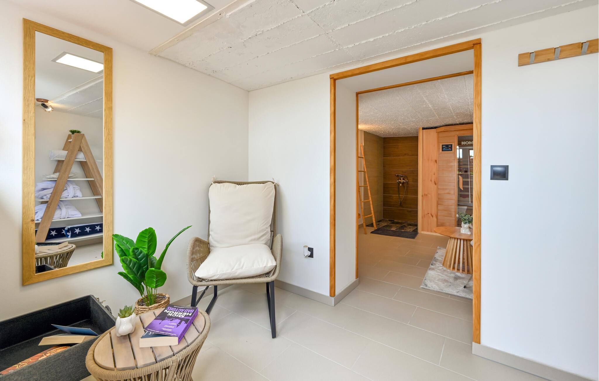 Velkommen til dette indbydende hus, hvor der venter jer en lys, hjemlig og moderne indretning. Boligen er det helt ideelle sted at slappe af i attraktive omgivelser og nyde en afslappende ferie. Når I vender hjem fra en begivenhedsrig dag, kan I smække fødderne op i sofaen og spille et spil eller se en god film.