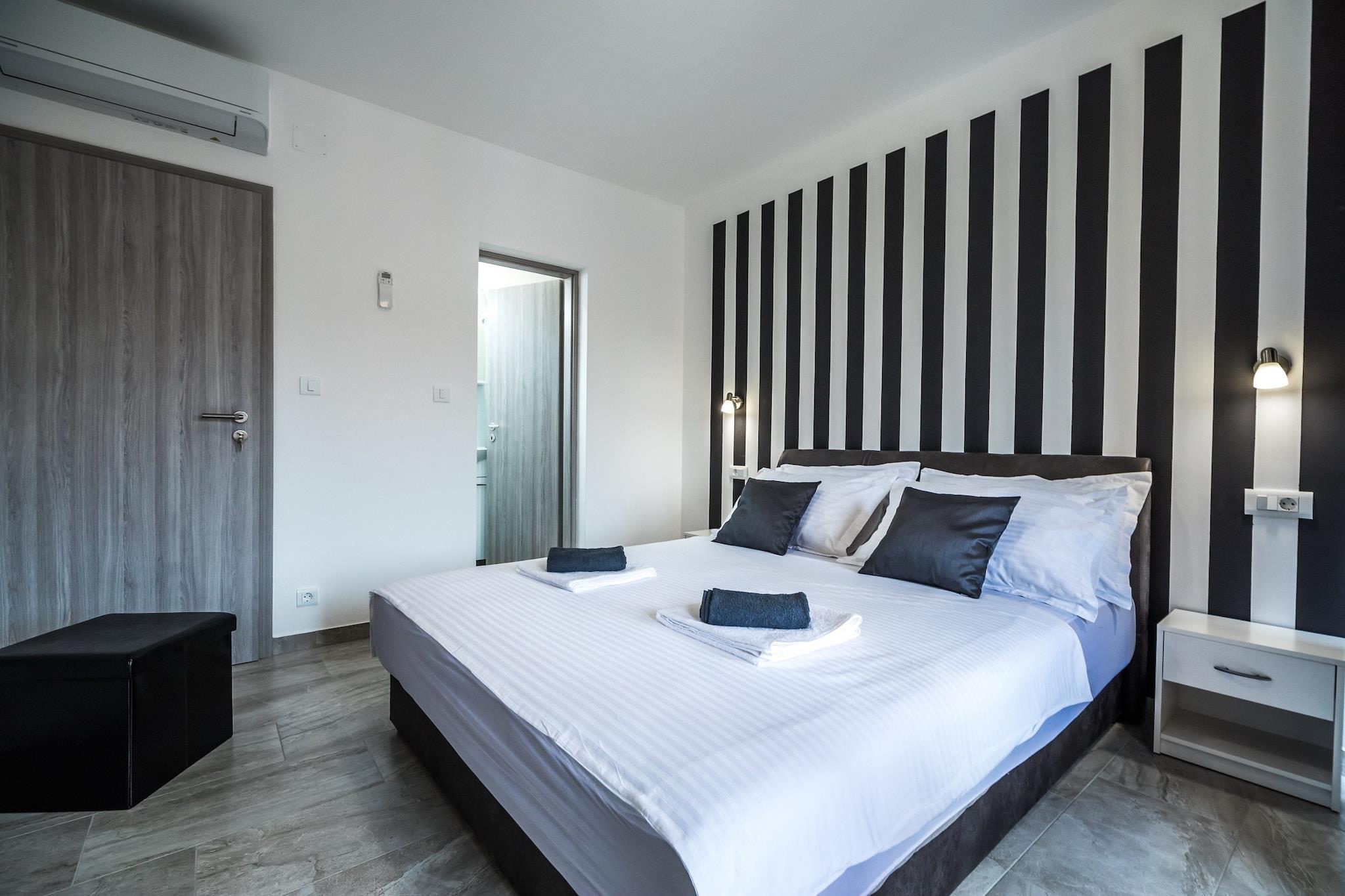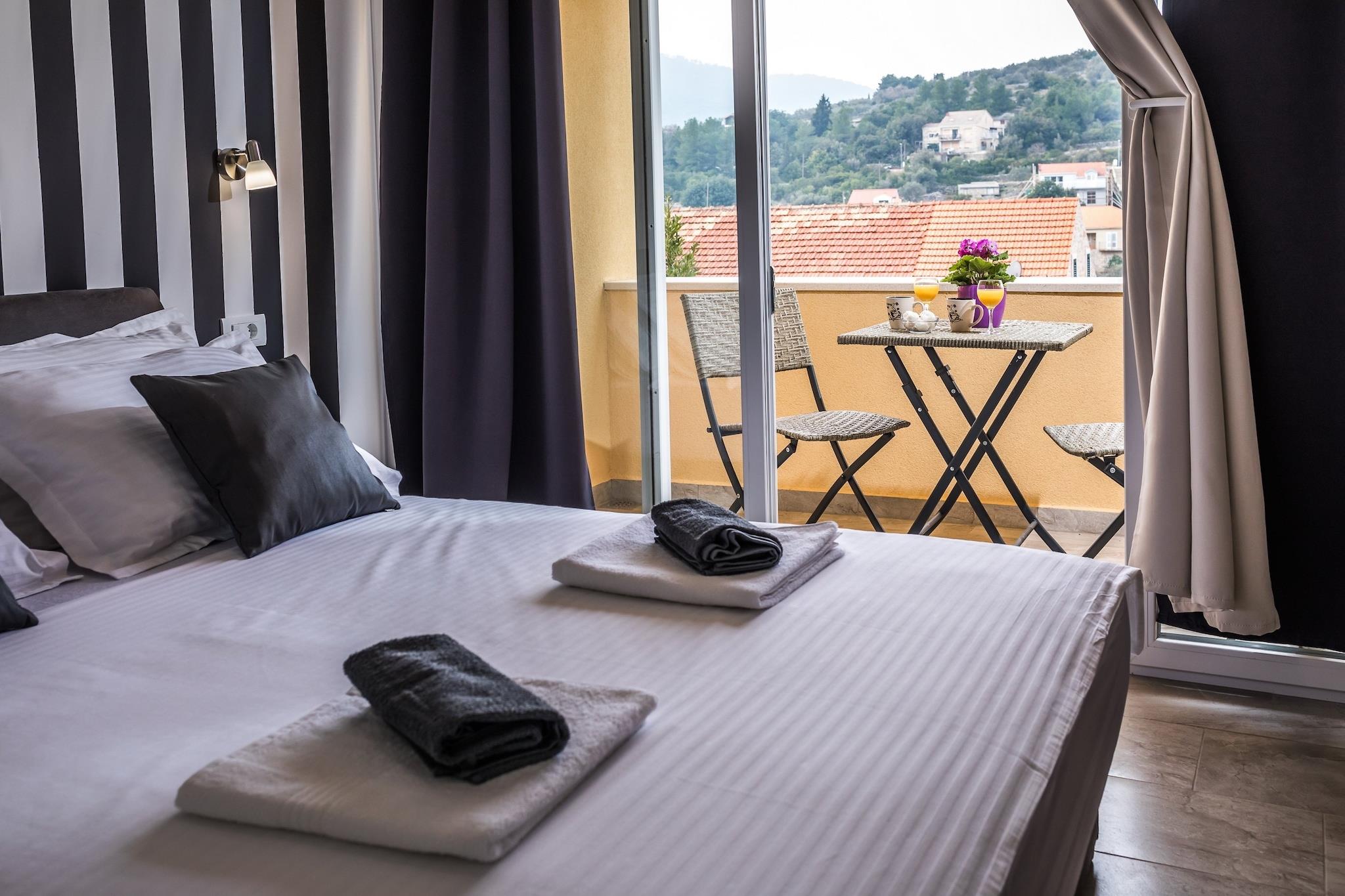 Apartments Sunshine Home tilbyder seks ferieboliger med egen forplejning i Vela Luka, en fredelig lille by på den vestlige side af øen Korcula. Fælles grillfaciliteter er til gæsternes rådighed. Bagageopbevaring er tilgængelig før indtjekning. Gratis privat parkering er tilgængelig på stedet .Dette dejlige dobbeltværelse passer perfekt til op til to personer. Det har gratis WiFi, aircondition og fladskærms-satellit-tv. Der er eget badeværelse med bruser og hårtørrer. Møbleret balkon med havudsigt er til gæsternes rådighed. Gæsterne har adgang til fuldt udstyret fælles køkken med spiseplads. Alt hvad du behøver til ferien er inden for gåafstand. Den nærmeste strand ligger 500 m fra ejendommen. Forskellige restauranter, barer og købmand kan findes inden for 500 m. Færgehavnen i Vela Luka ligger 1,3 km fra ejendommen.