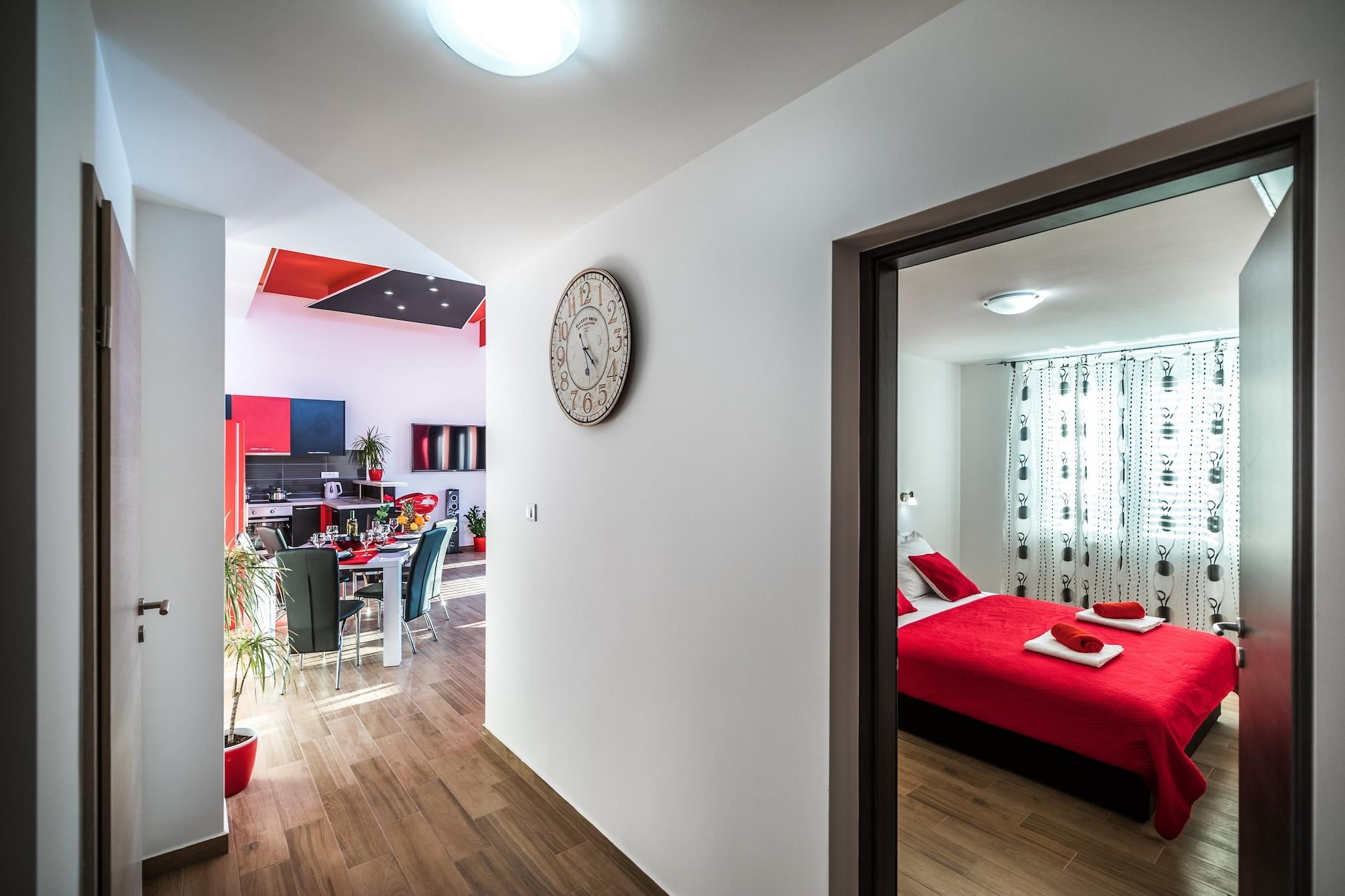 Apartments Sunshine Home tilbyder seks ferieboliger med egen forplejning i Vela Luka, en fredelig lille by på den vestlige side af øen Korcula. Fælles grillfaciliteter er til gæsternes rådighed. Bagageopbevaring er tilgængelig før indtjekning. Gratis privat parkering er tilgængelig på stedet .Denne dejlige toværelses lejlighed kan komfortabelt rumme op til fem personer.Den har gratis Wi-Fi, aircondition og fladskærms-satellit-tv. Køkkenet er fuldt udstyret og leveres med spiseplads. Stuen leveres med sovesofa. Der er eget badeværelse med bruser og hårtørrer. Lejligheden har også møbleret balkon med udsigt over havet. Alt hvad du behøver til ferien er inden for gåafstand. Den nærmeste strand ligger 500 m fra ejendommen. Forskellige restauranter, barer og købmand kan findes inden for 500 m. Færgehavnen i Vela Luka ligger 1,3 km fra ejendommen.