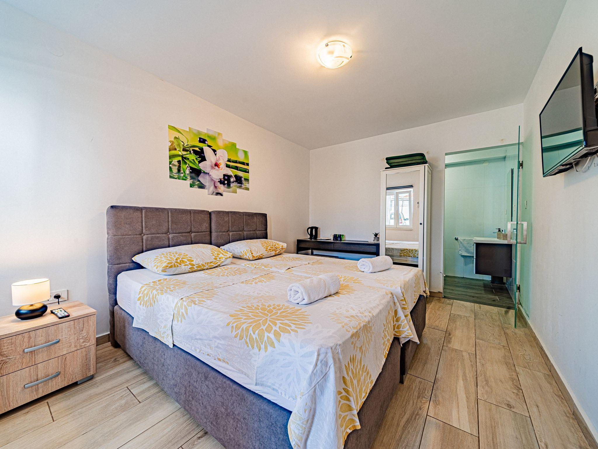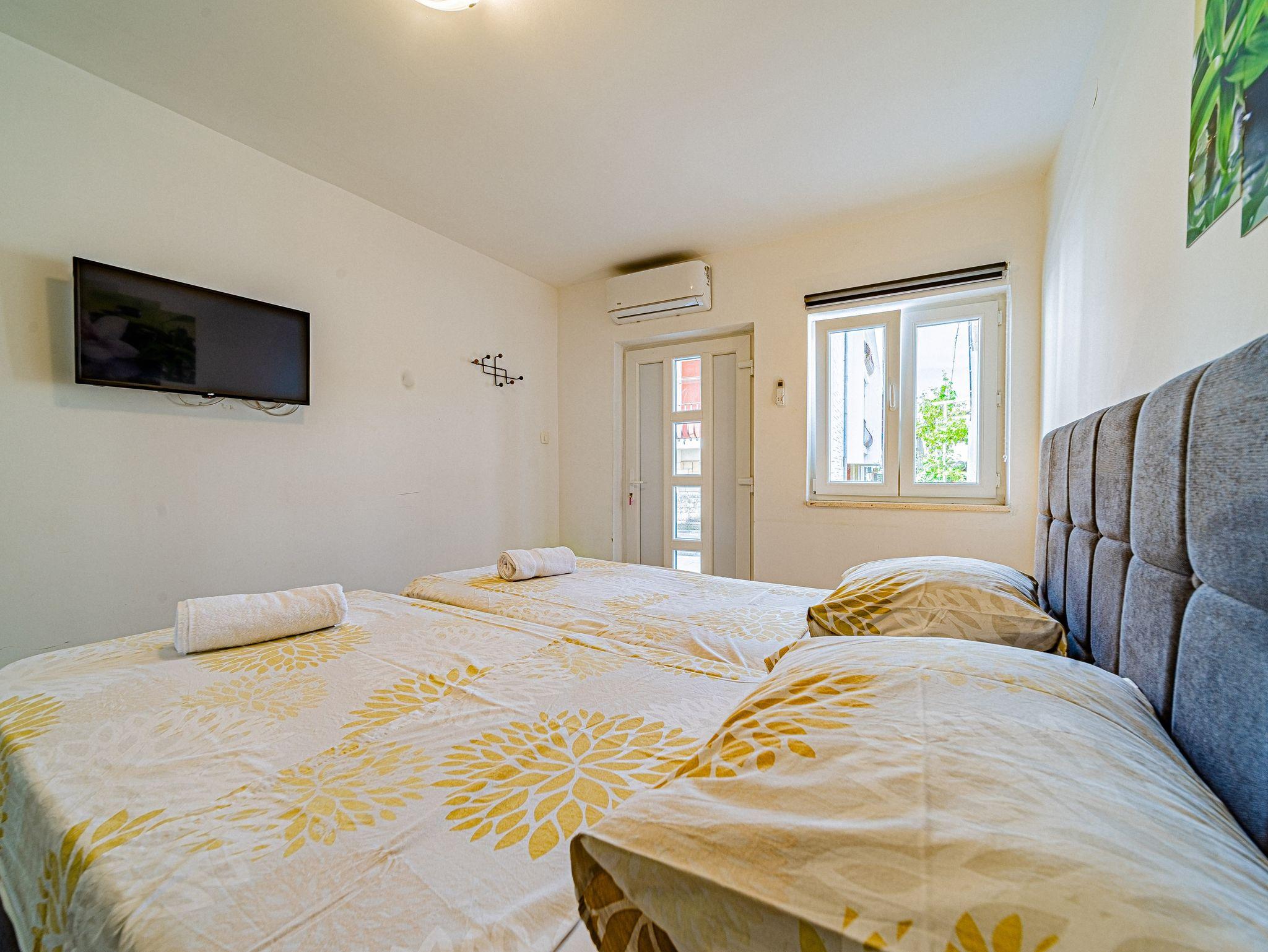 Zimmer bietet Platz für 2 Gäste. Die Betten sind in Schlafzimmern, die es 1 gibt, innerhalb einer Gesamtfläche von 17m2, angeordnet. Die Gäste haben eine eigene Terrasse zur Verfügung, auf der sie in warmen Sommernächten genießen können. Durch die Terrasse der gebuchten Unterkunftseinheit gehen auch andere Gäste oder Vermieter. Die reservierte Unterkunftseinheit ist ein Zimmer mit eigenem Badezimmer ohne die Möglichkeit der Nutzung einer Küche. IM PREIS INBEGRIFFEN: Kurtaxe, Endreinigung, Klimatisierung, Parkplatz, Internet, Föhn. Die Verfügbarkeit zusätzlicher Dienstleistungen in Ihrem reservierten Termin und die Preise derselben (falls nicht aufgeführt) müssen im Voraus überprüft werden. Zusätzliche Dienstleistungen die in der Zahlungsaufforderung nicht aufgeführt sind werden direkt beim Vermieter bezahlt, angenommen der Gast nutzt auch diese.