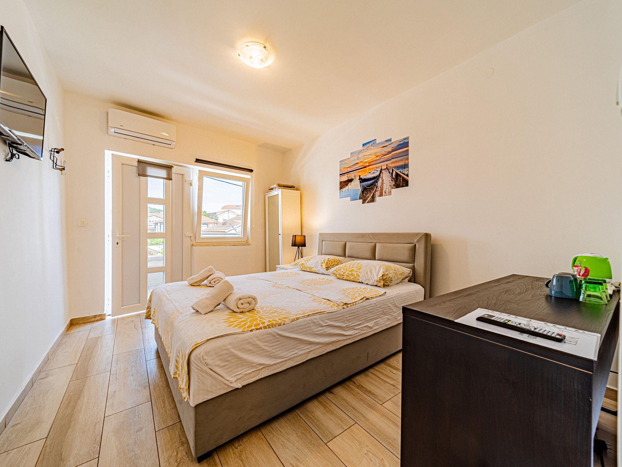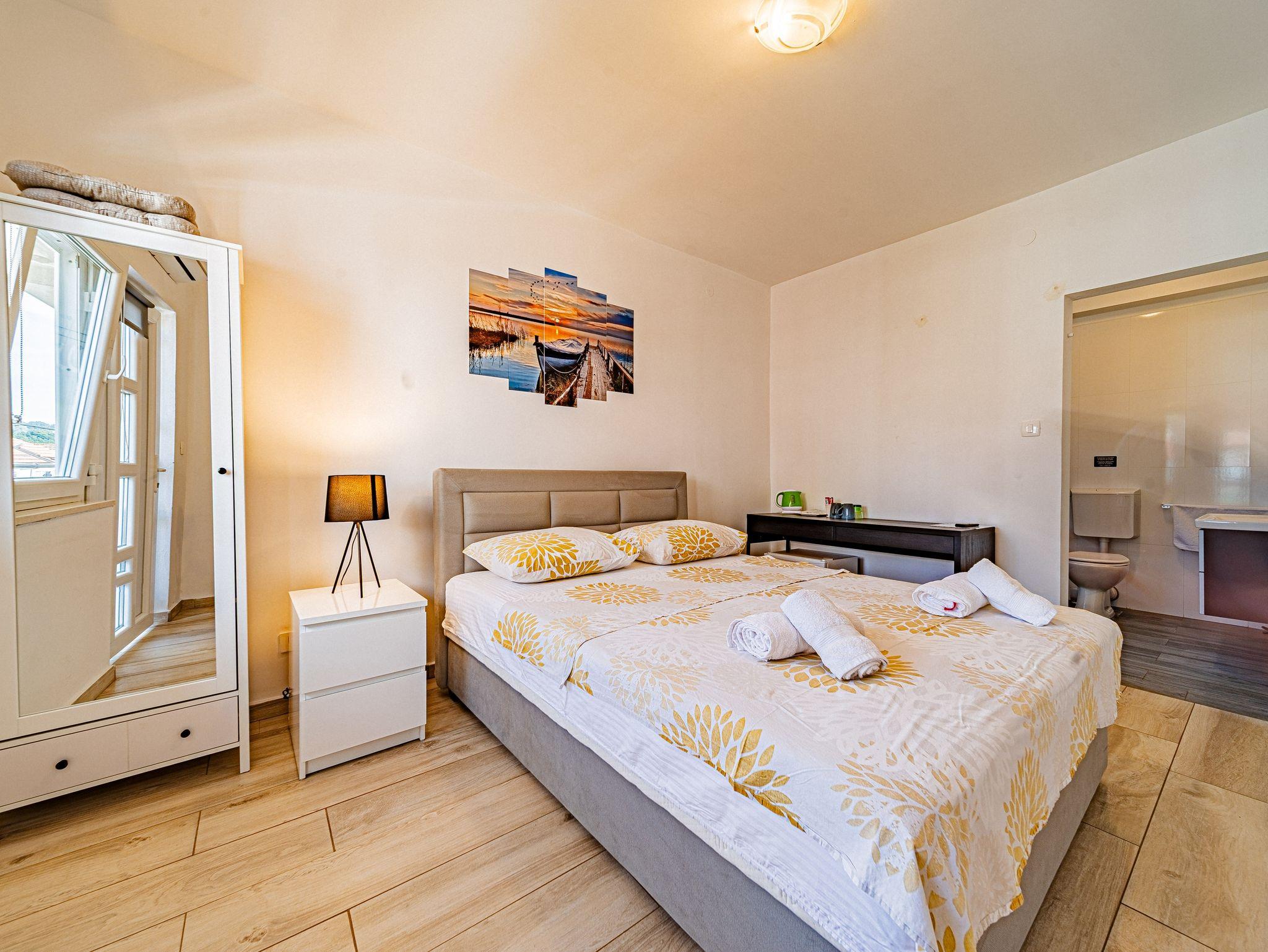 Zimmer bietet Platz für 2 Gäste. Die Betten sind in Schlafzimmern, die es 1 gibt, innerhalb einer Gesamtfläche von 18m2, angeordnet. Die Gäste haben einen eigenen Balkon zur Verfügung, auf der sie in warmen Sommernächten genießen können. Die reservierte Unterkunftseinheit ist ein Zimmer mit eigenem Badezimmer ohne die Möglichkeit der Nutzung einer Küche. IM PREIS INBEGRIFFEN: Kurtaxe, Endreinigung, Klimatisierung, Parkplatz, Internet, Föhn. Die Verfügbarkeit zusätzlicher Dienstleistungen in Ihrem reservierten Termin und die Preise derselben (falls nicht aufgeführt) müssen im Voraus überprüft werden. Zusätzliche Dienstleistungen die in der Zahlungsaufforderung nicht aufgeführt sind werden direkt beim Vermieter bezahlt, angenommen der Gast nutzt auch diese.