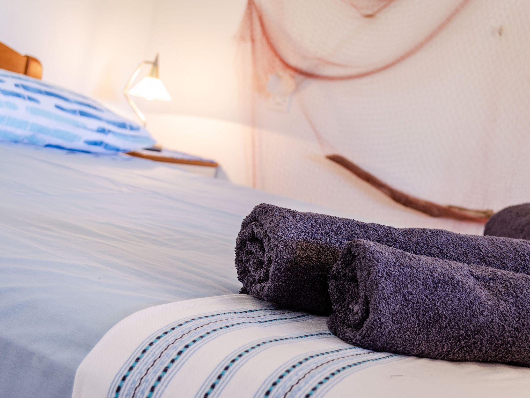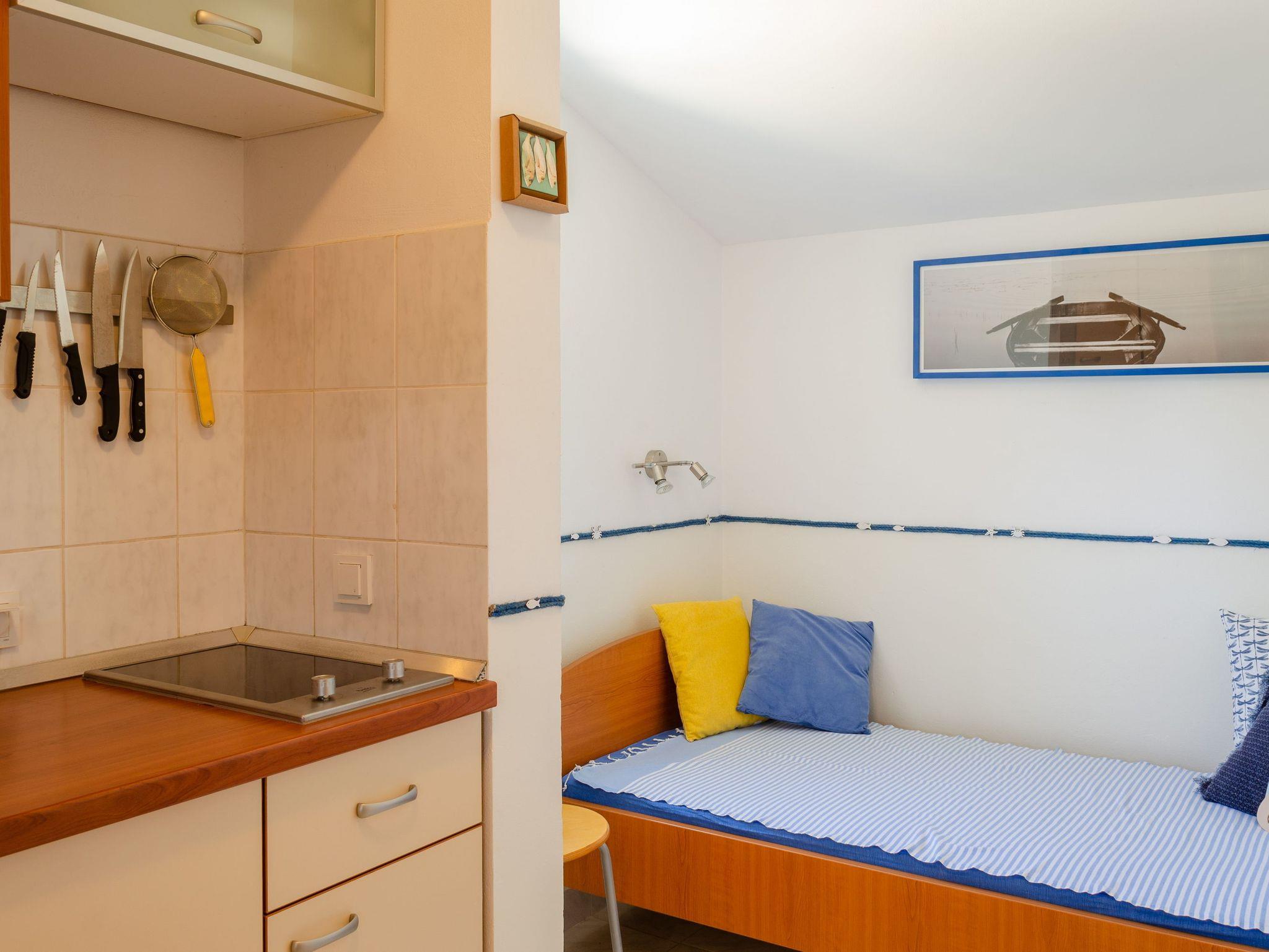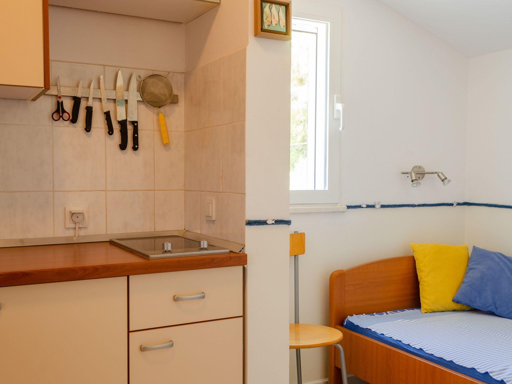 Studio bietet Platz für 2 Gäste. Die Betten sind in Schlafzimmern, die es 1 gibt, innerhalb einer Gesamtfläche von 25m2, angeordnet. Die Gäste haben eine eigene Terrasse zur Verfügung, auf der sie in warmen Sommernächten genießen können. Das Studio-Apartment bietet Meerblick. Es ist erlaubt, Speisen auf dem Gemeinschafts-Grill vorzubereiten. In der Unterkunftseinheit besteht die Möglichkeit des Mitbringens von Haustieren gegen Aufpreis. IM PREIS INBEGRIFFEN: Kurtaxe, Endreinigung, Klimatisierung, Parkplatz, Internet, Föhn. UNVERBINDLICHE ZUSÄTZLICHE KOSTEN: Bootsanlegeplatz (10,00 € pro Nacht), Haustiere (5,00 € pro Nacht). Die Verfügbarkeit zusätzlicher Dienstleistungen in Ihrem reservierten Termin und die Preise derselben (falls nicht aufgeführt) müssen im Voraus überprüft werden. Zusätzliche Dienstleistungen die in der Zahlungsaufforderung nicht aufgeführt sind werden direkt beim Vermieter bezahlt, angenommen der Gast nutzt auch diese. Ermäßigung auf den Grundpreis: Gratistag 14=13 (bei einem Aufenthalt von 14 Tagen oder mehr erhalten Sie einen Gratistag für den Aufenthalt bis 31.12.26).