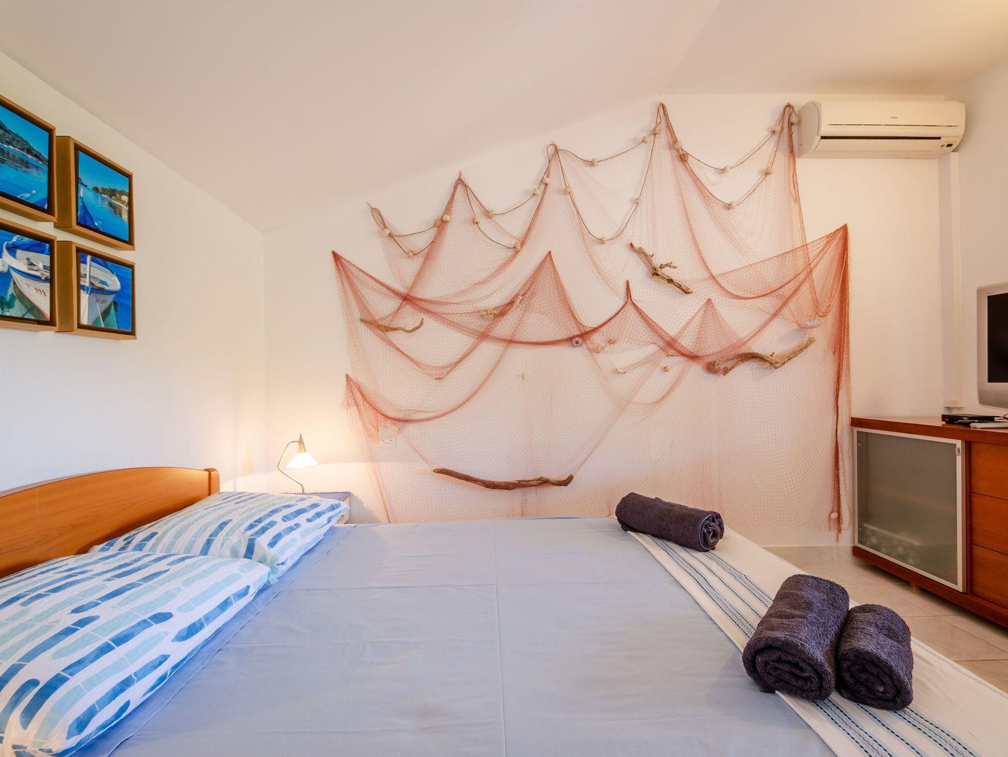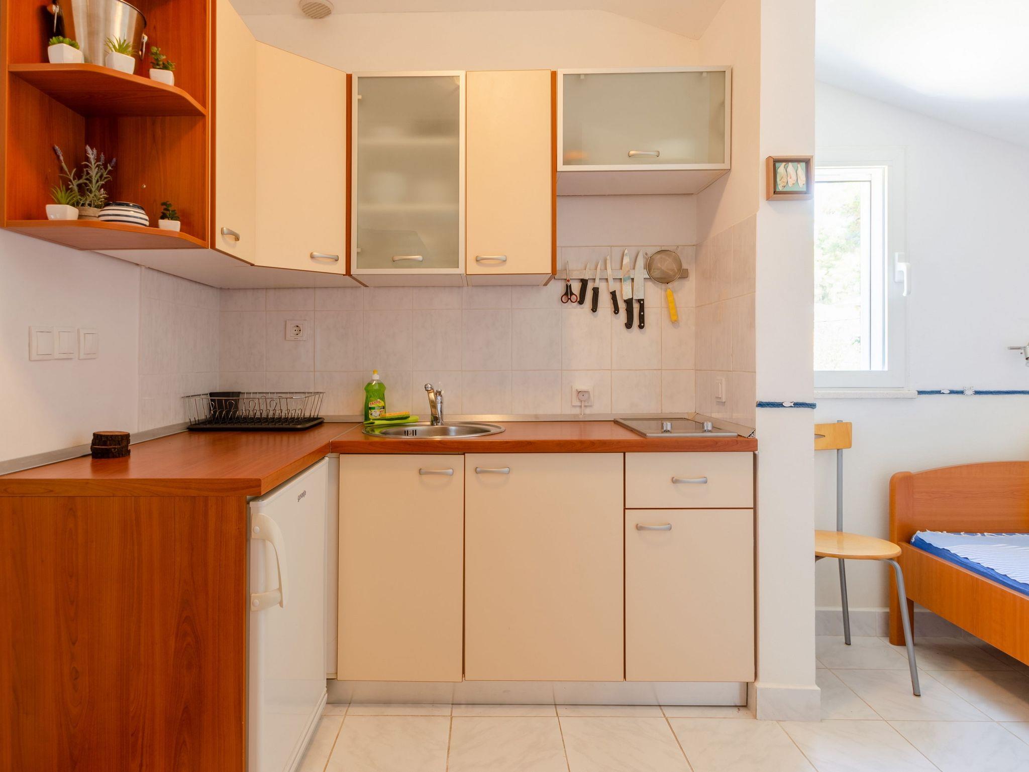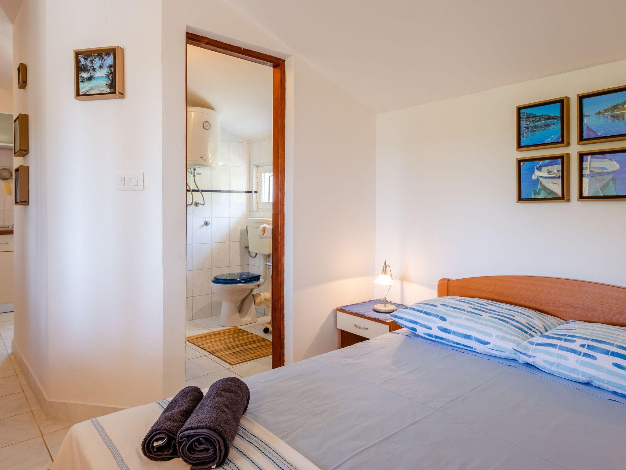 Studio bietet Platz für 2 Gäste. Die Betten sind in Schlafzimmern, die es 1 gibt, innerhalb einer Gesamtfläche von 25m2, angeordnet. Die Gäste haben eine eigene Terrasse zur Verfügung, auf der sie in warmen Sommernächten genießen können. Das Studio-Apartment bietet Meerblick. Es ist erlaubt, Speisen auf dem Gemeinschafts-Grill vorzubereiten. In der Unterkunftseinheit besteht die Möglichkeit des Mitbringens von Haustieren gegen Aufpreis. IM PREIS INBEGRIFFEN: Kurtaxe, Endreinigung, Klimatisierung, Parkplatz, Internet, Föhn. UNVERBINDLICHE ZUSÄTZLICHE KOSTEN: Bootsanlegeplatz (10,00 € pro Nacht), Haustiere (5,00 € pro Nacht). Die Verfügbarkeit zusätzlicher Dienstleistungen in Ihrem reservierten Termin und die Preise derselben (falls nicht aufgeführt) müssen im Voraus überprüft werden. Zusätzliche Dienstleistungen die in der Zahlungsaufforderung nicht aufgeführt sind werden direkt beim Vermieter bezahlt, angenommen der Gast nutzt auch diese. Ermäßigung auf den Grundpreis: Gratistag 14=13 (bei einem Aufenthalt von 14 Tagen oder mehr erhalten Sie einen Gratistag für den Aufenthalt bis 31.12.26).