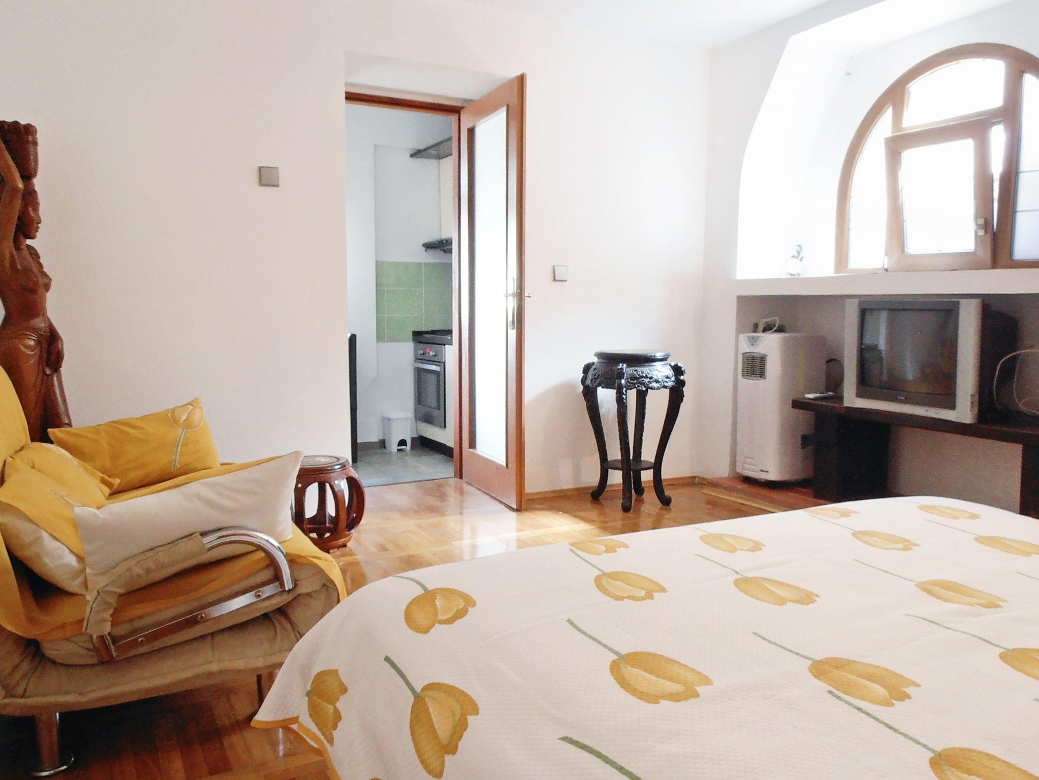 Ferienwohnung bietet Platz für 2 Gäste. Die Betten sind in Schlafzimmern, die es 1 gibt, innerhalb einer Gesamtfläche von 27m2, angeordnet. Die Gäste haben eine eigene Terrasse zur Verfügung, auf der sie in warmen Sommernächten genießen können. Für vollen Genuss und Entspannung gibt es einen privaten Grill für Gäste dieser Unterkunft. In der Unterkunftseinheit besteht die Möglichkeit des Mitbringens von Haustieren gegen Aufpreis. Unterkunftseinheit hat Räume, die von dem Rest der Einheit abgetrennt werden. IM PREIS INBEGRIFFEN: Kurtaxe, Endreinigung, Klimatisierung, Parkplatz, Internet, Kinderbett, Zusatzbett, Bügeleisen, Bügelbrett, Föhn, Liegestühle. VERBINDLICHE ZUSÄTZLICHE KOSTEN: Aufzahlung für Kurzaufenthalte (prozentualer Zuschlag pro Nächtigungsanzahl: 30% - 1, 20% - 2, 10% - 3). UNVERBINDLICHE ZUSÄTZLICHE KOSTEN: Haustiere (5,00 € pro Nacht). Die Verfügbarkeit zusätzlicher Dienstleistungen in Ihrem reservierten Termin und die Preise derselben (falls nicht aufgeführt) müssen im Voraus überprüft werden. Zusätzliche Dienstleistungen die in der Zahlungsaufforderung nicht aufgeführt sind werden direkt beim Vermieter bezahlt, angenommen der Gast nutzt auch diese. Ermäßigung auf den Grundpreis: Gratistag 28=25 (bei einem Aufenthalt von 28 oder mehr Tagen erhalten Sie 3 kostenlose Tage für den Aufenthalt bis 31.12.26).