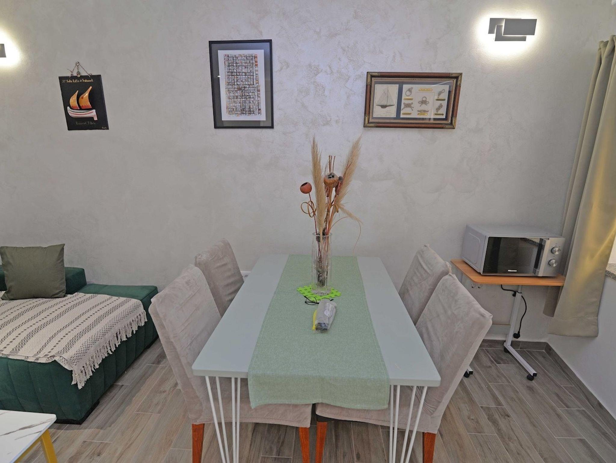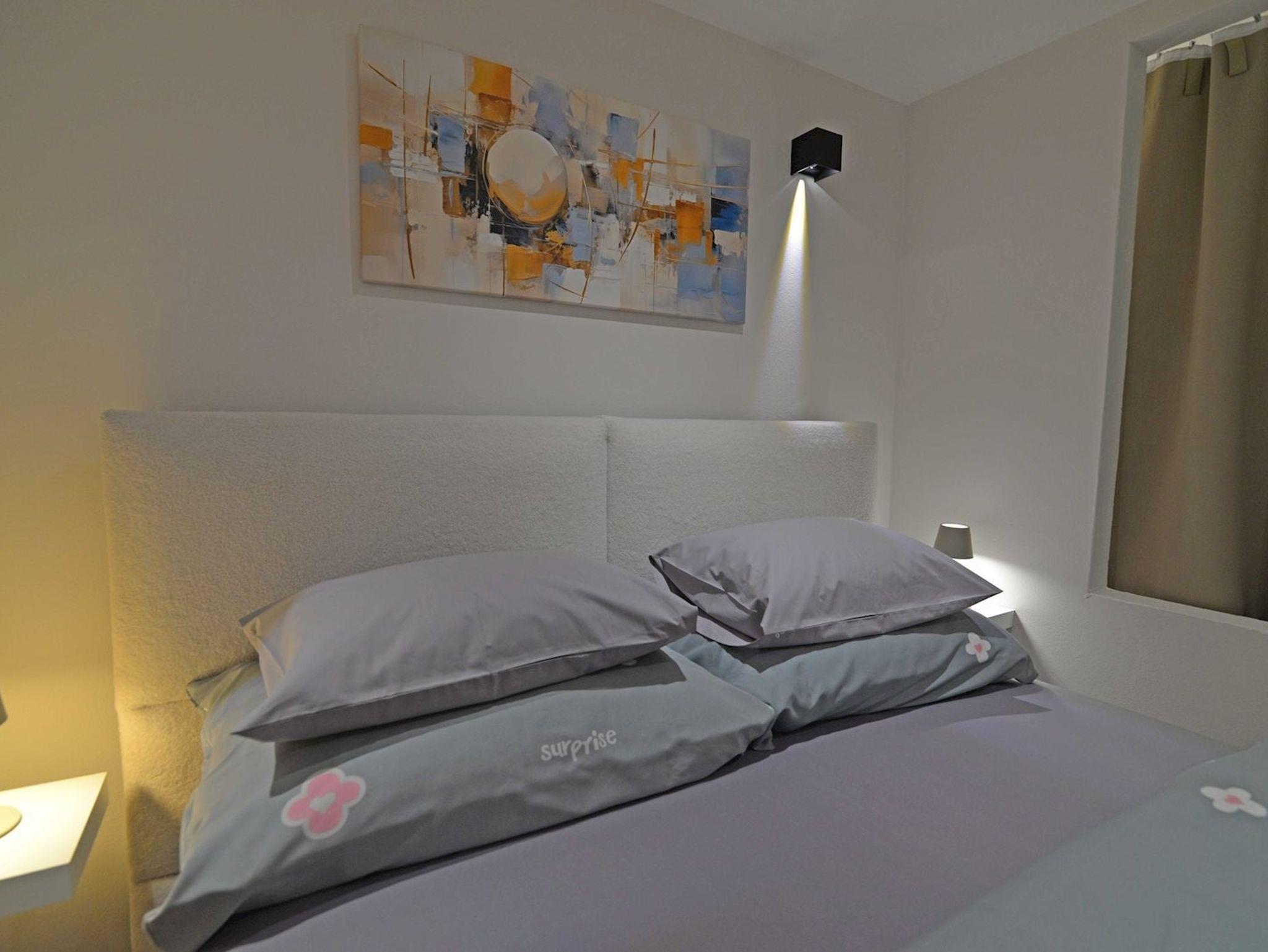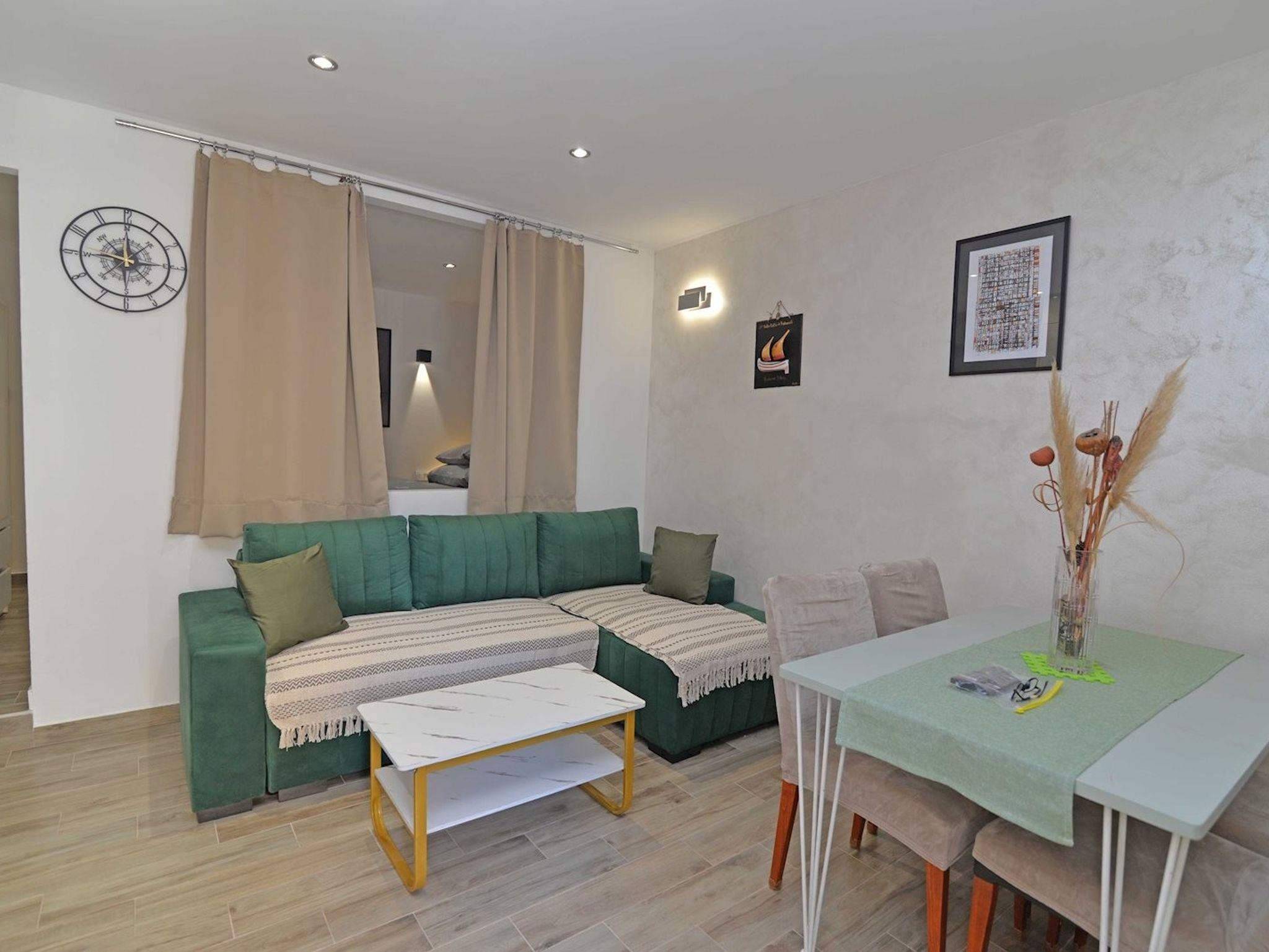 Ferienwohnung bietet Platz für 3 Gäste. Die Betten sind in Schlafzimmern, die es 1 gibt, und in Wohnzimmer, innerhalb einer Gesamtfläche von 29m2, angeordnet. Die reservierte Unterkunftseinheit hat keinen Balkon und keine Terrasse. IM PREIS INBEGRIFFEN: Kurtaxe, Endreinigung, Klimatisierung, Internet. VERBINDLICHE ZUSÄTZLICHE KOSTEN: Aufzahlung für Kurzaufenthalte (prozentualer Zuschlag pro Nächtigungsanzahl: 30% - 1, 20% - 2, 10% - 3). UNVERBINDLICHE ZUSÄTZLICHE KOSTEN: Boot (150,00 € pro Nacht), Zusatzbett (10,00 € pro Nacht). Die Verfügbarkeit zusätzlicher Dienstleistungen in Ihrem reservierten Termin und die Preise derselben (falls nicht aufgeführt) müssen im Voraus überprüft werden. Zusätzliche Dienstleistungen die in der Zahlungsaufforderung nicht aufgeführt sind werden direkt beim Vermieter bezahlt, angenommen der Gast nutzt auch diese.
