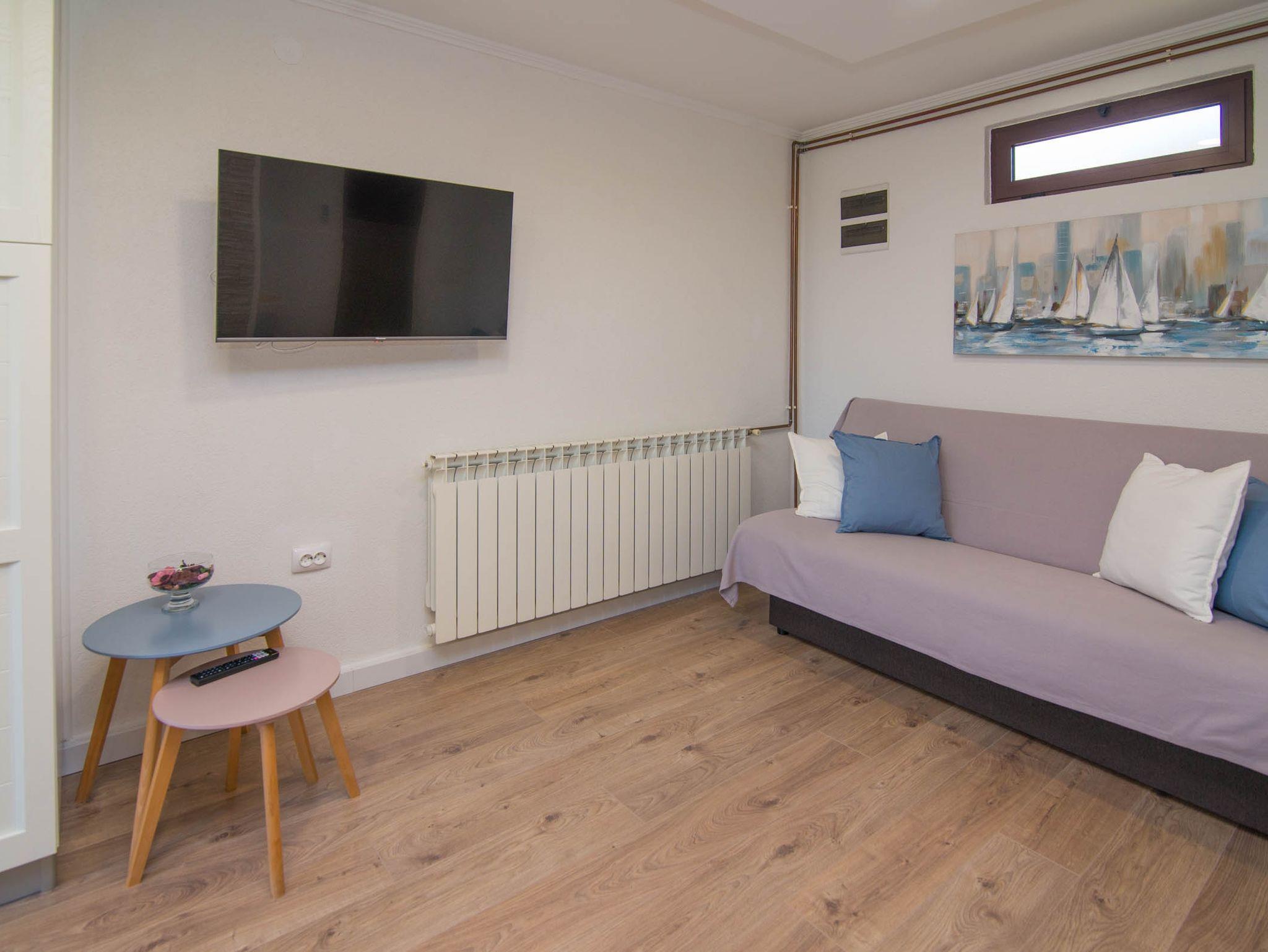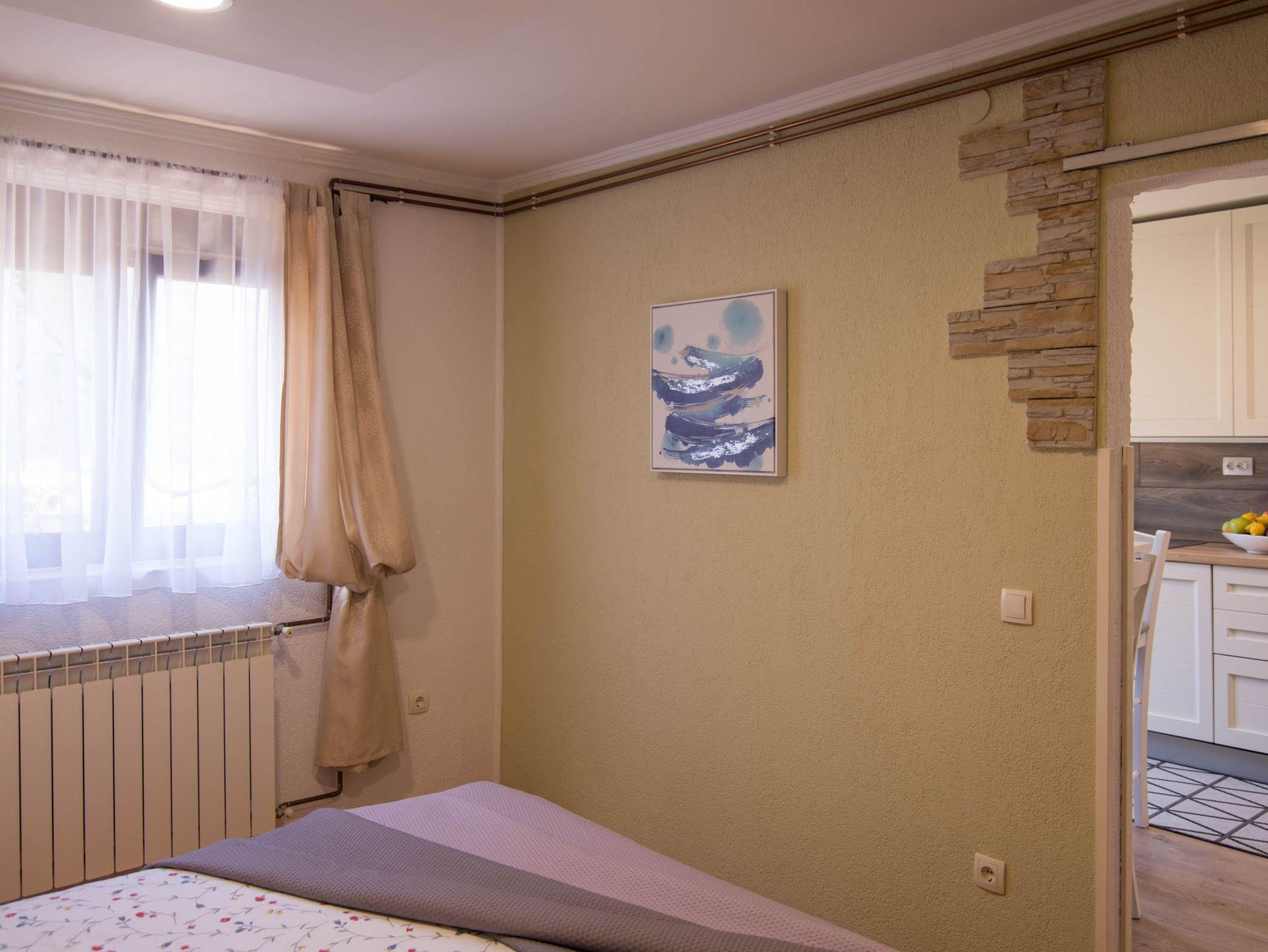 Ferienwohnung bietet Platz für 3 Gäste. Die Betten sind in Schlafzimmern, die es 1 gibt, und in Wohnzimmer, innerhalb einer Gesamtfläche von 27m2, angeordnet. Die Gäste haben eine eigene Terrasse zur Verfügung, auf der sie in warmen Sommernächten genießen können. In der Unterkunftseinheit besteht die Möglichkeit des Mitbringens von Haustieren gegen Aufpreis. IM PREIS INBEGRIFFEN: Kurtaxe, Endreinigung, Klimatisierung, Parkplatz, Internet. VERBINDLICHE ZUSÄTZLICHE KOSTEN: Aufzahlung für Kurzaufenthalte (prozentualer Zuschlag pro Nächtigungsanzahl: 30% - 1, 20% - 2, 10% - 3). UNVERBINDLICHE ZUSÄTZLICHE KOSTEN: Haustiere (10,00 € pro Nacht). Die Verfügbarkeit zusätzlicher Dienstleistungen in Ihrem reservierten Termin und die Preise derselben (falls nicht aufgeführt) müssen im Voraus überprüft werden. Zusätzliche Dienstleistungen die in der Zahlungsaufforderung nicht aufgeführt sind werden direkt beim Vermieter bezahlt, angenommen der Gast nutzt auch diese.