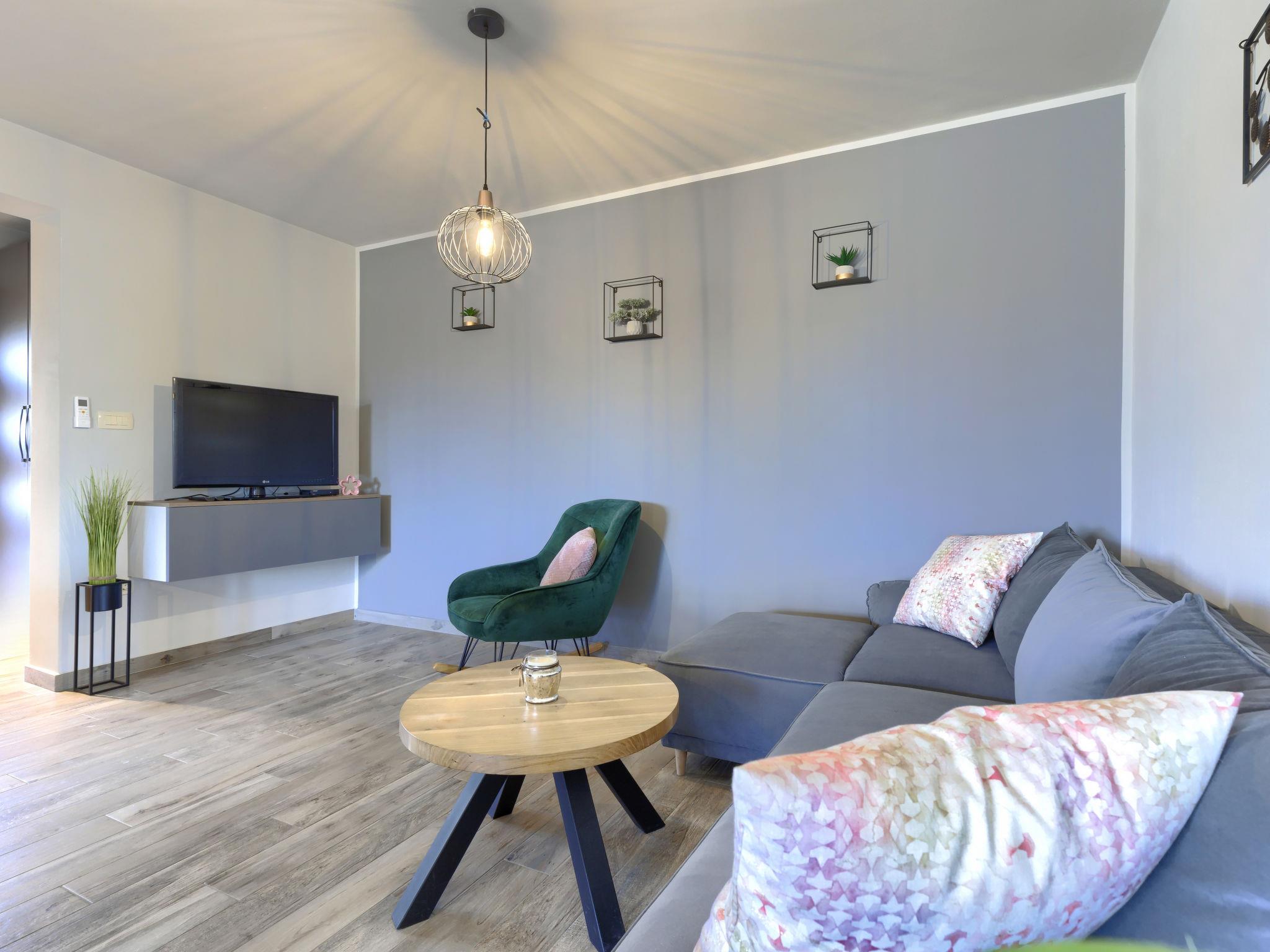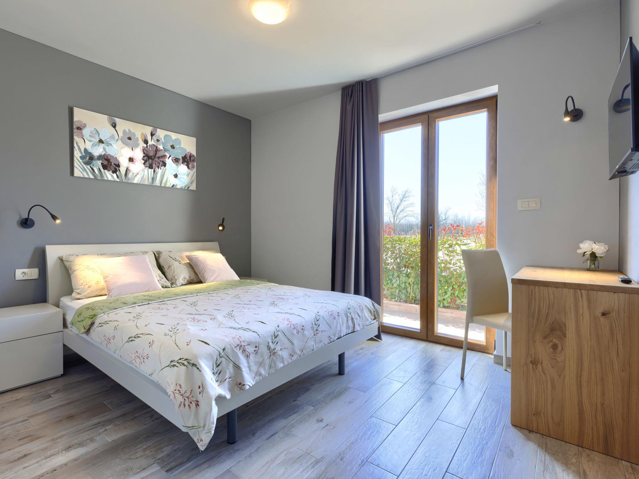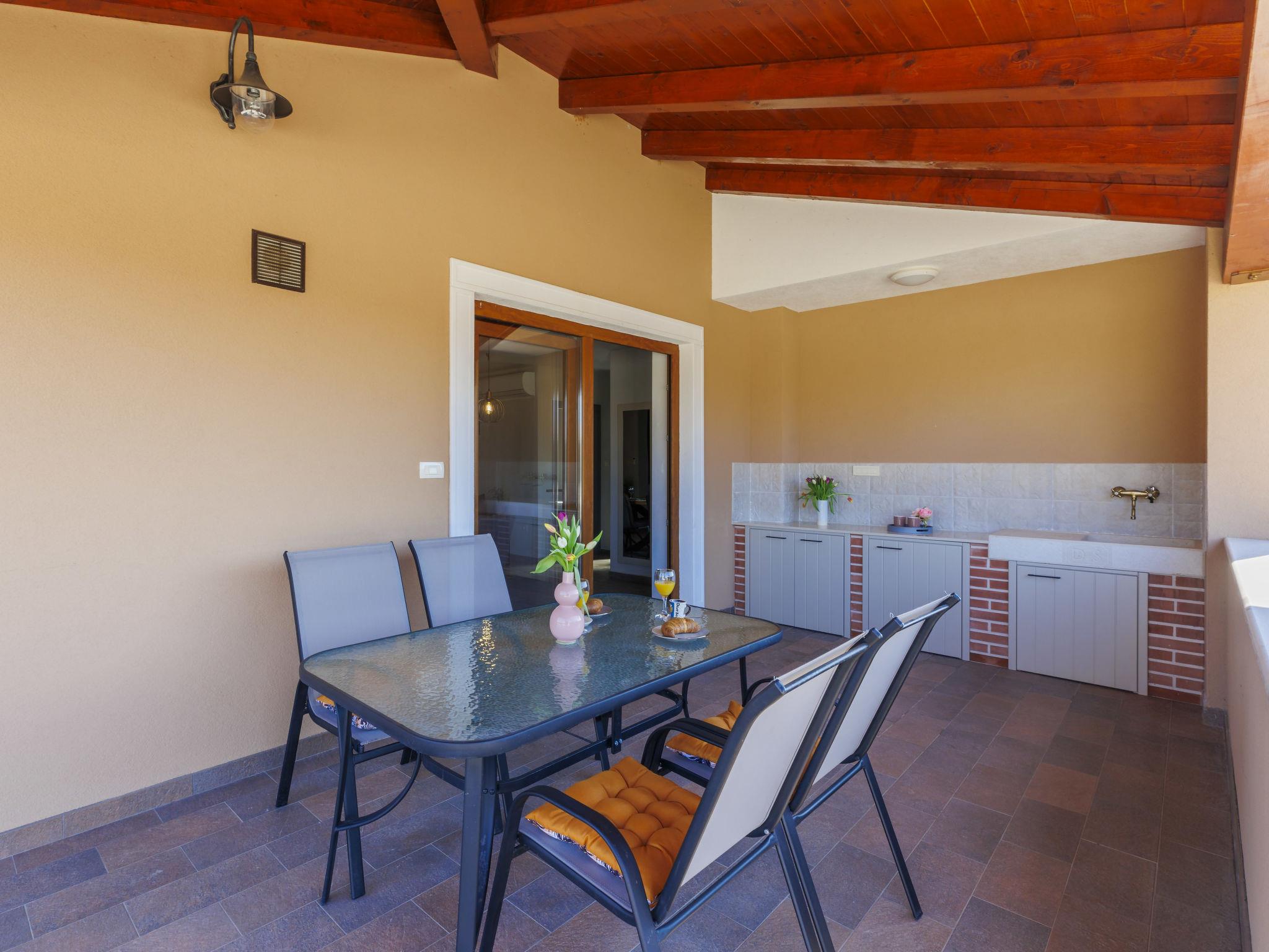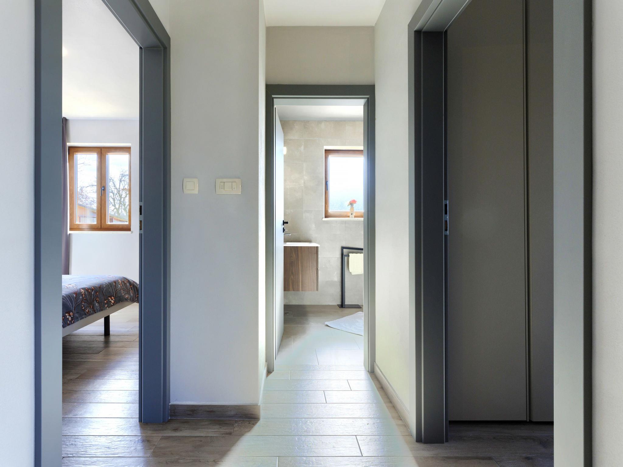 Beautiful 2-family house "Emili", built in 2022. In the hamlet Jadruhi 4 km from the centre of Vižinada, 5 km from the centre of Višnjan, 10 km from the centre of Kaštelir, in a sunny position, 19 km from the sea. Private: property 400 m2, swimming pool angular (52 m2, depth 150 cm, seasonal availability: 01.May. - 01.Oct.) with internal staircase. Paddling pool, outdoor shower, terrace (20 m2), garden furniture, children's playground (slide, swing), pool maintenance by the owner/gardener. In the house: internet access. Parking (for 2 cars) at the house on the premises. Shop 4 km, restaurant 100 m, bus stop 3.9 km, rocky beach 19 km. Walking paths from the house 100 m, cycle lane 150 m.