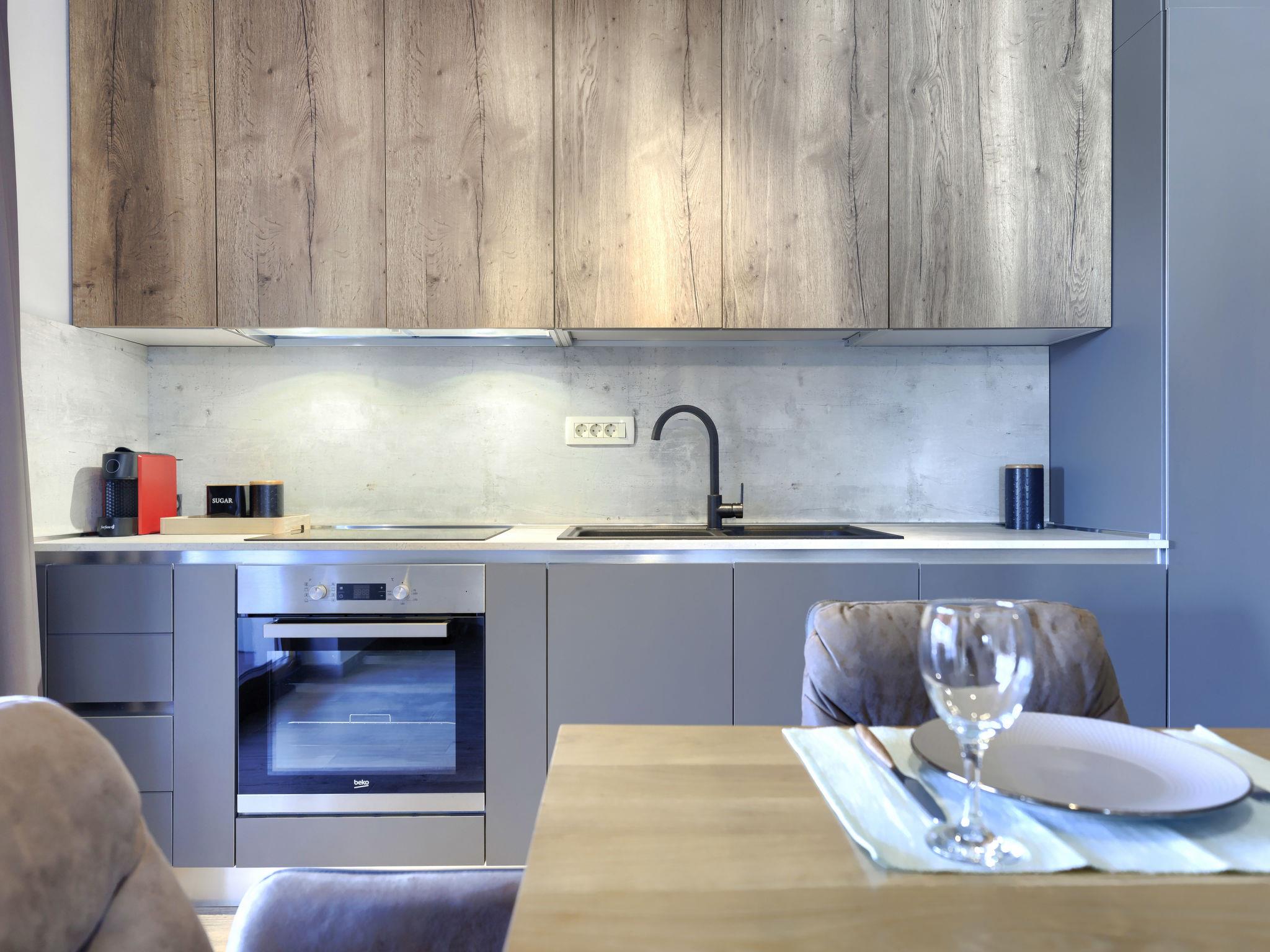 3-room apartment 50 m2, on the ground floor. Beautiful and tasteful furnishings: living/dining room with satellite TV (flat screen), air conditioning. 2 rooms, each room with 1 french bed (160 cm, length 200 cm), satellite TV (flat screen), air conditioning. Open kitchen (oven, dishwasher, 4 induction hot plates, toaster, kettle, freezer, electric coffee machine). 2 showers/WC. Barbecue, deck chairs. View of the swimming pool. Facilities: washing machine, children's high chair, baby cot, hair dryer. Internet (WiFi, free). Please note: private entrance.