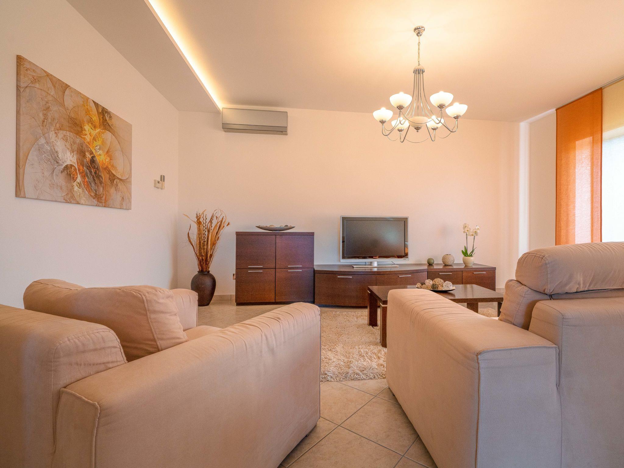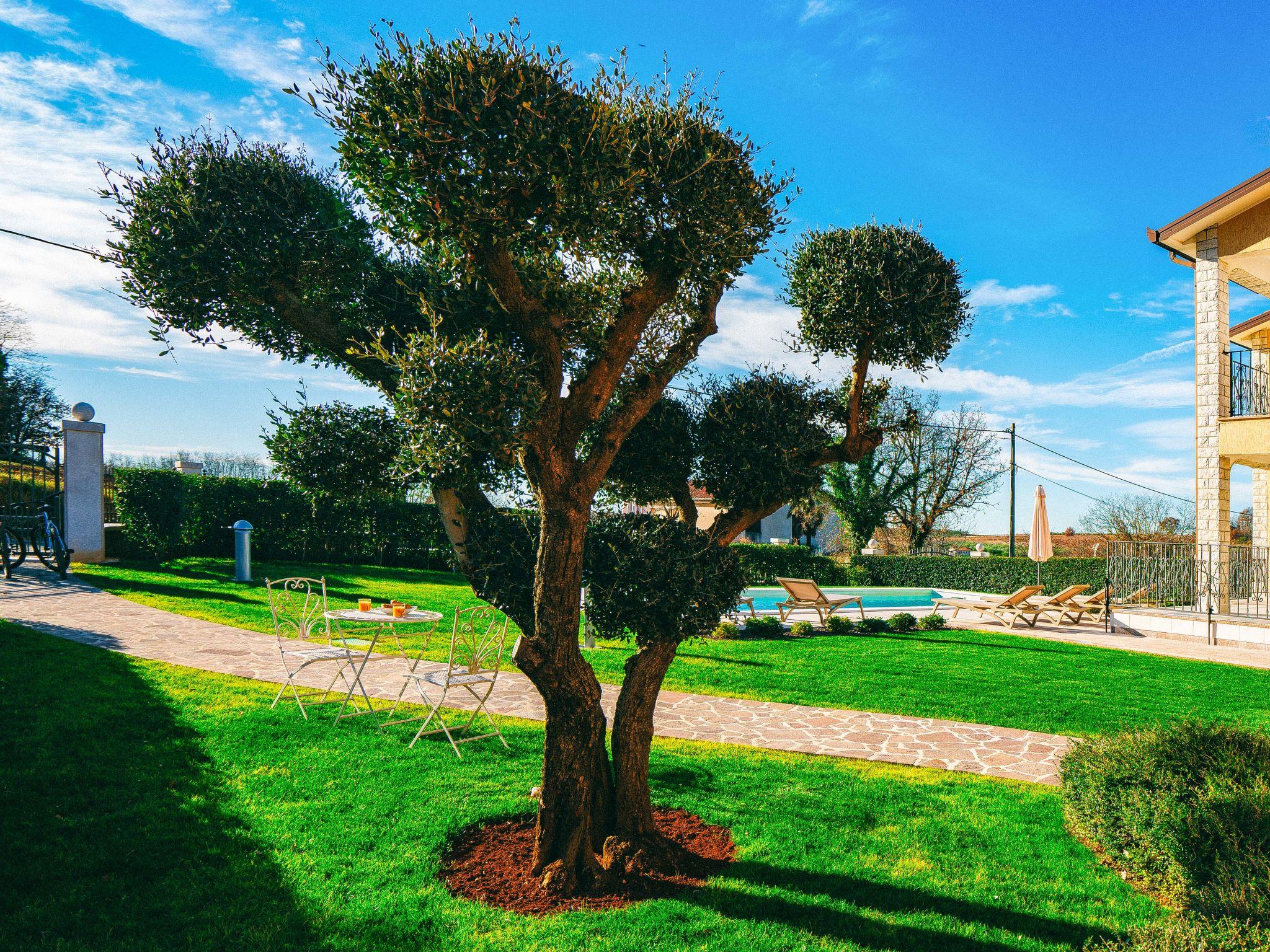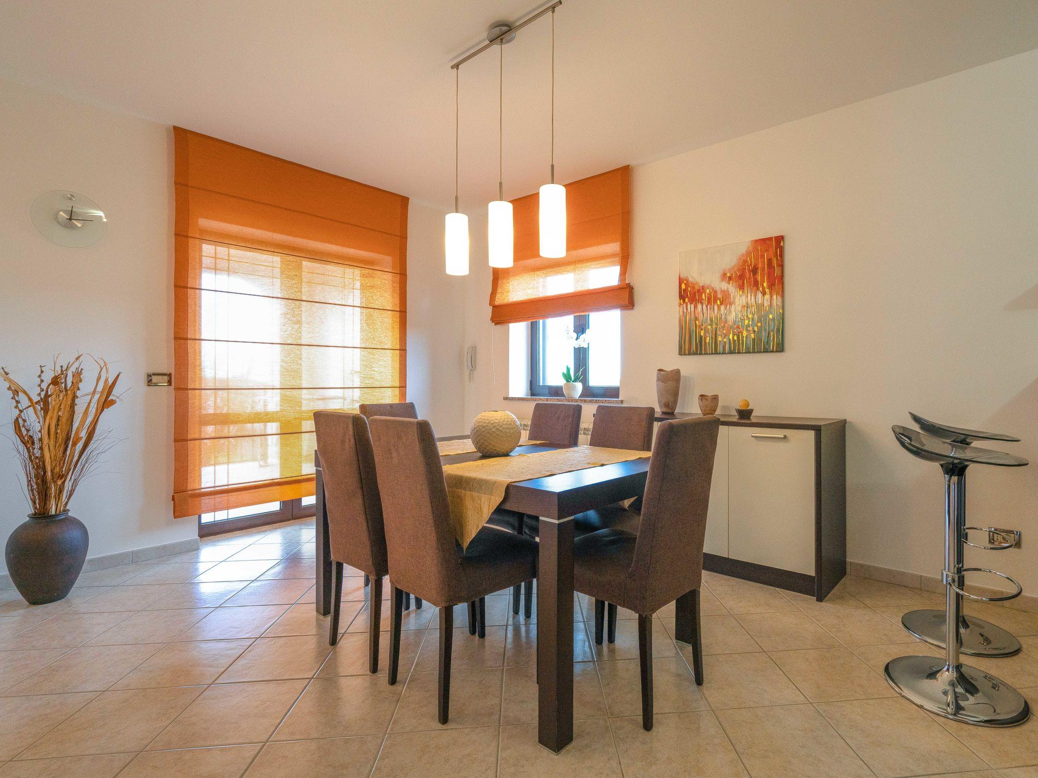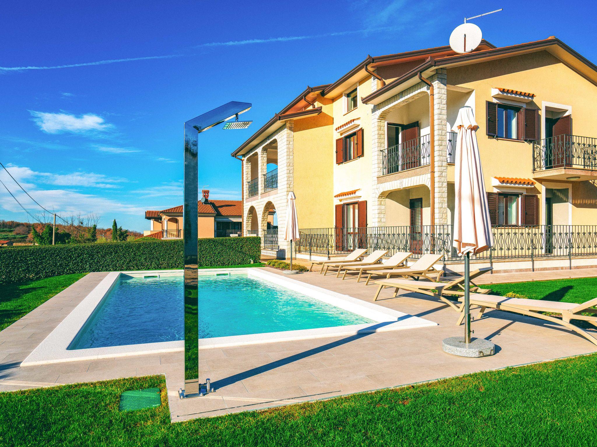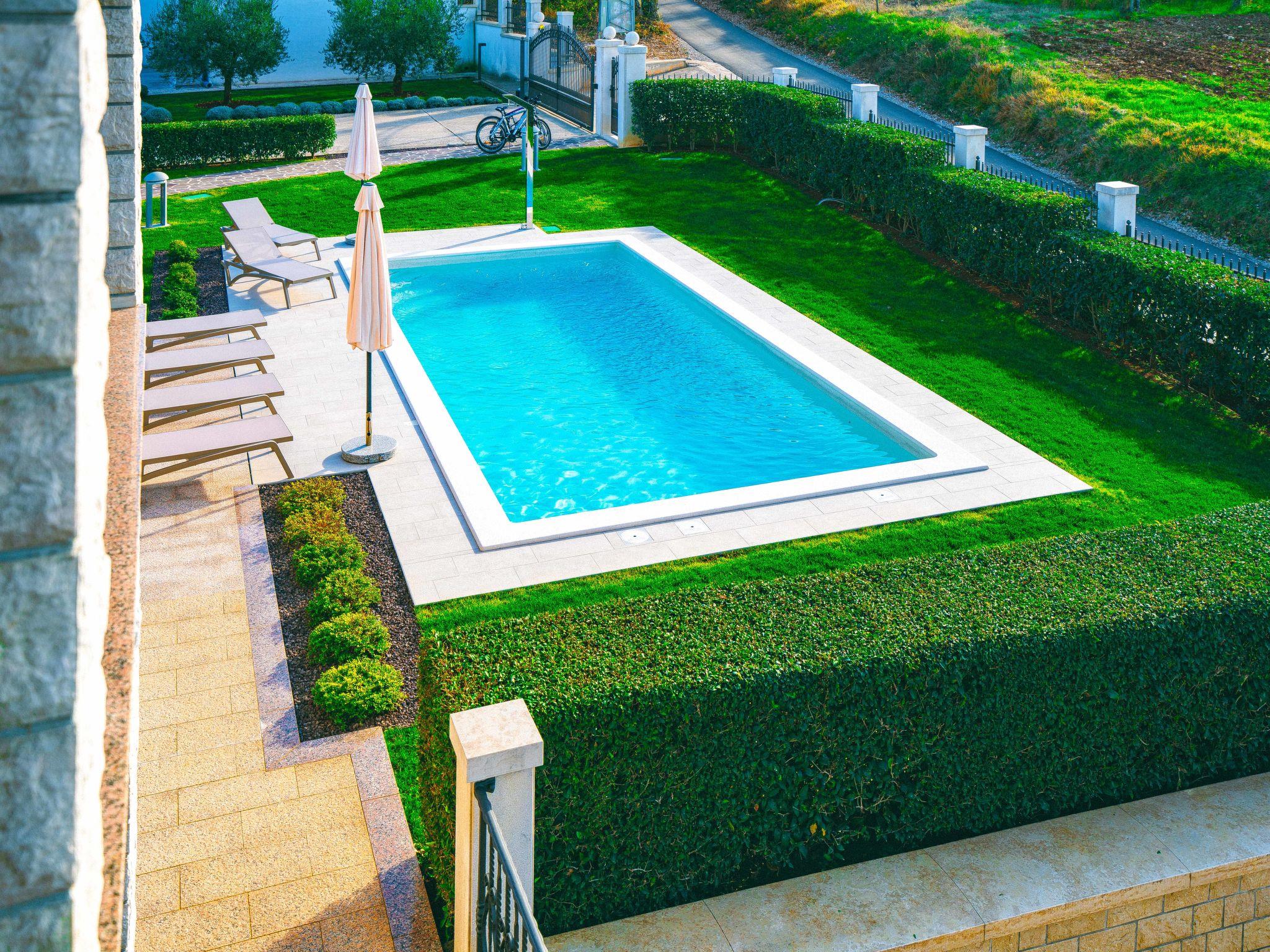 Beautiful apartment house "Silvia". In the hamlet Mekiši 3 km from the centre of Vižinada, 5 km from the centre of Višnjan, 10 km from the centre of Kaštelir, in a sunny position, 19 km from the sea. Private: property 600 m2, swimming pool angular (9 x 4 m, depth 145 cm, seasonal availability: 01.May. - 30.Sep.) with internal staircase. Outdoor shower, terrace (20 m2), garden furniture, barbecue, pool maintenance by the owner/gardener. In the house: internet access. Parking (for 2 cars) at the house on the premises. Shop 3 km, supermarket 16 km, restaurant 300 m, bus stop 3 km, rocky beach 19 km. Walking paths from the house 100 m, cycle lane 150 m.