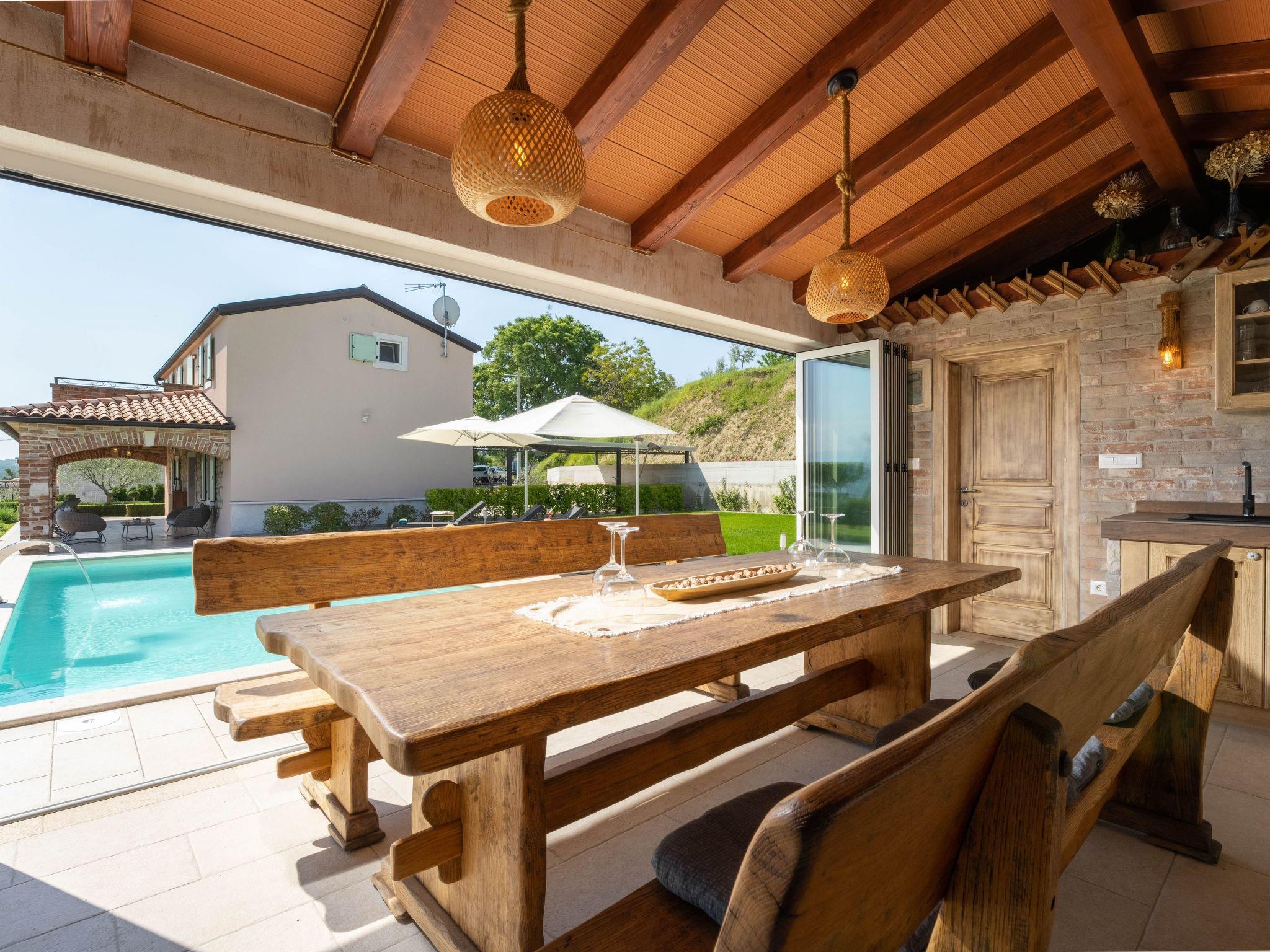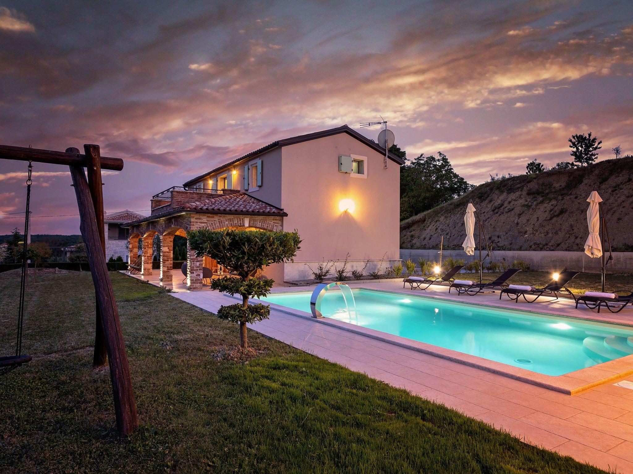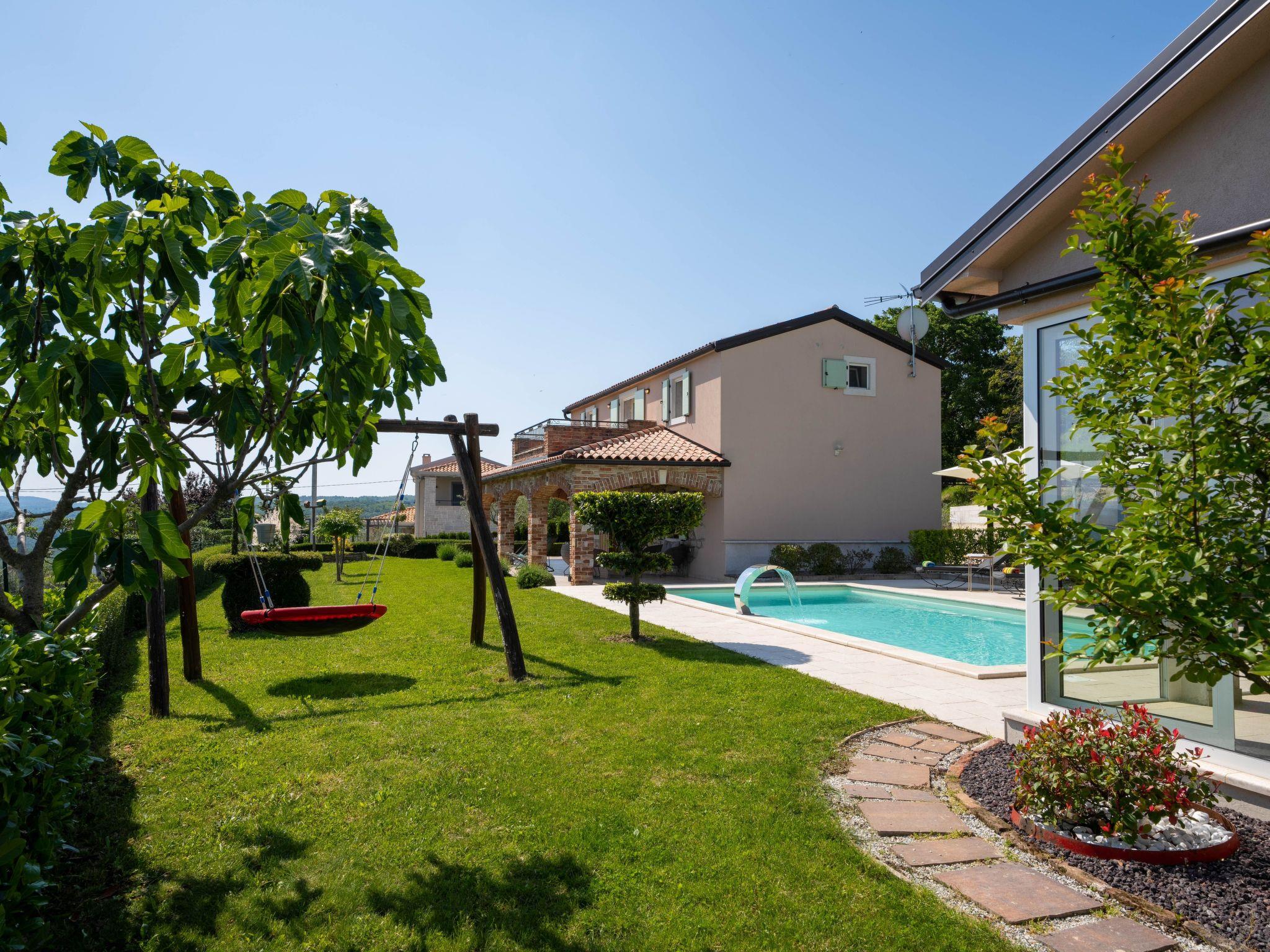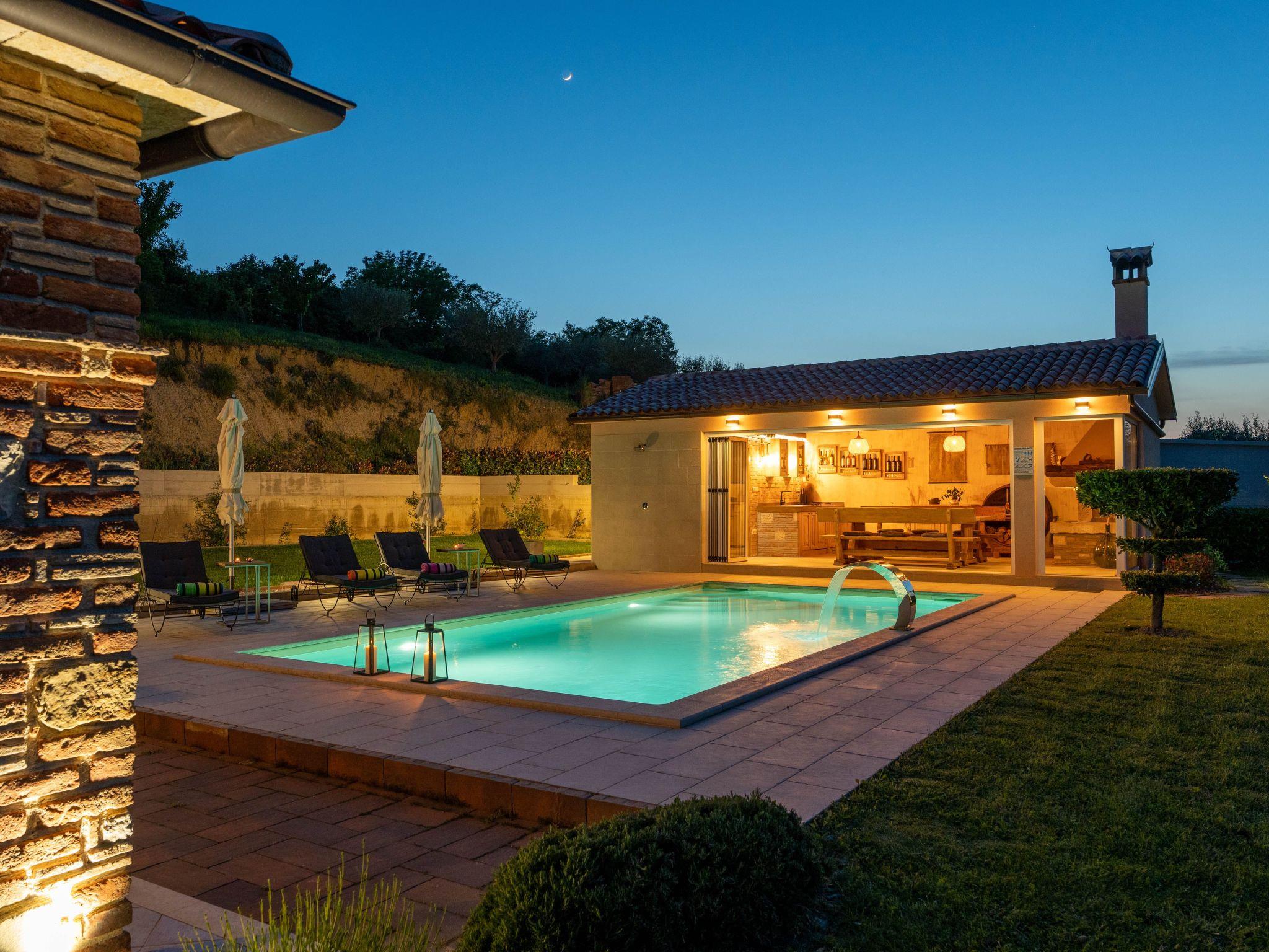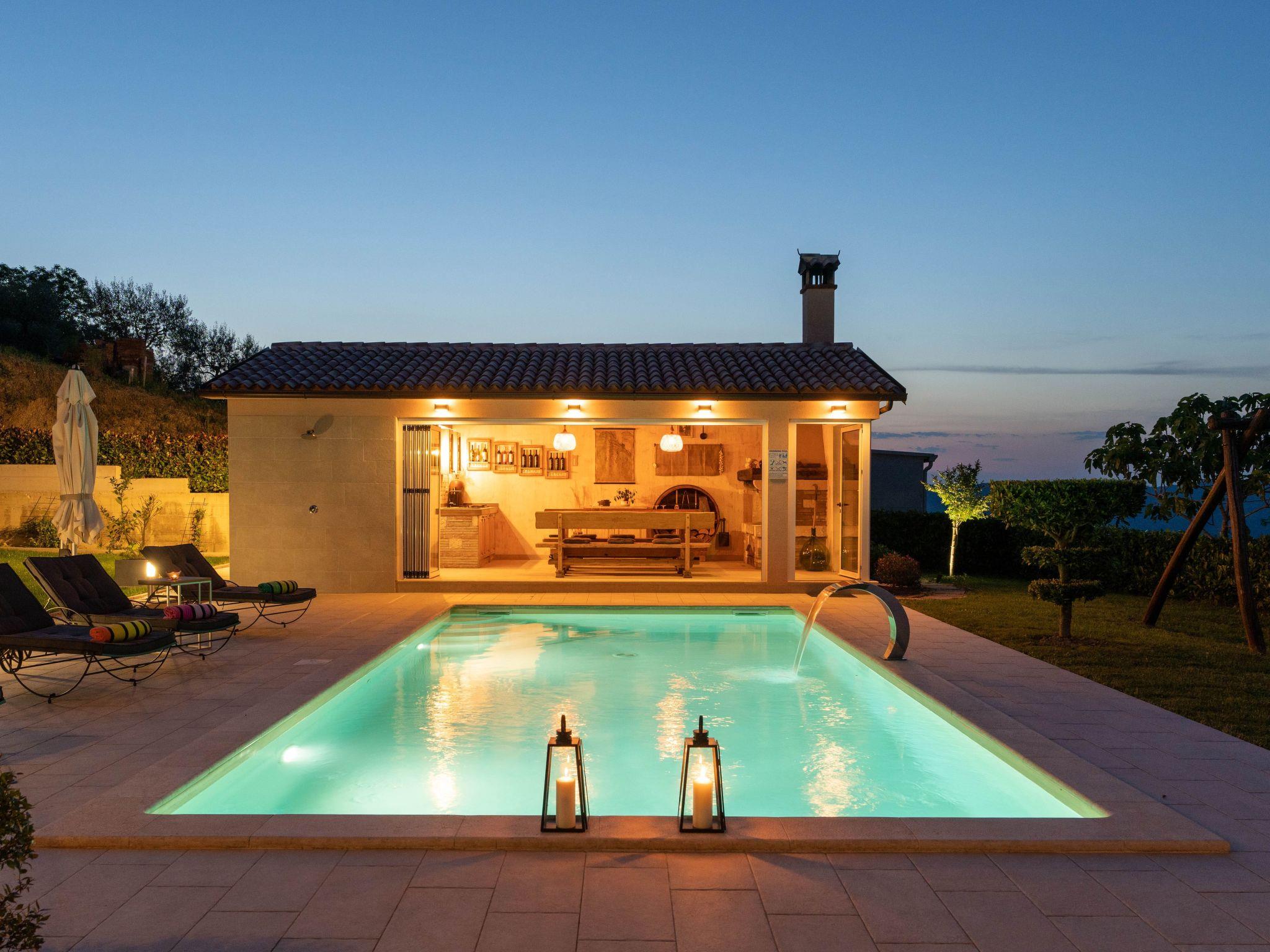 Villa Casa Vista is a completely renovated Istrian stone house, located on the edge of Vizinada with a beautiful panoramic view of Motovun and the greenry of Istria. Approximately 20-minutes drive to Porec and 17 km from the tourist resort Lanterna where are beautiful and well-kept pebble and rocky beaches. Near the house there are several wine and olive oil roads, as well famous wineries. The house is located on a well-kept and fully fenced garden of 700 m2, with an outdoor pool of 32 m², swings for children, two covered terraces for lounging and dining outdoors. Small tavern is in a separate building with an equipped kitchen and fireplace, as well as one shower /wc. Covered parking for two vehicles are available in the yard.