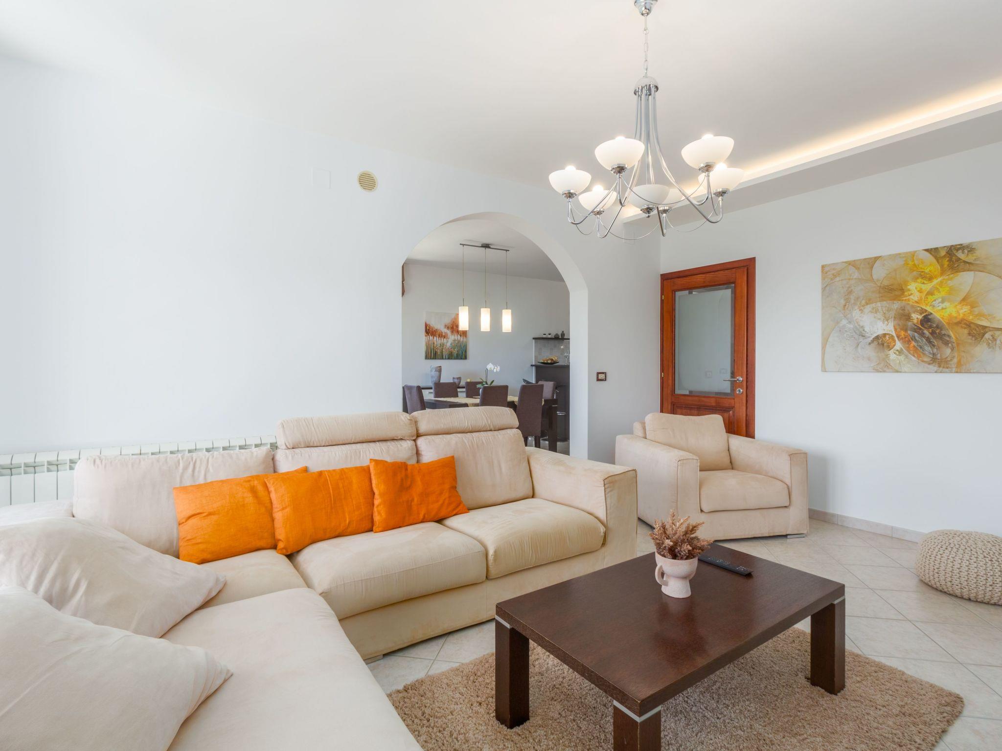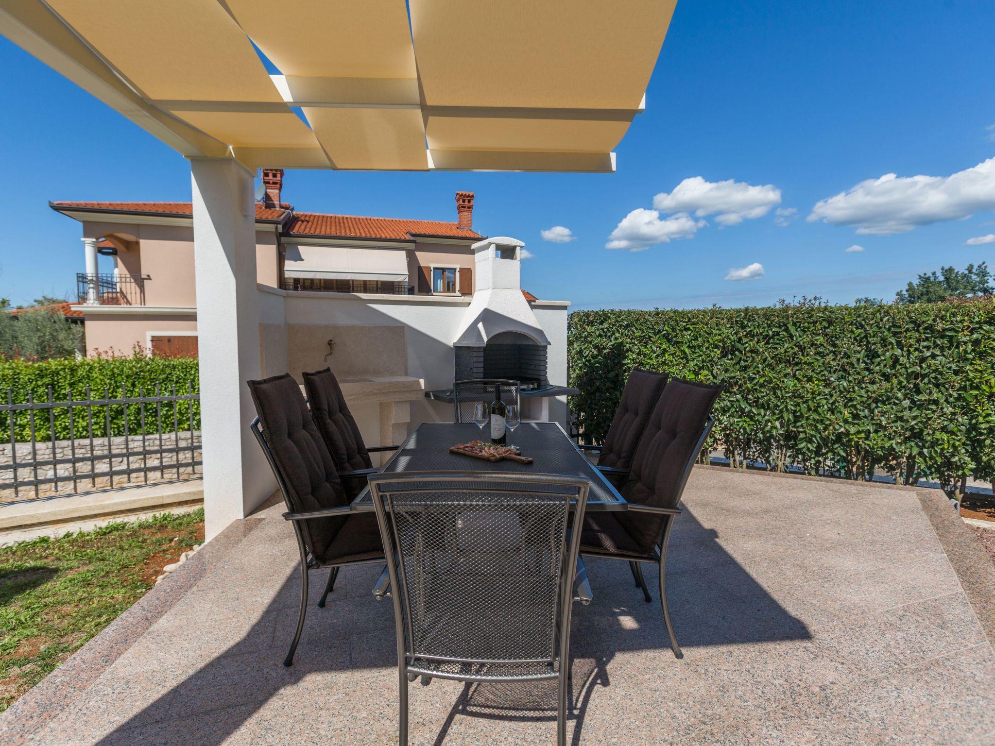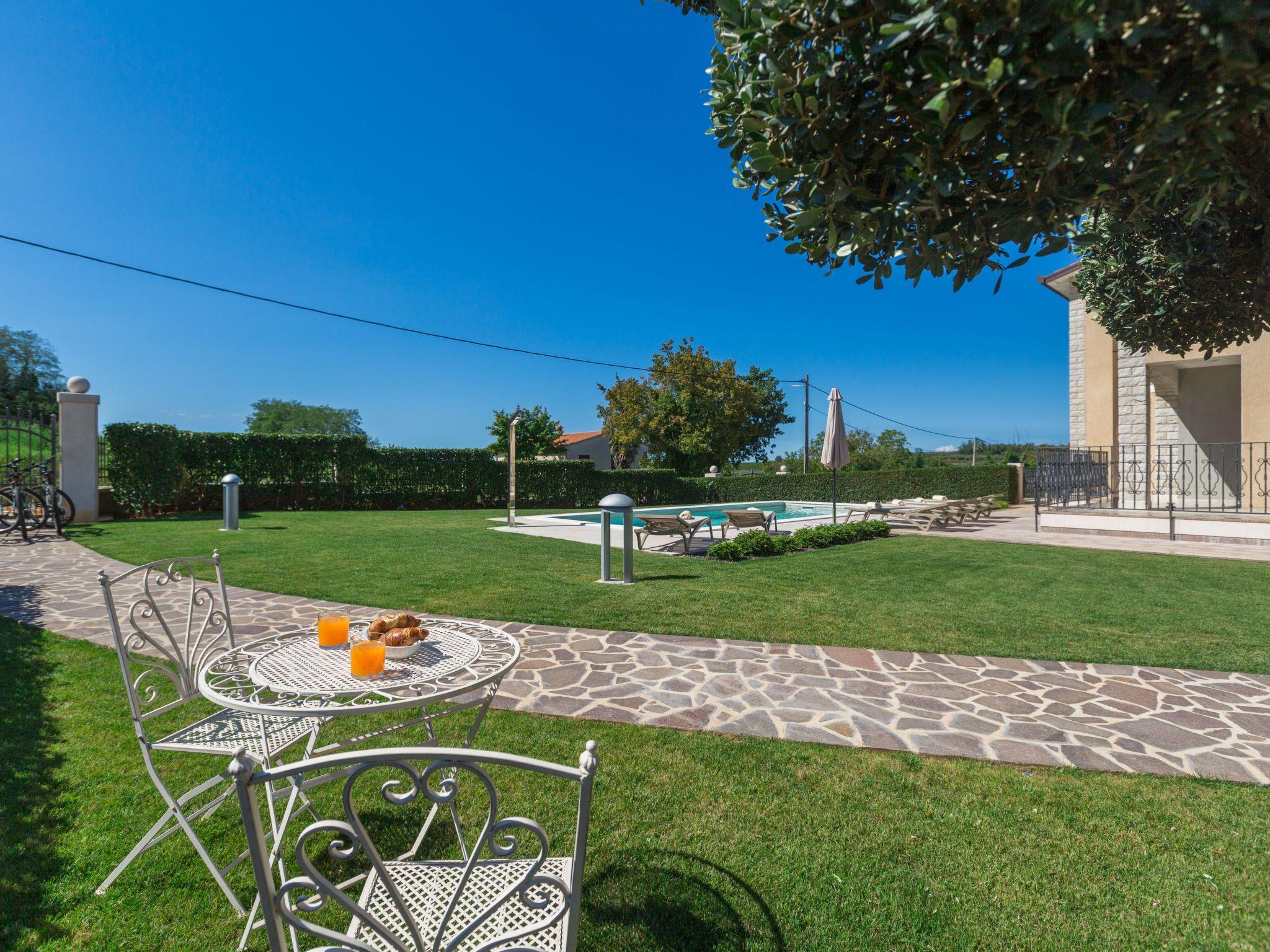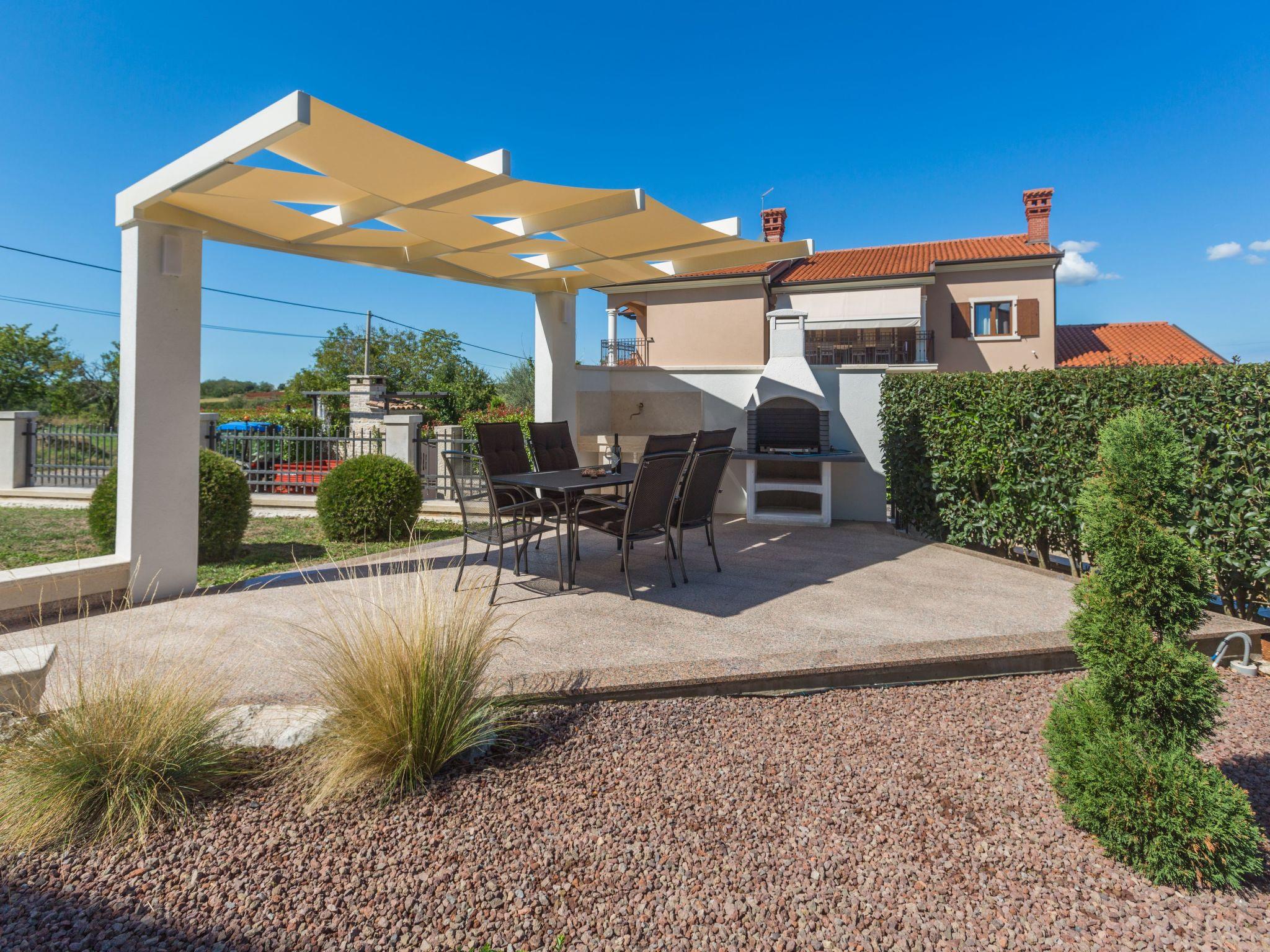 This beautiful detached house with pool is located on a hill with stunning panoramic views of the wooded hills and vineyards. It is located on the edge of the village of Mekisi 4km from the picturesque medieval town of Vizinada, where there is a shop, cafe, ATM, while a farm is just 300m from the house. There are several wineries in the neighbourhood and the attractive Parenzana cycling/hiking trail runs nearby.