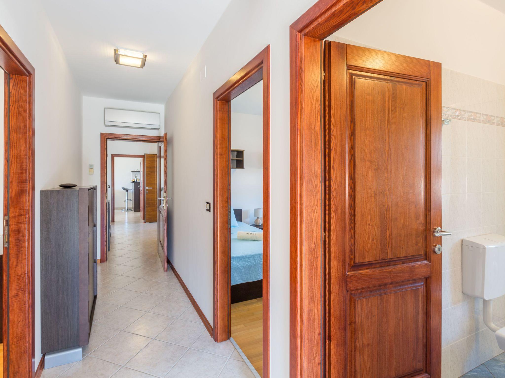 The outdoor facilities include a fully fenced 2000m2 garden with a well-kept lawn, terrace with table and chairs for outdoor dining, barbecue and 36 square metre pool with sun loungers, all for private use. Parking for a total of 2 vehicles is in the courtyard.holiday flat Mihael is located on the 1st floor on 120 sqm and is suitable for up to 6 people. It has an equipped kitchen with dining room, tastefully furnished and well-lit living room with seating area and exit to the balcony with garden furniture and view of the pool area, 2 bedrooms with double bed, bedroom with 2 beds, bathroom with shower/tub/WC, and a separate WC. All bedrooms have a beautiful view of the green surroundings. The whole floor is air-conditioned and unlimited wifi is available and the landlord occasionally lives on the ground floor.