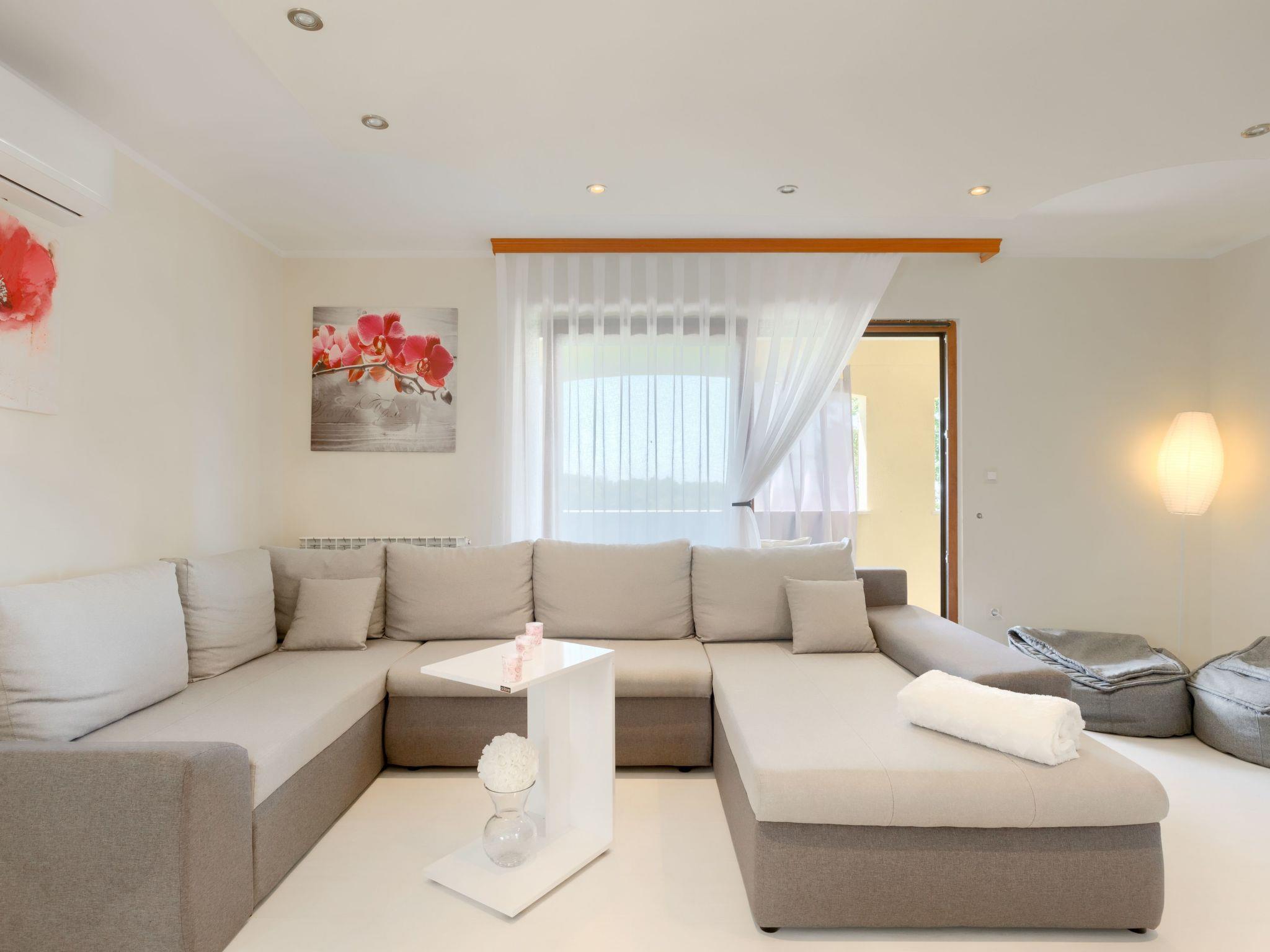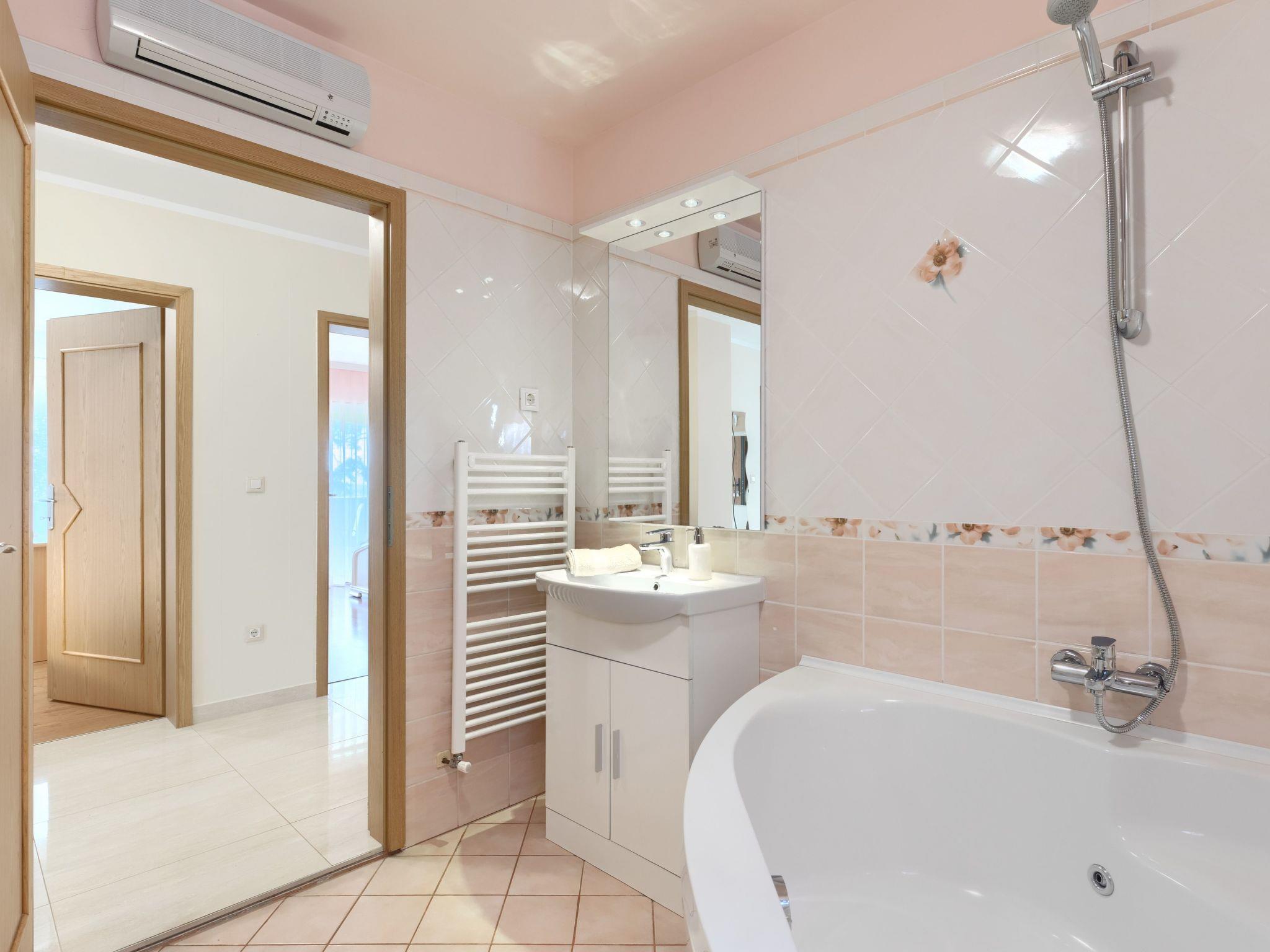 The house is situated on a partially fenced garden plot of 300 m2 with infinity pool, which offers a view of the green surroundings and the sea in the distance. There are also sun loungers, a covered terrace with garden furniture and barbecue where you can enjoy your morning coffee or relax in the evening. The villa has several covered parking spaces and a children's playground. The landlord can be contacted at any time as he lives in the house opposite.