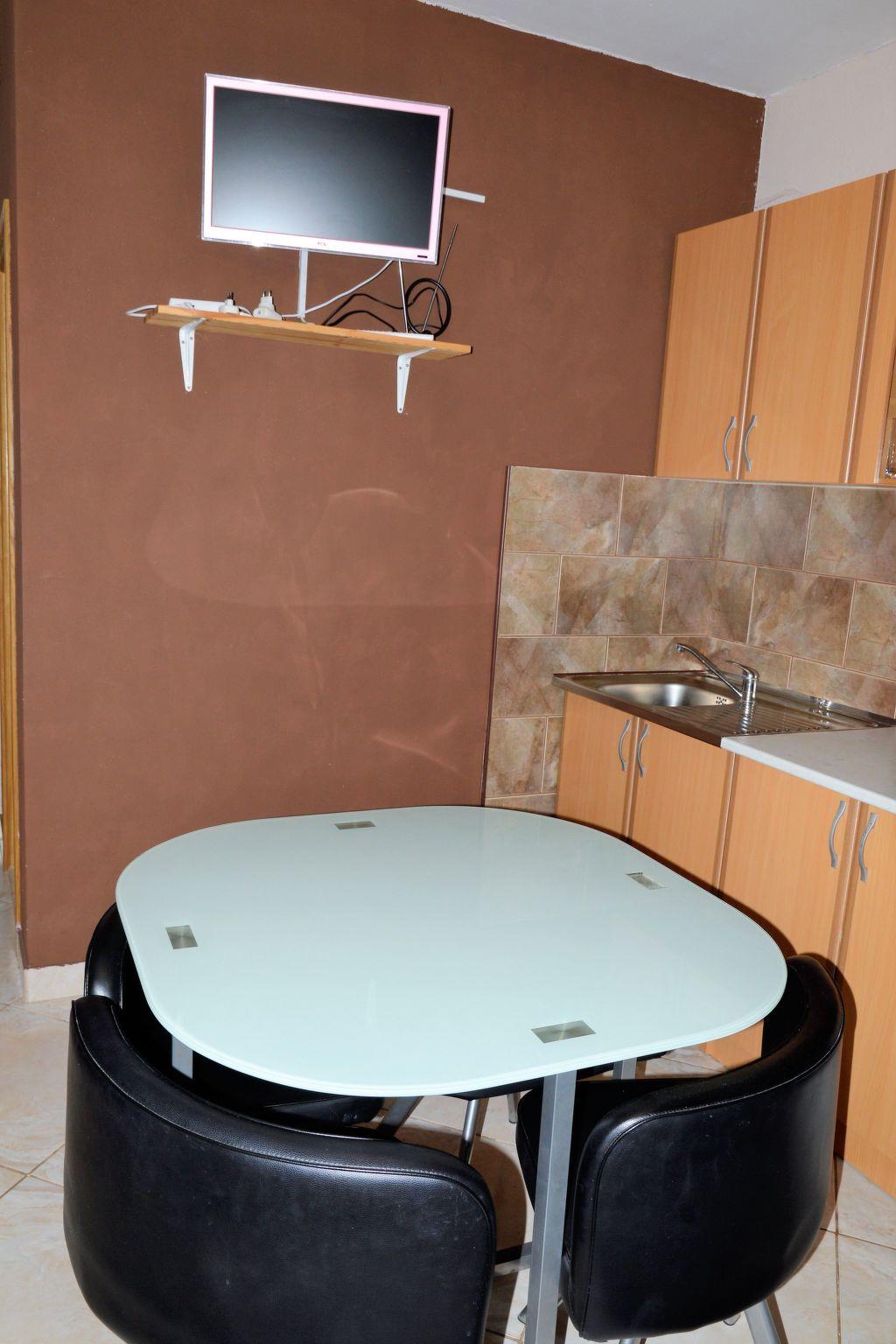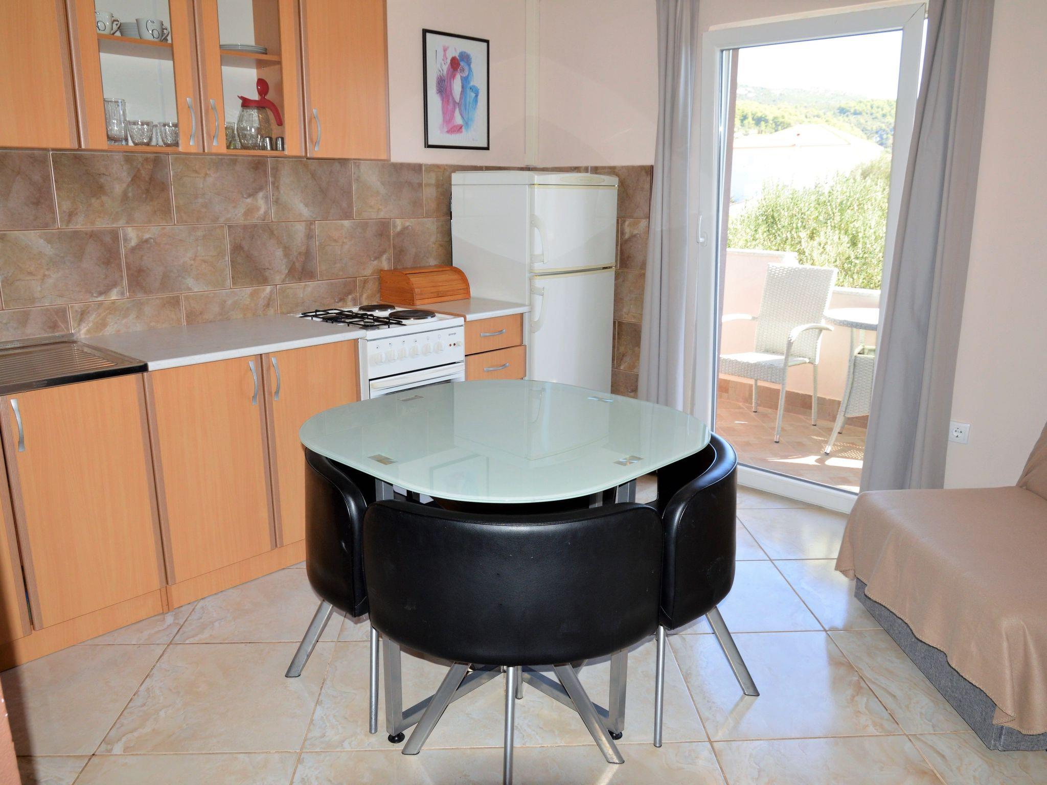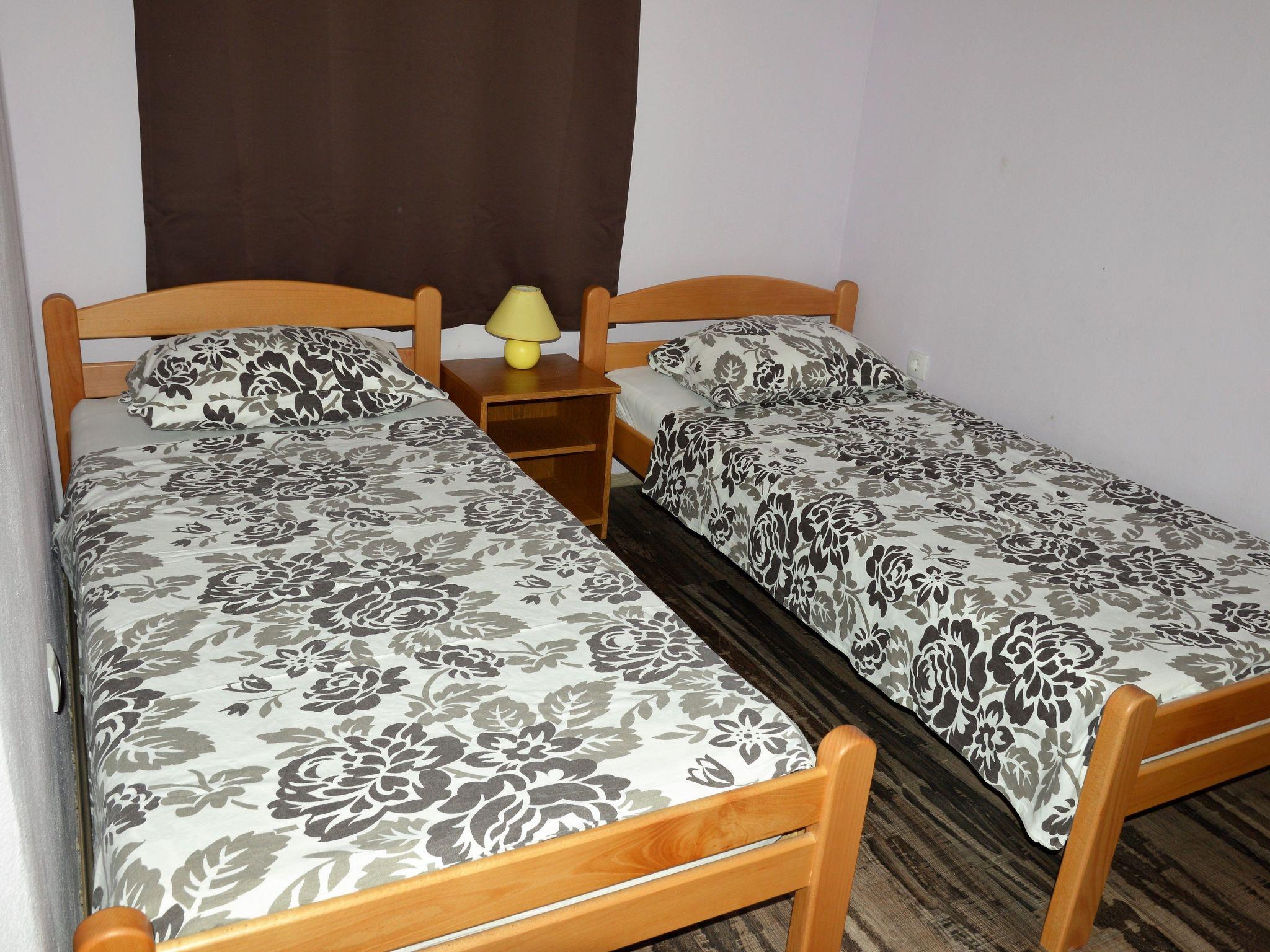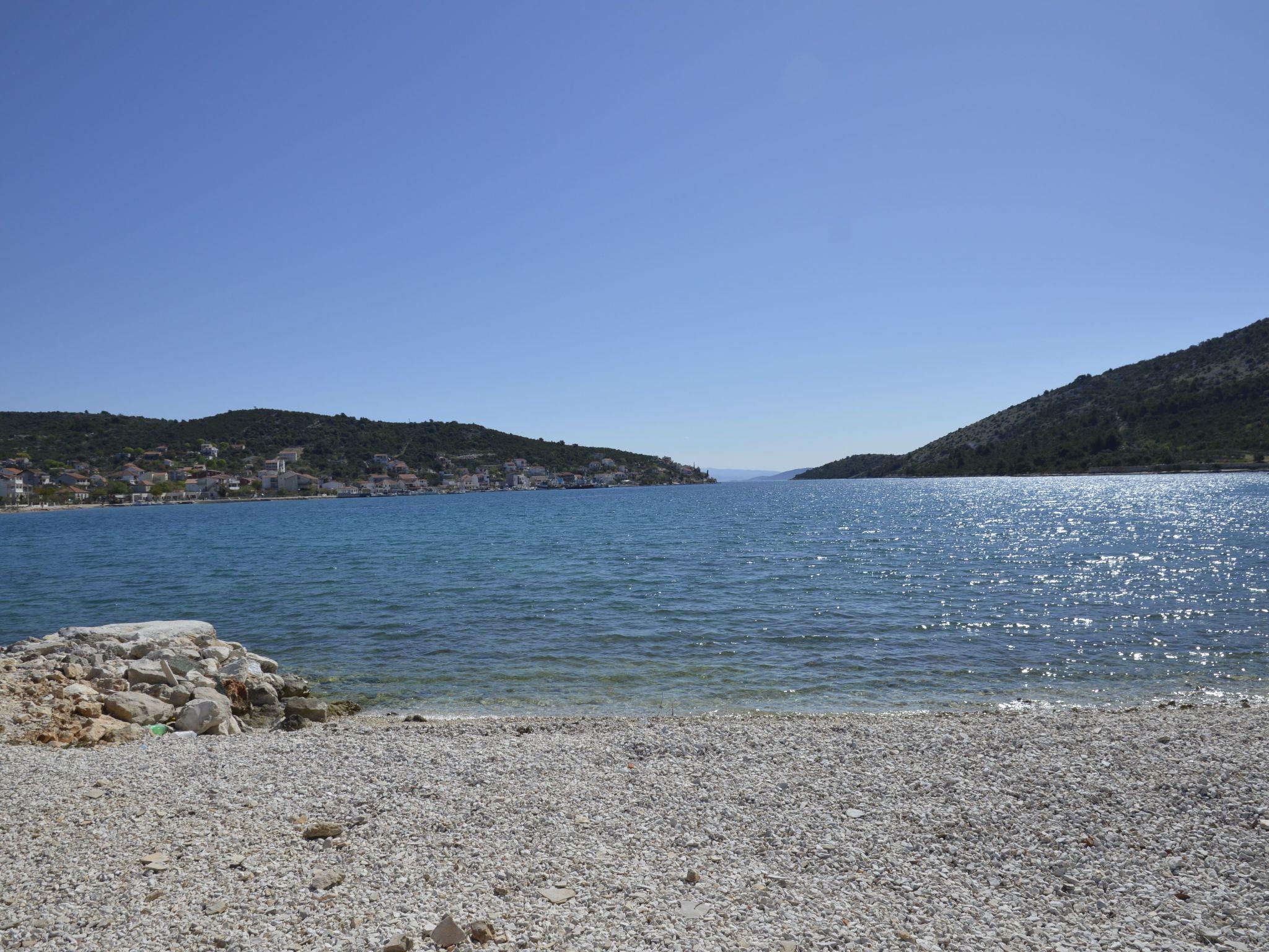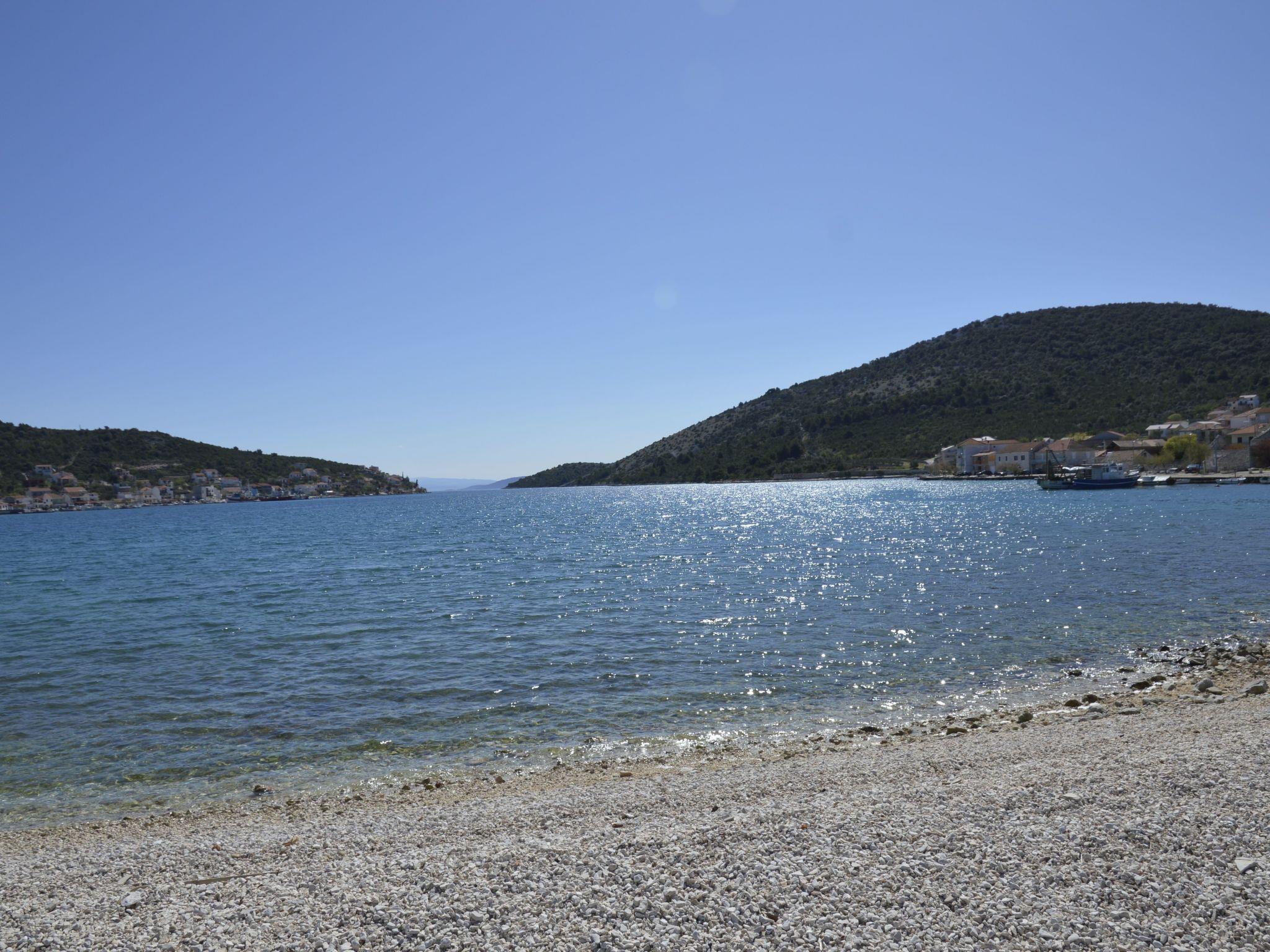The apartment is situated in beautiful bay of Vinišce, 10 km from the Marina and 20 km from Trogir. It's only 150 m from the pebble beach. Maximum capacity of the apartment is 2 adults and a baby (cot available)or 1 child. If you have a pet you can bring it with you. It consists of a bedroom with twin beds which can be joined, bathroom, kitchen with dinning room (sofa bed for 1 person) with exit to the balcony with a partial sea view. It's located on the 1st floor of the house ( the main entrance of the 1st floor is shared but you have your own entrance in the apartment) that has a total of 3 apartments max. capacity for 13 people .The house is in a quiet environment,safe for children with croft of 300 m2,childerns' playground is in vicinity of the house. You will have the barbecue behind the house and parking in front of the house on your disposal . All basic services are nearby, and for everything else you might need it can be found in the Marina or Trogir.