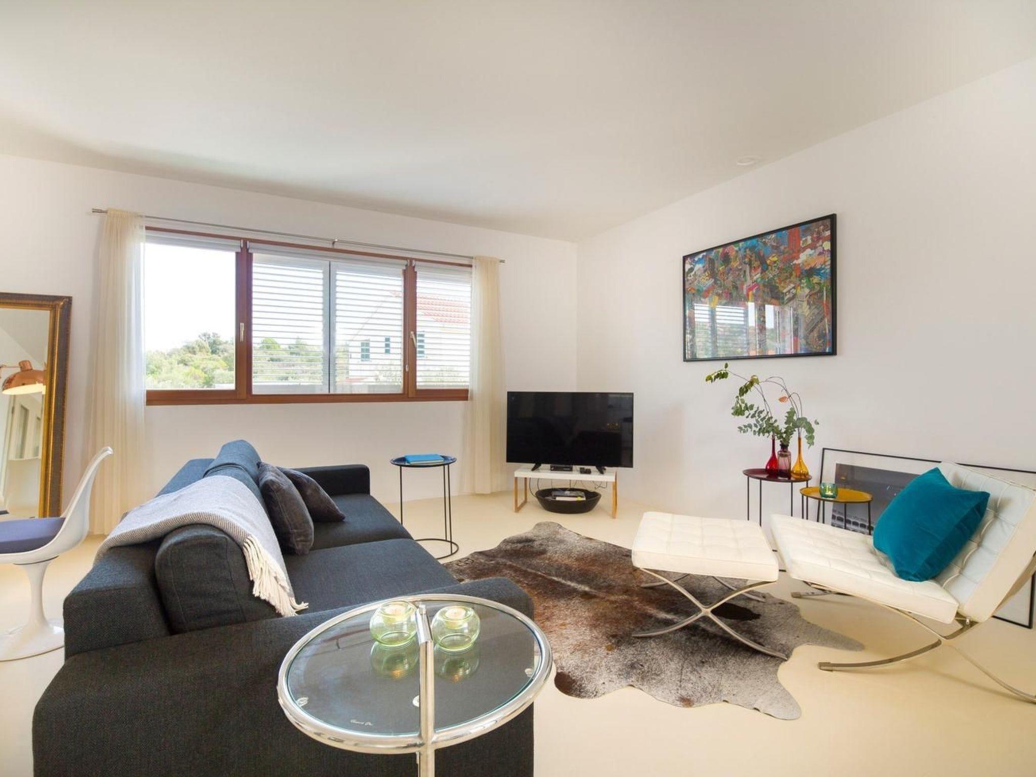 In the outdoor area, you can find a 24 m2 private pool accompanied by sun loungers and garden furniture. You can sip your cocktail and read a good book where ever you want. An outdoor shower is very convenient and a lifesaver for hot days. The complete outdoor area is surrounded by olive trees, a synonym for Dalmatia. And the view—breathtaking. You can enjoy it while resting on the terraces. This kind of view is the one books are written about and paintings painted of.