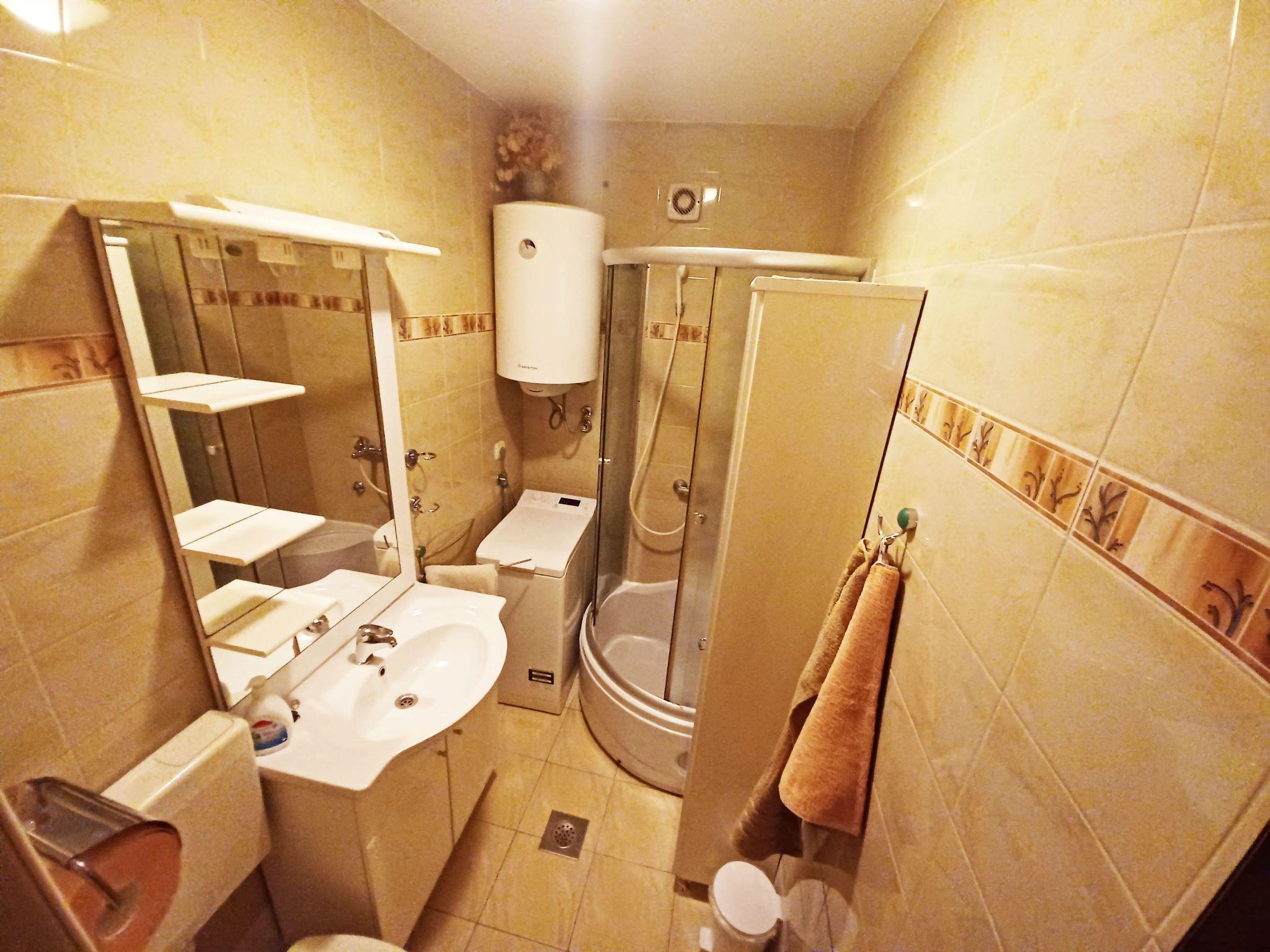 The 43m² apartment has two bedrooms, one with a double bed and the other with two single beds. The bathroom provides a shower and WC. The kitchen has all the necessary appliances, such as a fridge, microwave, gas stove, coffee machine and cutlery, glasses and crockery. The living room has a sofa bed, a dining table with chairs and satellite TV.