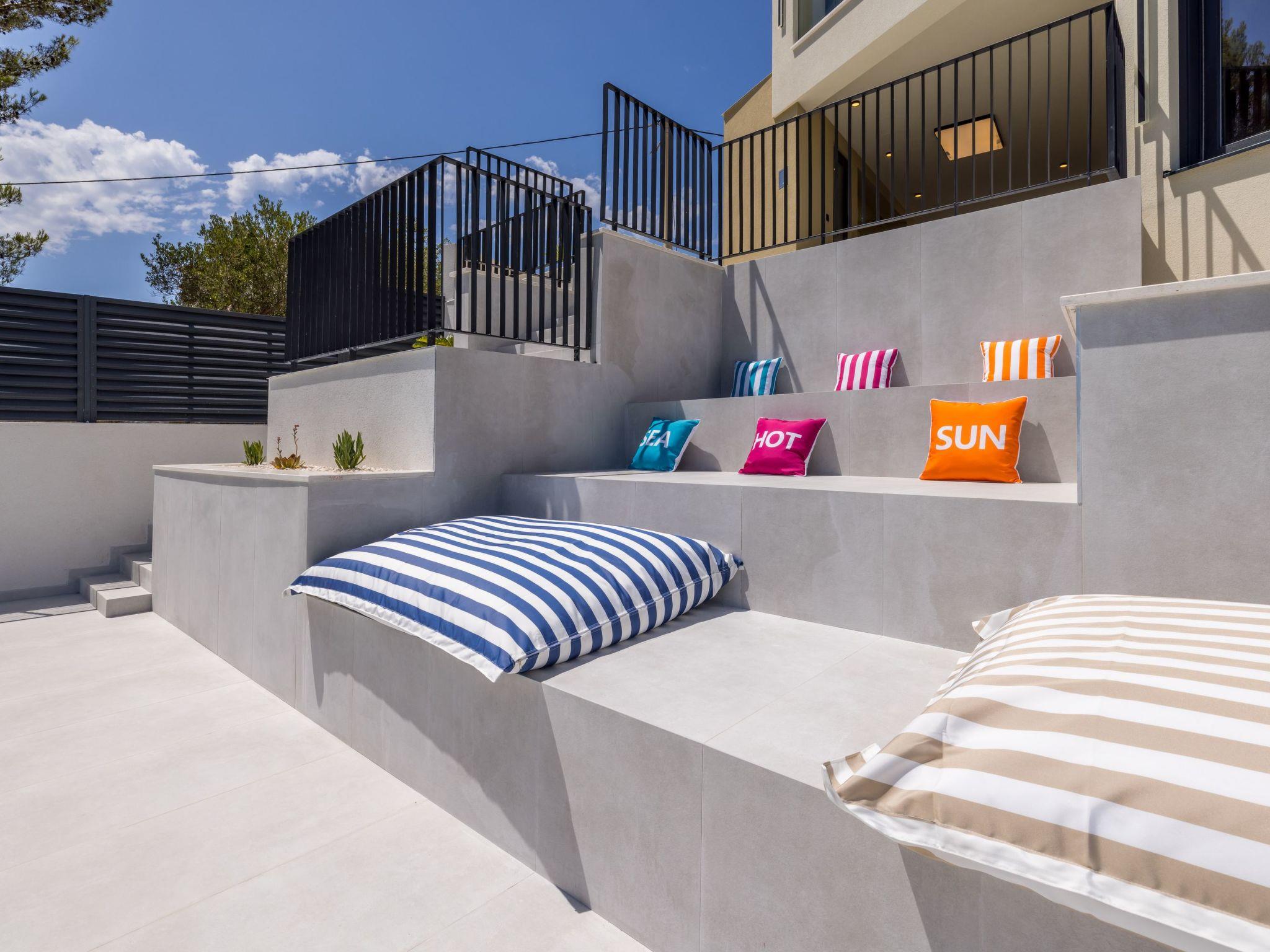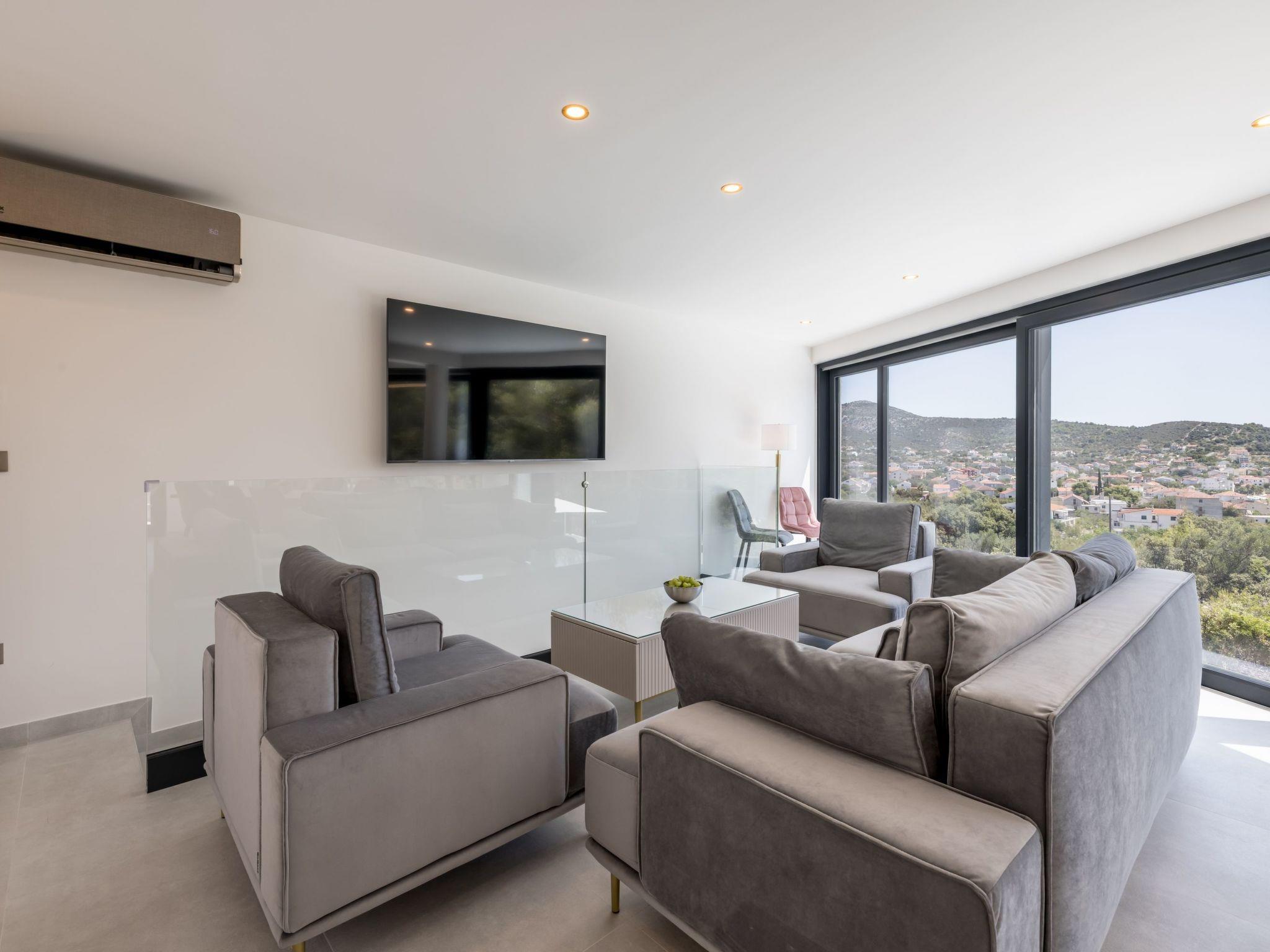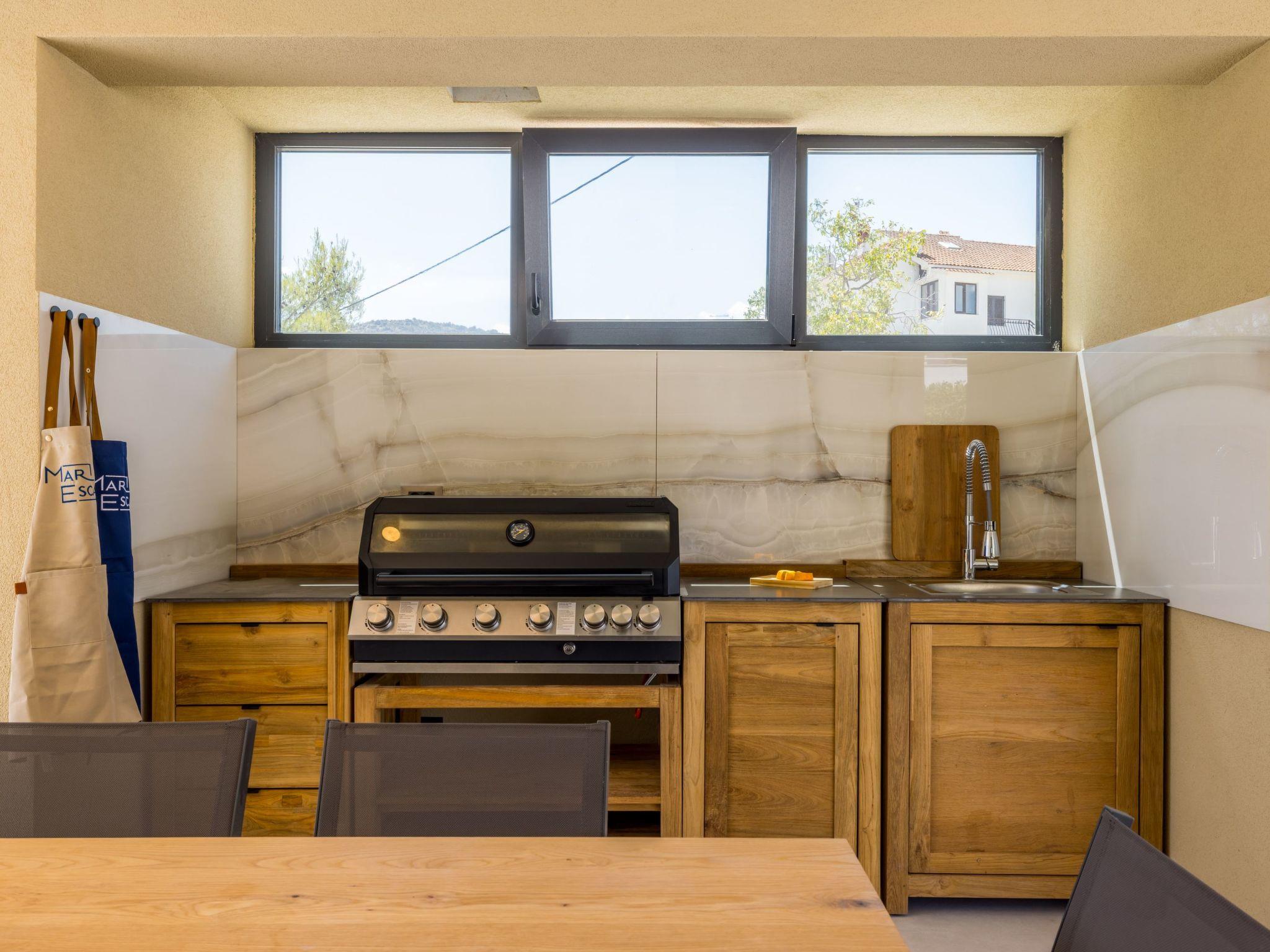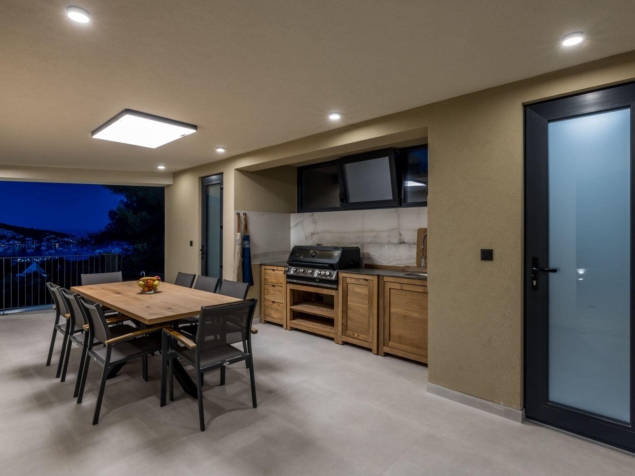 The outdoor area of this property is equally inviting, featuring a covered kitchen with gas grill, and a large pool with ample lounge area, for your sole use. The villa is completely fenced in, making it a safe haven for your small dogs. The presence of a balcony for the two upstairs bedrooms further enhances your outdoor living experience, allowing you to enjoy the fresh Dalmatian air in privacy.
