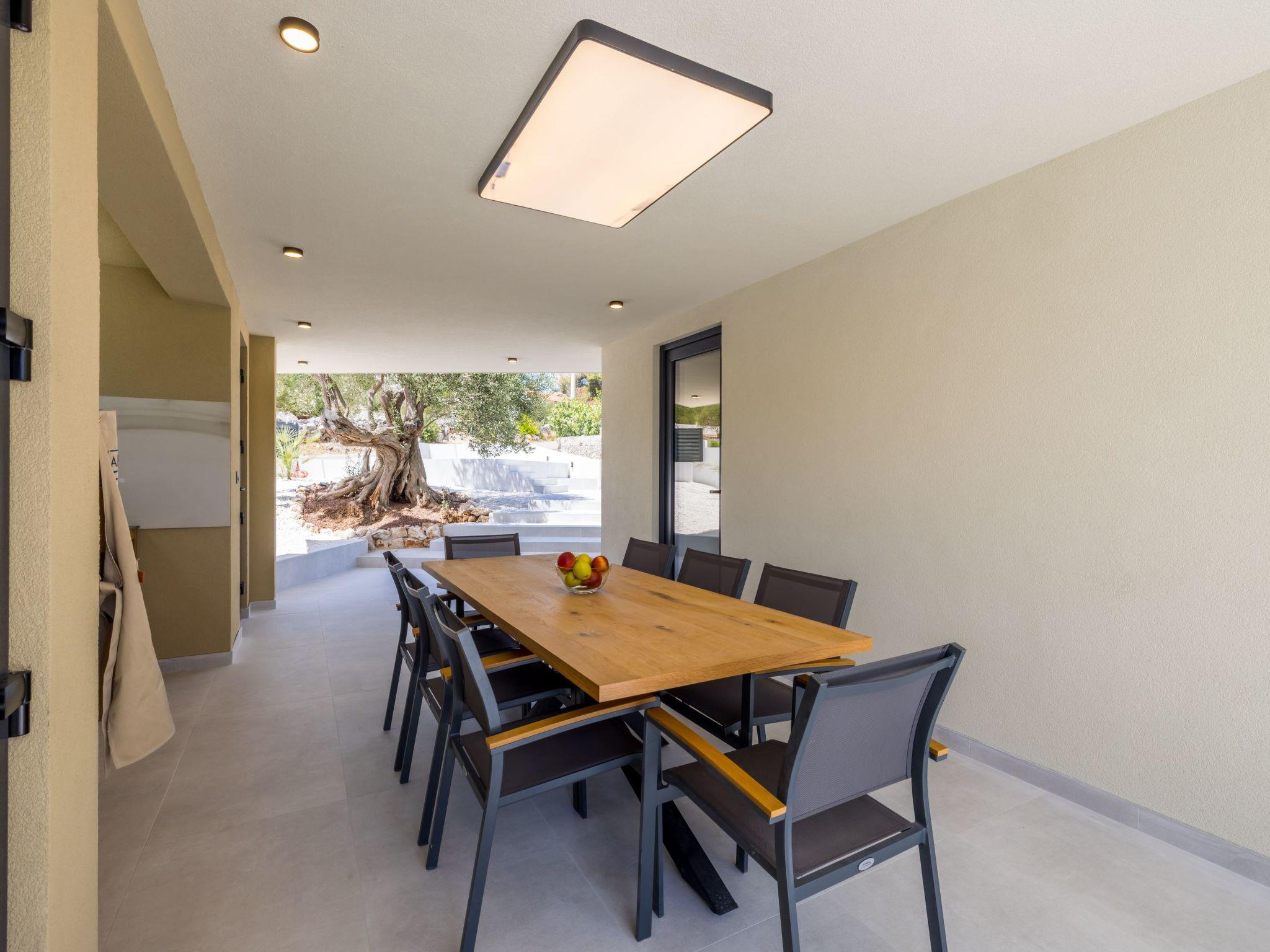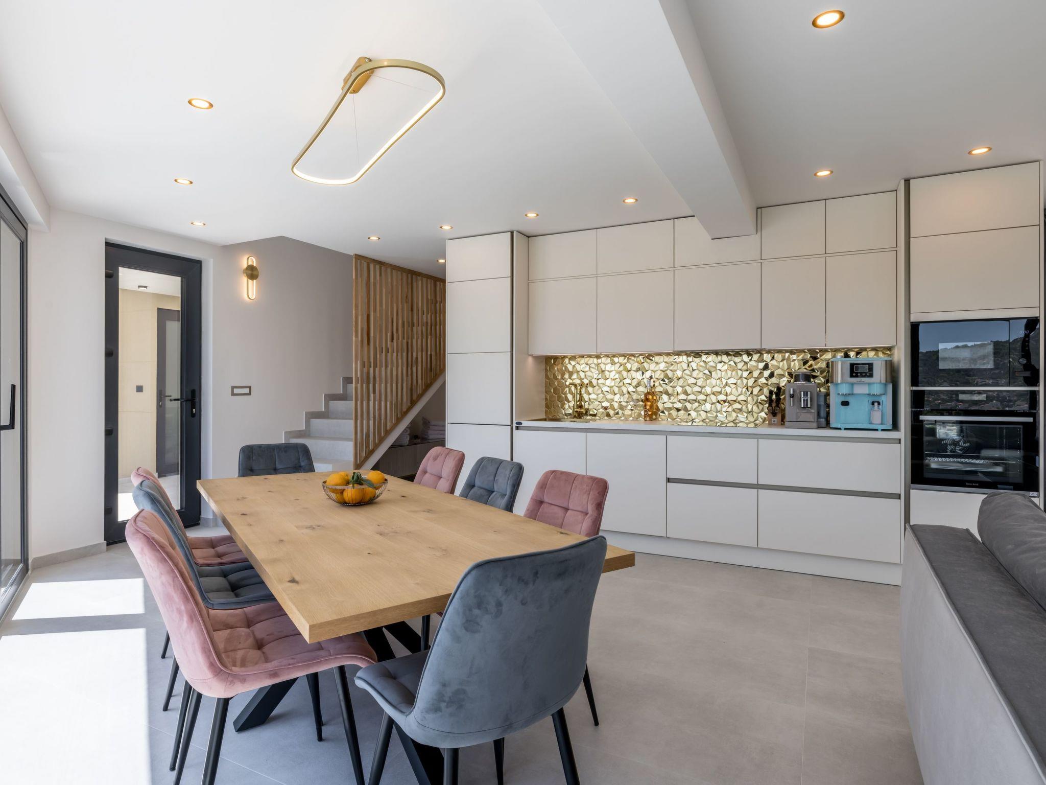 Inside, the house boasts an array of amenities designed to cater to your every need. With four bedrooms and four en-suite bathrooms, everyone in your party will enjoy their own space and privacy. The presence of air conditioning throughout the villa, as well as undefloor heating in the living room and bathrooms, ensures your stay is comfortable, regardless of the season. For added convenience, the property comes equipped with a washing machine and a clothes dryer for sole use, alongside smart TVs for entertainment in the living room, and in every bedroom. The kitchen does not disappoint, featuring an induction hob, a De Longhi coffee machine and an Nespresso machine, a dishwasher, and an electric kettle, making meal preparation a breeze.