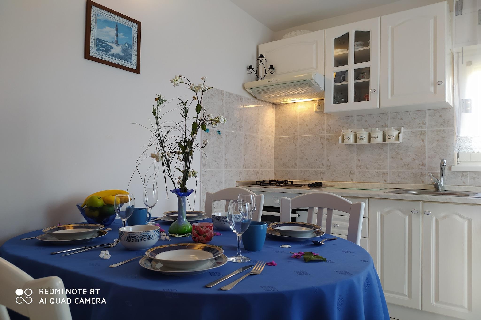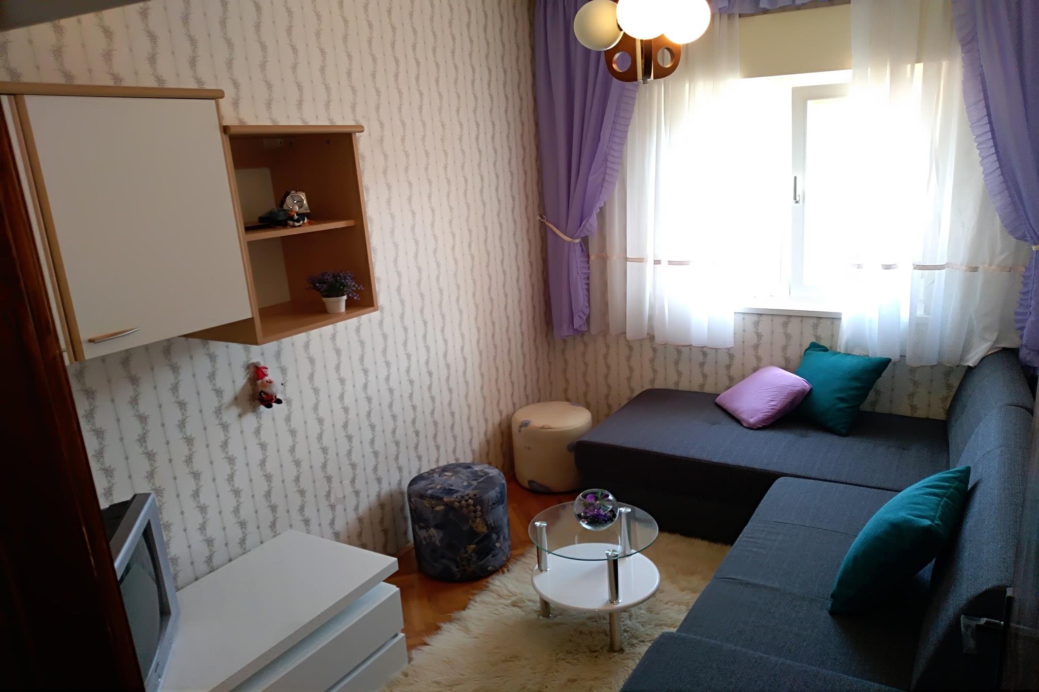 Denne kæledyrsvenlige lejlighed til seks personer ligger gemt væk i den fredelige kystlandsby Vinisce og tilbyder en afslappet ferie kun 100 meter fra havet. Med butikker, restauranter og en bank inden for gåafstand er dine daglige fornødenheder nemt dækket. Sportsentusiaster vil sætte pris på de nærliggende tennisbaner i Medena (15 km) og golfmulighederne i Podstrana (54 km), hvilket gør dette til et alsidigt feriested. Lejligheden har en rummelig og lys opholdsstue med internationale tv-kanaler, et stort, fuldt udstyret køkken og tre gennemtænkte soveværelser, et med en enkeltseng og en køjeseng, et andet med en enkeltseng og en udtræksseng og det tredje med en dobbeltseng og en sovesofa. Gæsterne kan slappe af på balkonen, grille måltider i det fælles haveområde med grill og nyde praktiske faciliteter som aircondition og en vaskemaskine. For lokale eventyr kan man besøge Diocletians Palads i Split, en arkitektonisk perle og på UNESCOs verdensarvsliste, eller udforske Sinj, berømt for sin traditionelle Alka-hesteturnering. Madelskere kan nyde lokale retter på Konoba Vinisce eller dagens friske fangst på La Barca. Uanset om du er ude efter fritid eller aktivitet, blander dette Vinisce-tilflugtssted komfort med kystcharme. Bådplads (parkering): EURO5 pr. dag