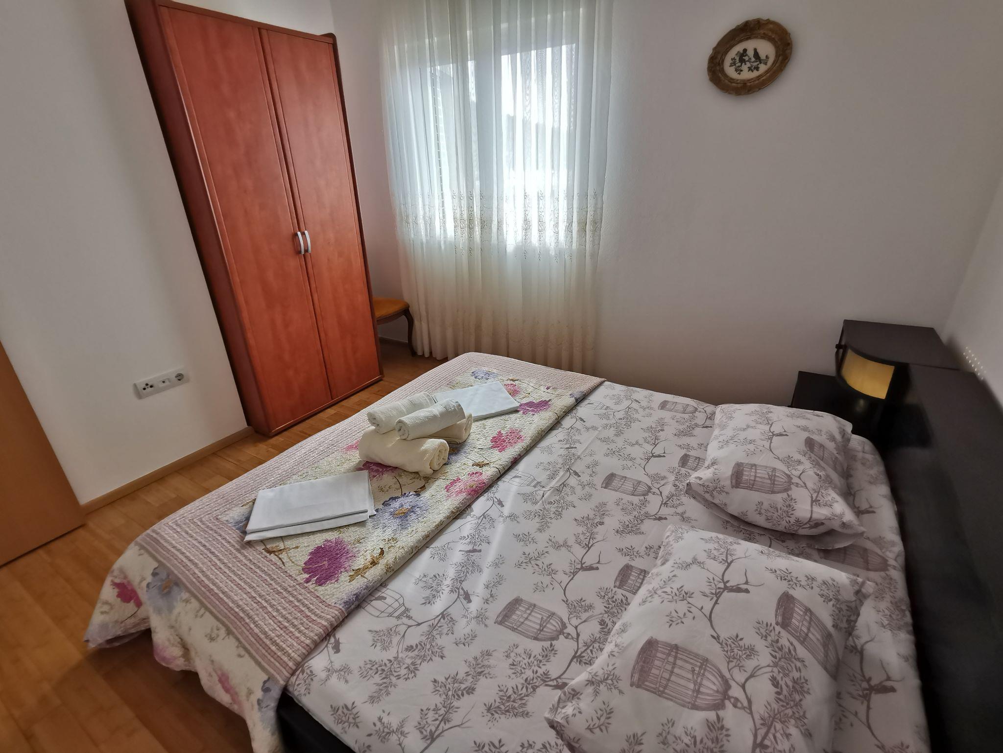 Ferienwohnung bietet Platz für 5 Gäste. Die Betten sind in Schlafzimmern, die es 2 gibt, und in Esszimmer, innerhalb einer Gesamtfläche von 49m2, angeordnet. Das Apartment bietet Meerblick. Es ist erlaubt, Speisen auf dem Gemeinschafts-Grill vorzubereiten. Die reservierte Unterkunftseinheit verfügt über einen gemeinsame Terrasse. IM PREIS INBEGRIFFEN: Kurtaxe, Endreinigung, Klimatisierung, Parkplatz, Internet, Bügeleisen, Bügelbrett. VERBINDLICHE ZUSÄTZLICHE KOSTEN: Aufzahlung für Kurzaufenthalte (prozentualer Zuschlag pro Nächtigungsanzahl: 30% - 1, 20% - 2, 10% - 3). UNVERBINDLICHE ZUSÄTZLICHE KOSTEN: Wäschewaschen (10,00 € Waschen). Die Verfügbarkeit zusätzlicher Dienstleistungen in Ihrem reservierten Termin und die Preise derselben (falls nicht aufgeführt) müssen im Voraus überprüft werden. Zusätzliche Dienstleistungen die in der Zahlungsaufforderung nicht aufgeführt sind werden direkt beim Vermieter bezahlt, angenommen der Gast nutzt auch diese.