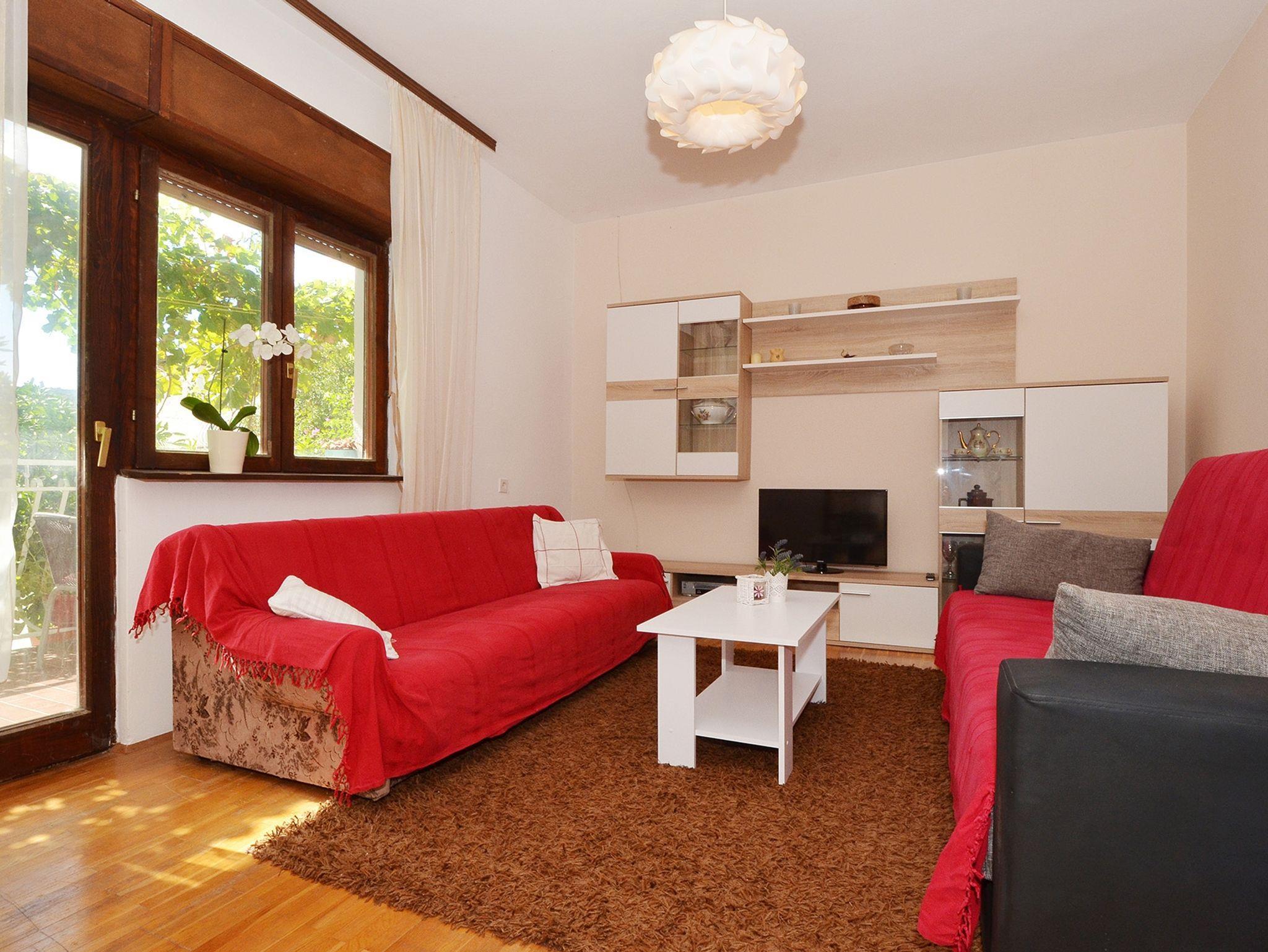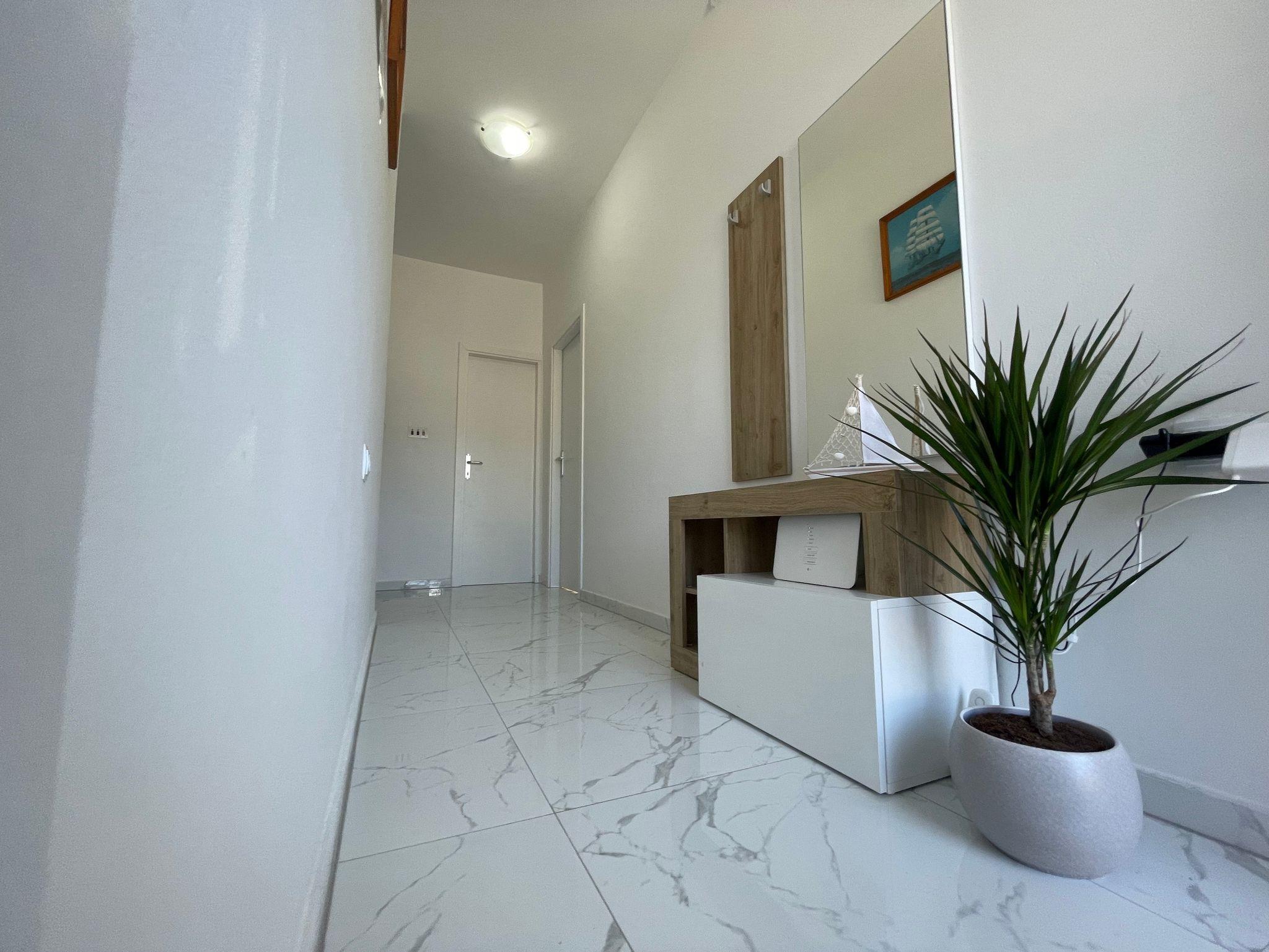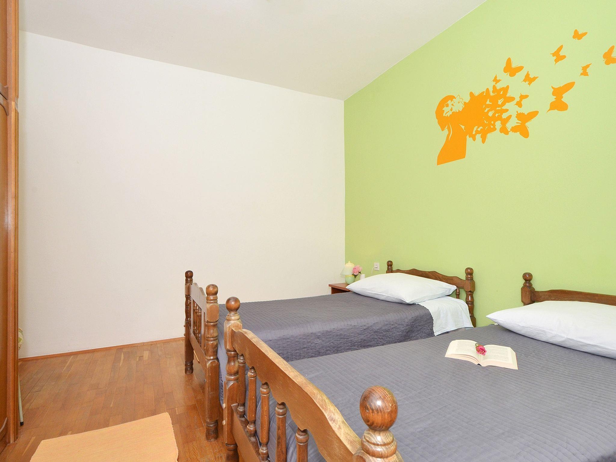 Ferienwohnung bietet Platz für 6 Gäste. Die Betten sind in Schlafzimmern, die es 2 gibt, und in Wohnzimmer, innerhalb einer Gesamtfläche von 76m2, angeordnet. Die Gäste haben eine eigene Terrasse zur Verfügung, auf der sie in warmen Sommernächten genießen können. Es ist erlaubt, Speisen auf dem Gemeinschafts-Grill vorzubereiten. IM PREIS INBEGRIFFEN: Kurtaxe, Endreinigung, Klimatisierung, Parkplatz, Internet, Kinderbett, Bügeleisen, Bügelbrett, Föhn. VERBINDLICHE ZUSÄTZLICHE KOSTEN: Aufzahlung für Kurzaufenthalte (prozentualer Zuschlag pro Nächtigungsanzahl: 30% - 1, 20% - 2, 10% - 3). UNVERBINDLICHE ZUSÄTZLICHE KOSTEN: Bootsanlegeplatz (15,00 € pro Nacht). Die Verfügbarkeit zusätzlicher Dienstleistungen in Ihrem reservierten Termin und die Preise derselben (falls nicht aufgeführt) müssen im Voraus überprüft werden. Zusätzliche Dienstleistungen die in der Zahlungsaufforderung nicht aufgeführt sind werden direkt beim Vermieter bezahlt, angenommen der Gast nutzt auch diese. Ermäßigung auf den Grundpreis: Gratistag 14=13 (bei einem Aufenthalt von 14 Tagen oder mehr erhalten Sie einen Gratistag für den Aufenthalt bis 31.12.26).