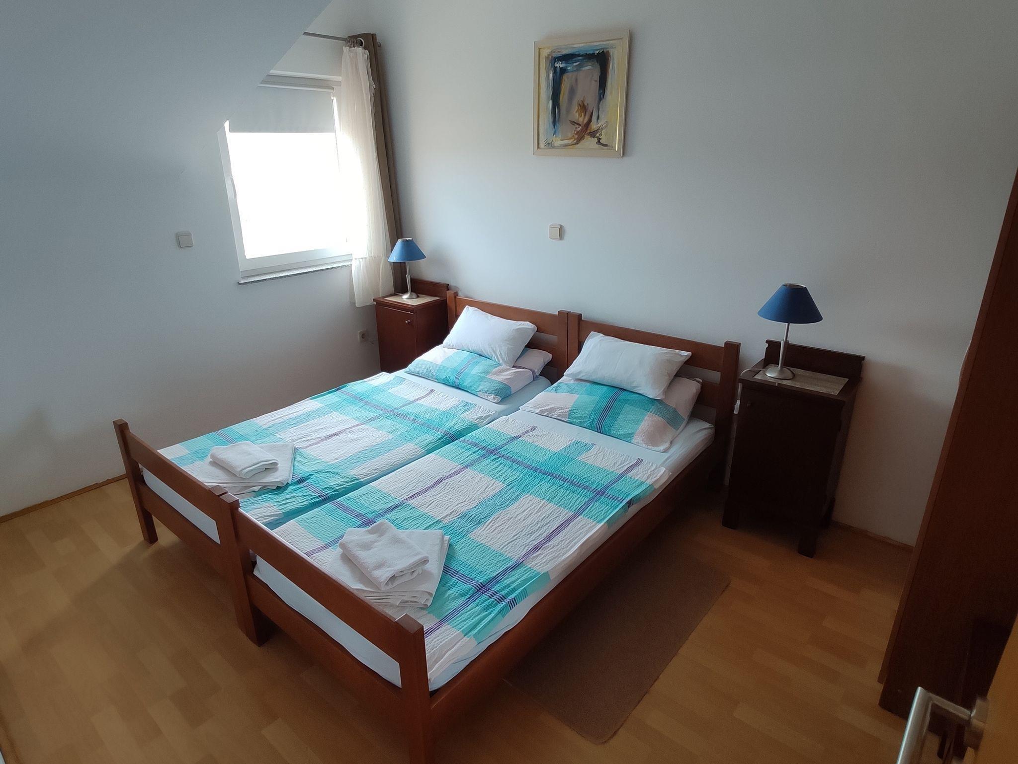 Ferienwohnung bietet Platz für 4 Gäste. Die Betten sind in Schlafzimmern, die es 1 gibt, und in Wohnzimmer, innerhalb einer Gesamtfläche von 36m2, angeordnet. Die Gäste haben eine eigene Terrasse zur Verfügung, auf der sie in warmen Sommernächten genießen können. Das Apartment bietet Meerblick. Es ist erlaubt, Speisen auf dem Gemeinschafts-Grill vorzubereiten. IM PREIS INBEGRIFFEN: Kurtaxe, Endreinigung, Klimatisierung, Parkplatz, Internet, Kinderbett, Bügeleisen, Bügelbrett, Föhn, tragbarer Grill. VERBINDLICHE ZUSÄTZLICHE KOSTEN: Aufzahlung für Kurzaufenthalte (prozentualer Zuschlag pro Nächtigungsanzahl: 30% - 1, 20% - 2, 10% - 3). UNVERBINDLICHE ZUSÄTZLICHE KOSTEN: Fahrrad (6,50 € täglich (pro Stück)), Zusatzbett (5,00 € pro Nacht). Die Verfügbarkeit zusätzlicher Dienstleistungen in Ihrem reservierten Termin und die Preise derselben (falls nicht aufgeführt) müssen im Voraus überprüft werden. Zusätzliche Dienstleistungen die in der Zahlungsaufforderung nicht aufgeführt sind werden direkt beim Vermieter bezahlt, angenommen der Gast nutzt auch diese. Ermäßigung auf den Grundpreis: Gratistag 14=13 (bei einem Aufenthalt von 14 Tagen oder mehr erhalten Sie einen Gratistag für den Aufenthalt bis 31.12.26).