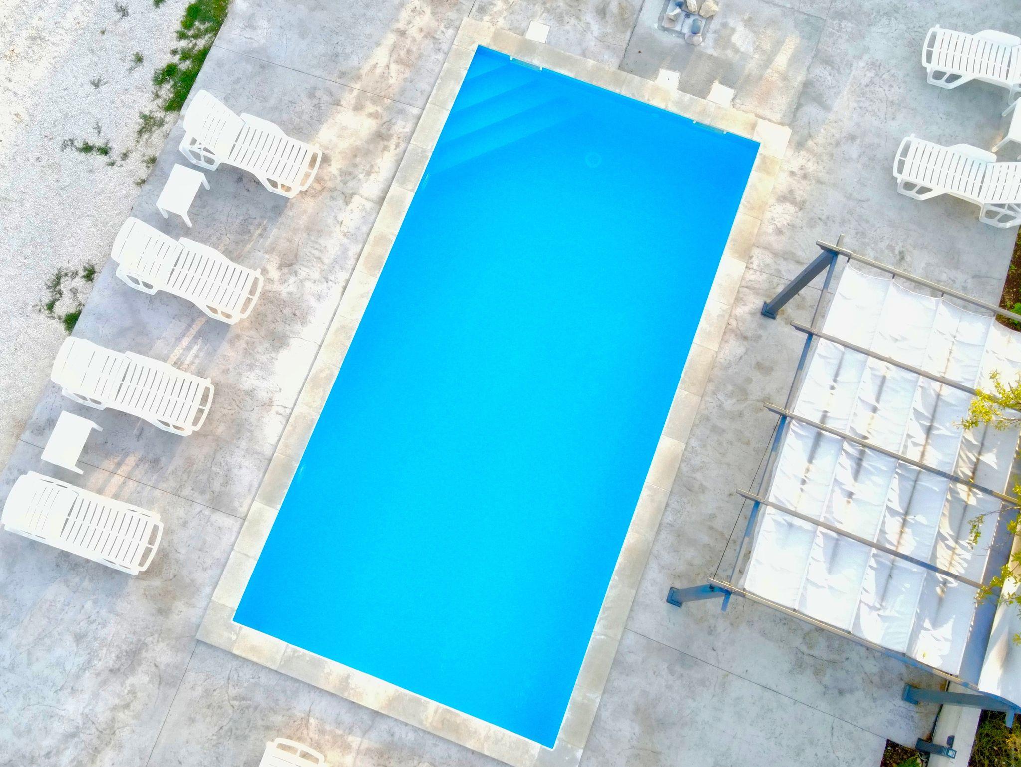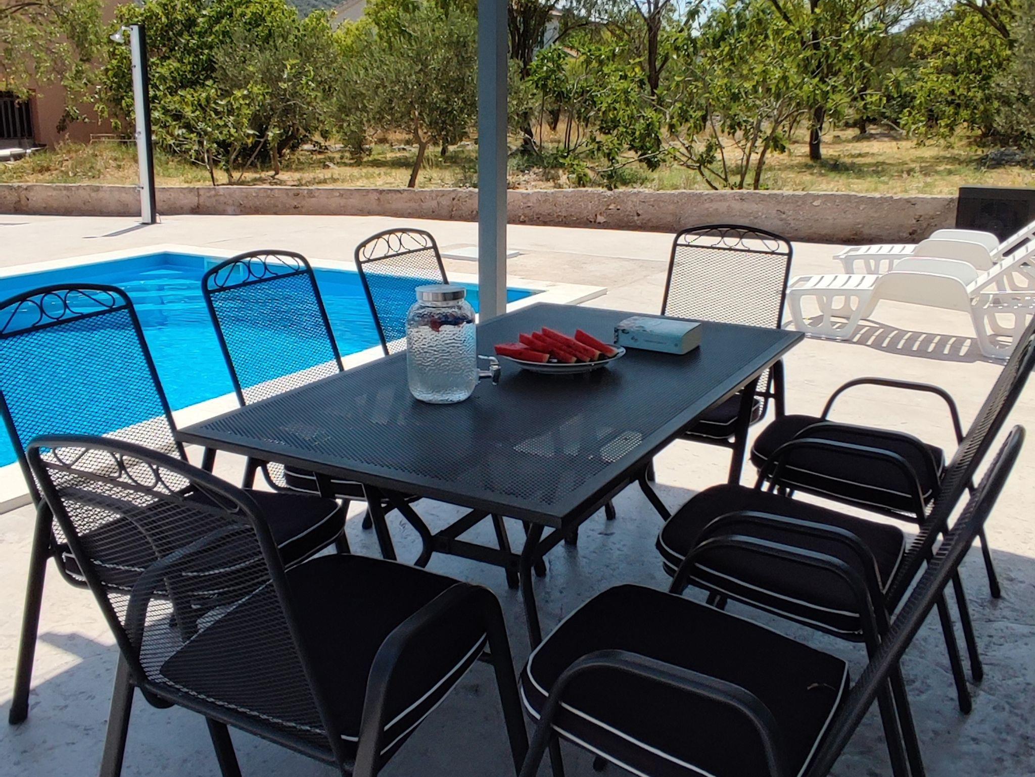 Umgebung des Objekts (Eingerichtet), Hof (2500m2, Kinderbereich, Sitzbereich), Parkplatz (Anzahl der Parkplätze: 10, Entfernung vom Objekt: im Hof), Pool: gemeinsam, Dimensionen: 8m x 4m x 1.2m, Wassertyp: Salzwasser, Heizung: Ja, Grill: gemeinsam, WiFi Internet, Bootsanlegeplatz (Entfernung vom Objekt: 270 m, Bootsanlegeplatztyp: an der Küste), Föhn, Bügeleisen, Bügelbrett, Tragbarer Grill, Kinderbett